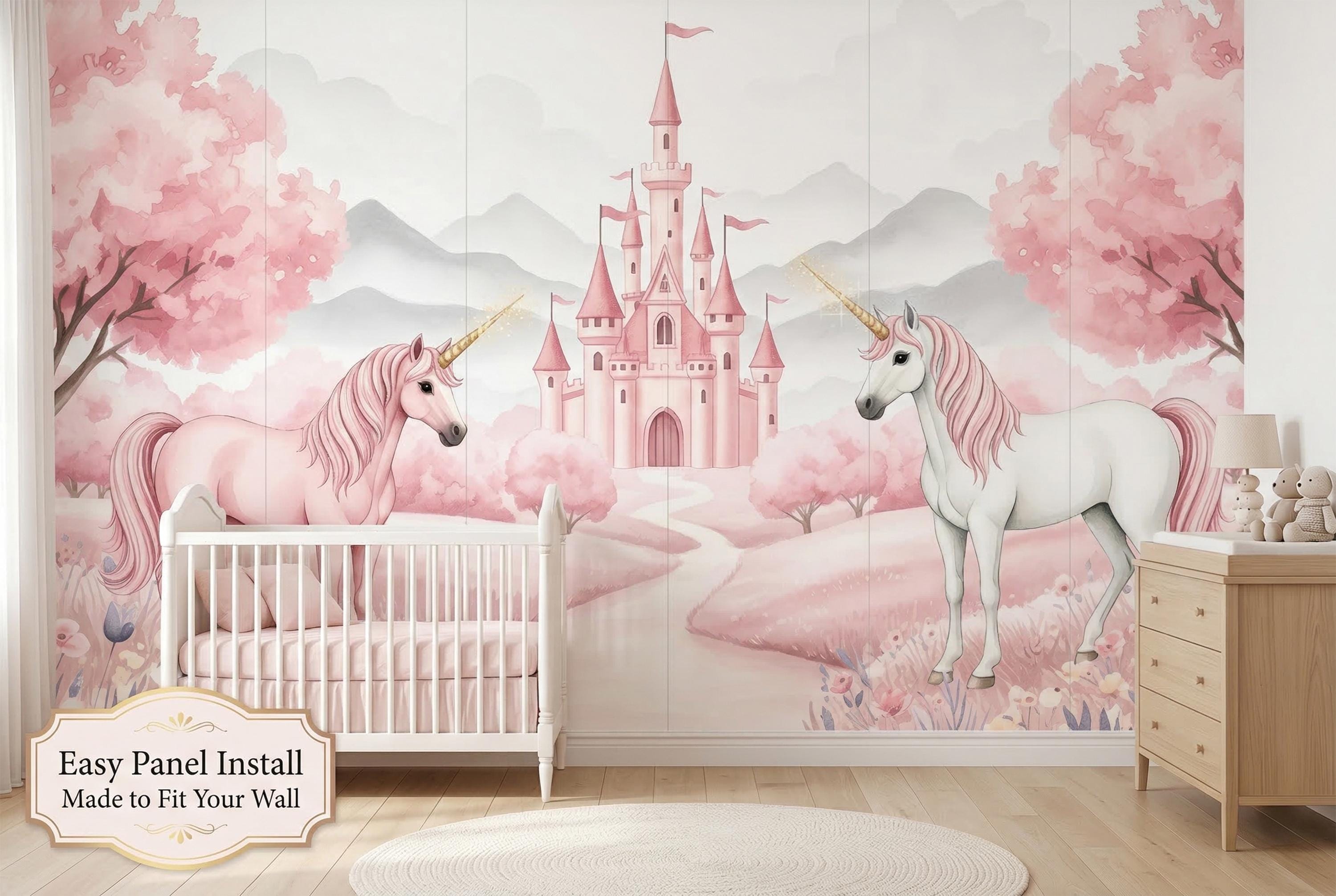 Looking for a whimsical unicorn wallpaper that works from newborn nursery through school-age bedroom?