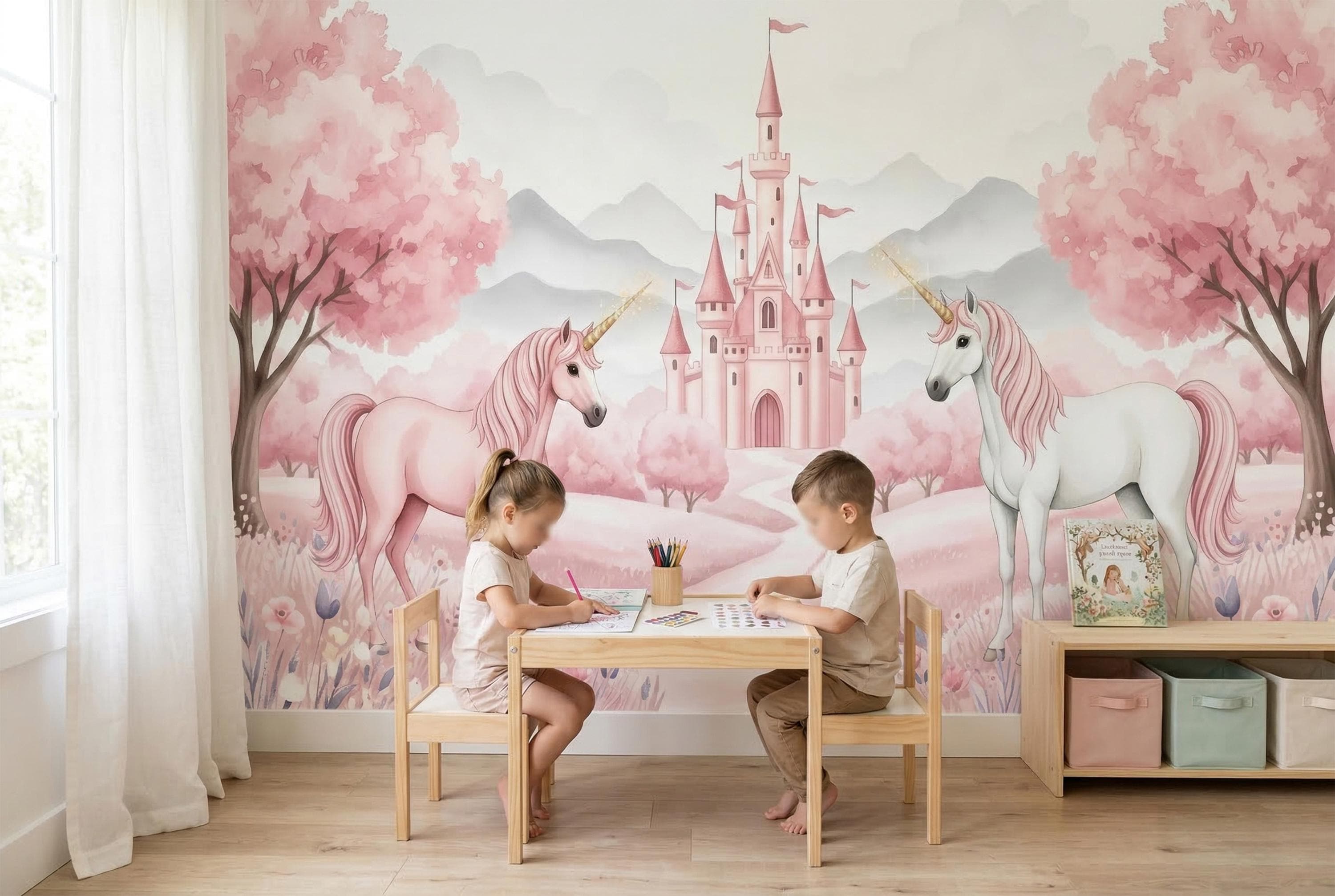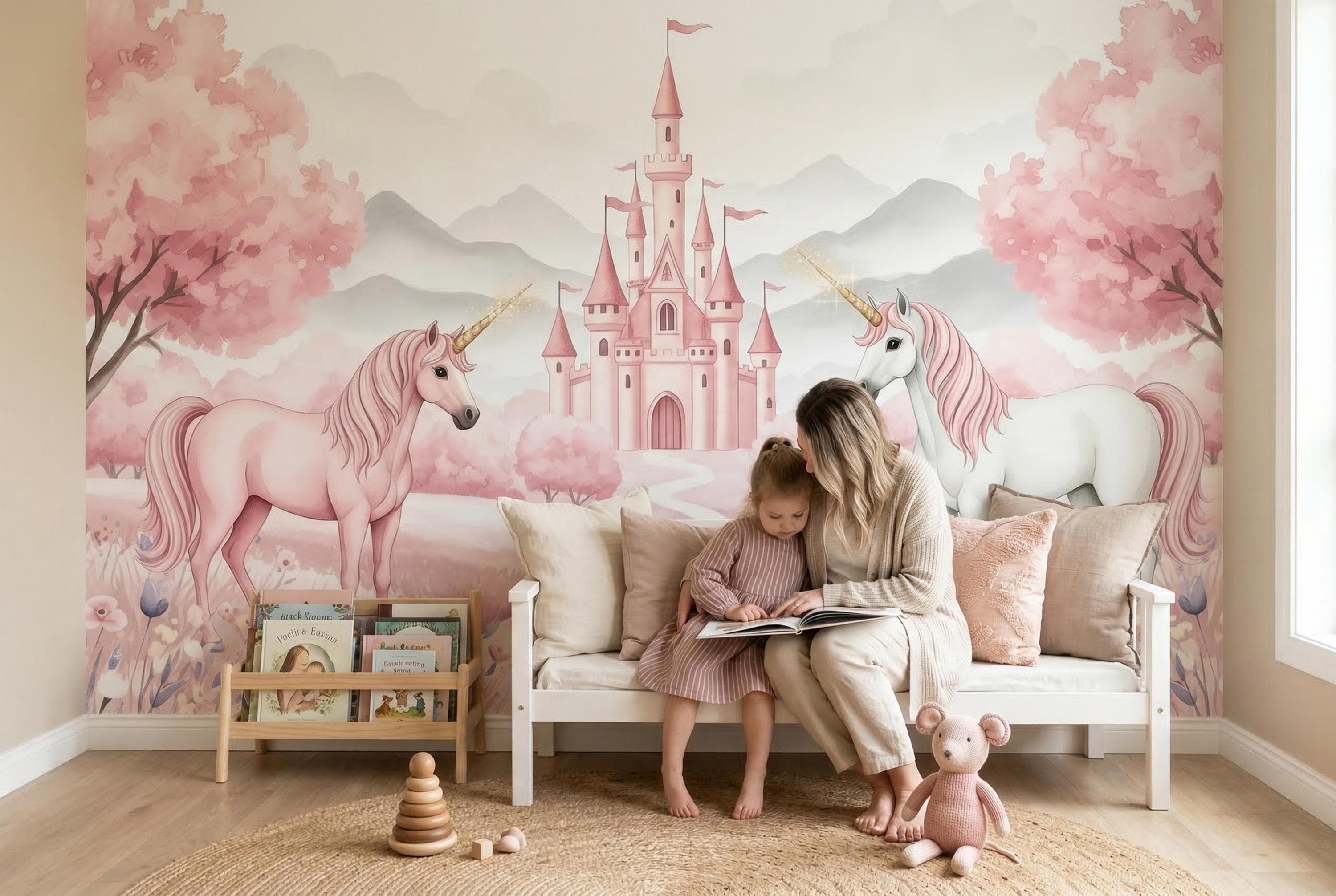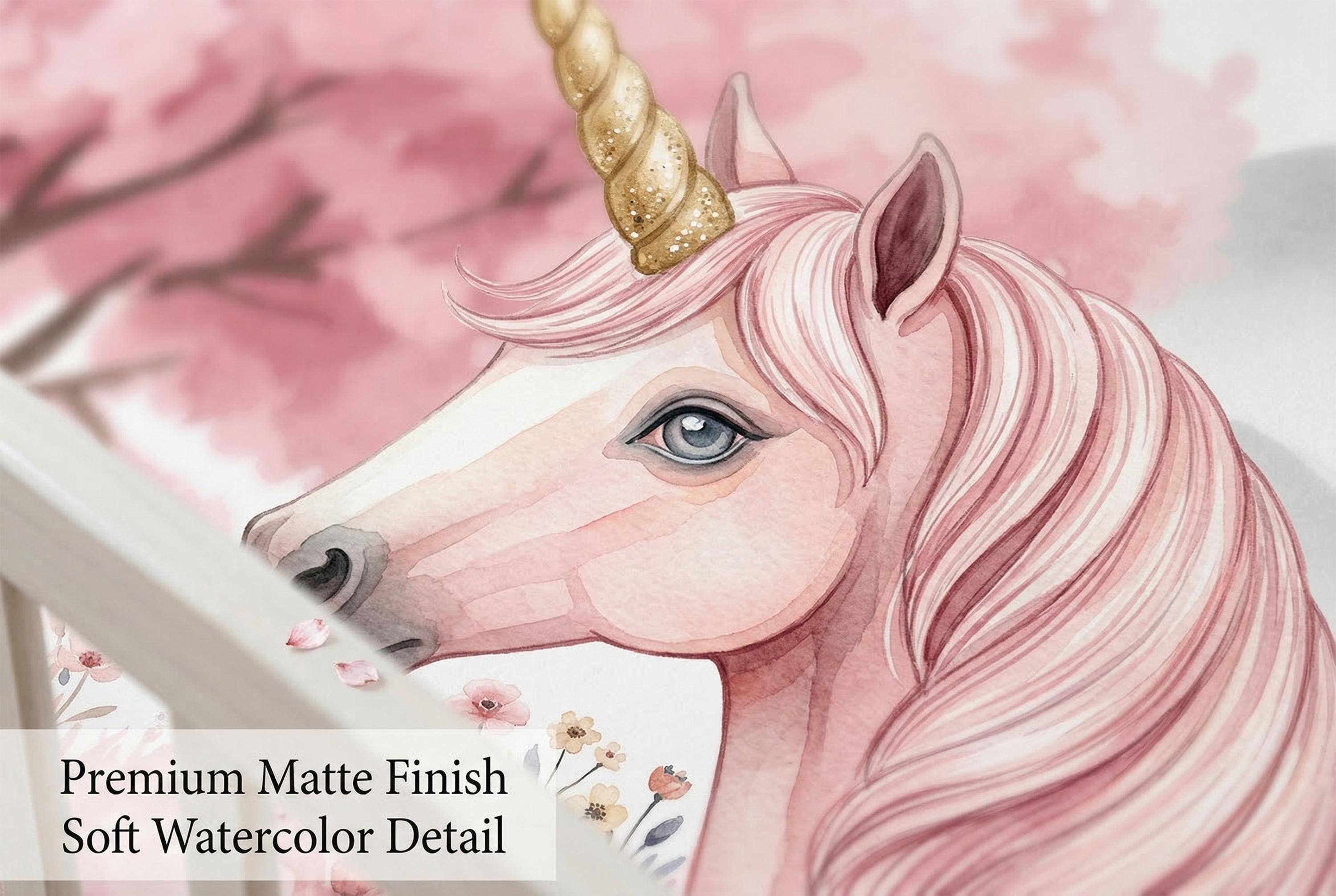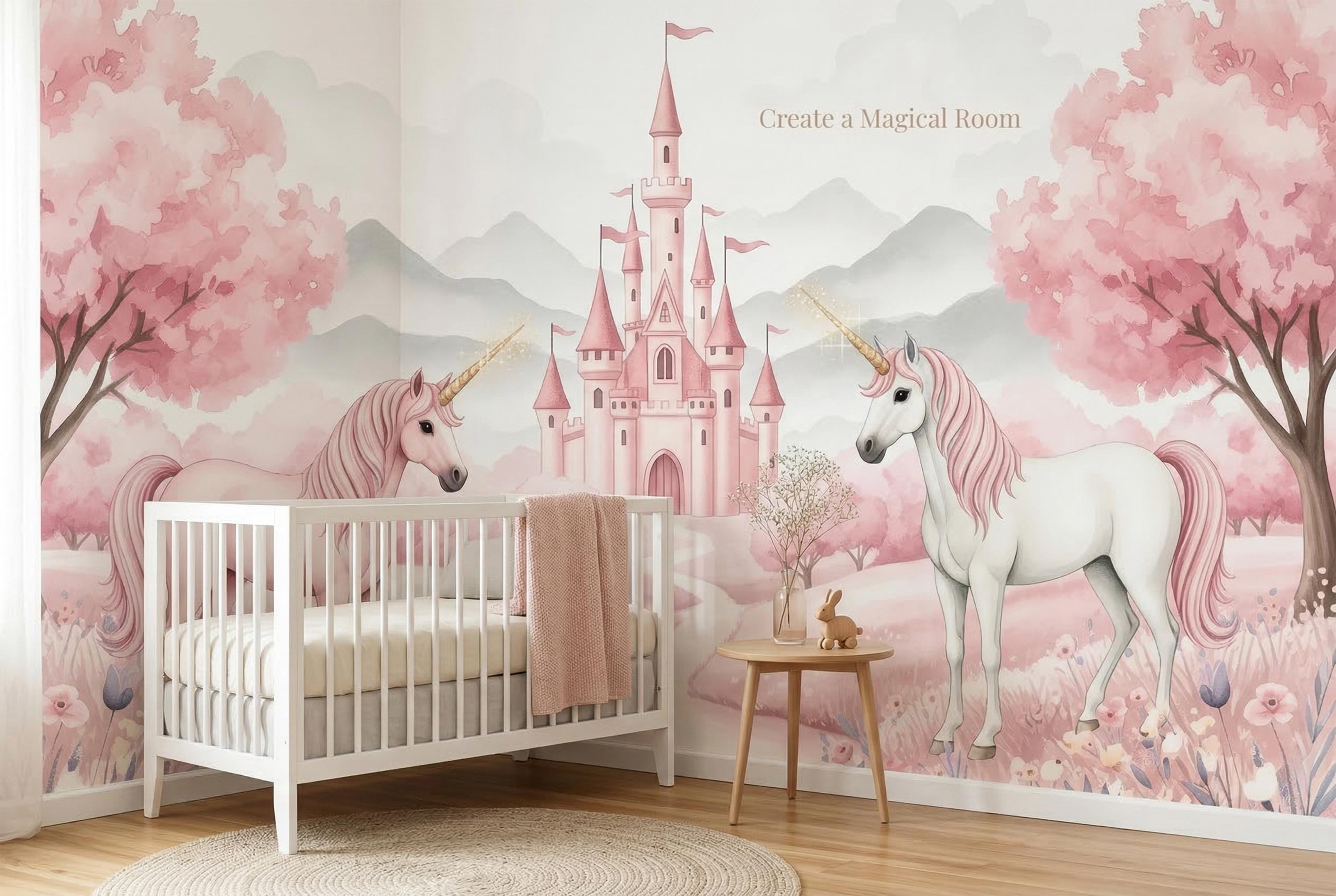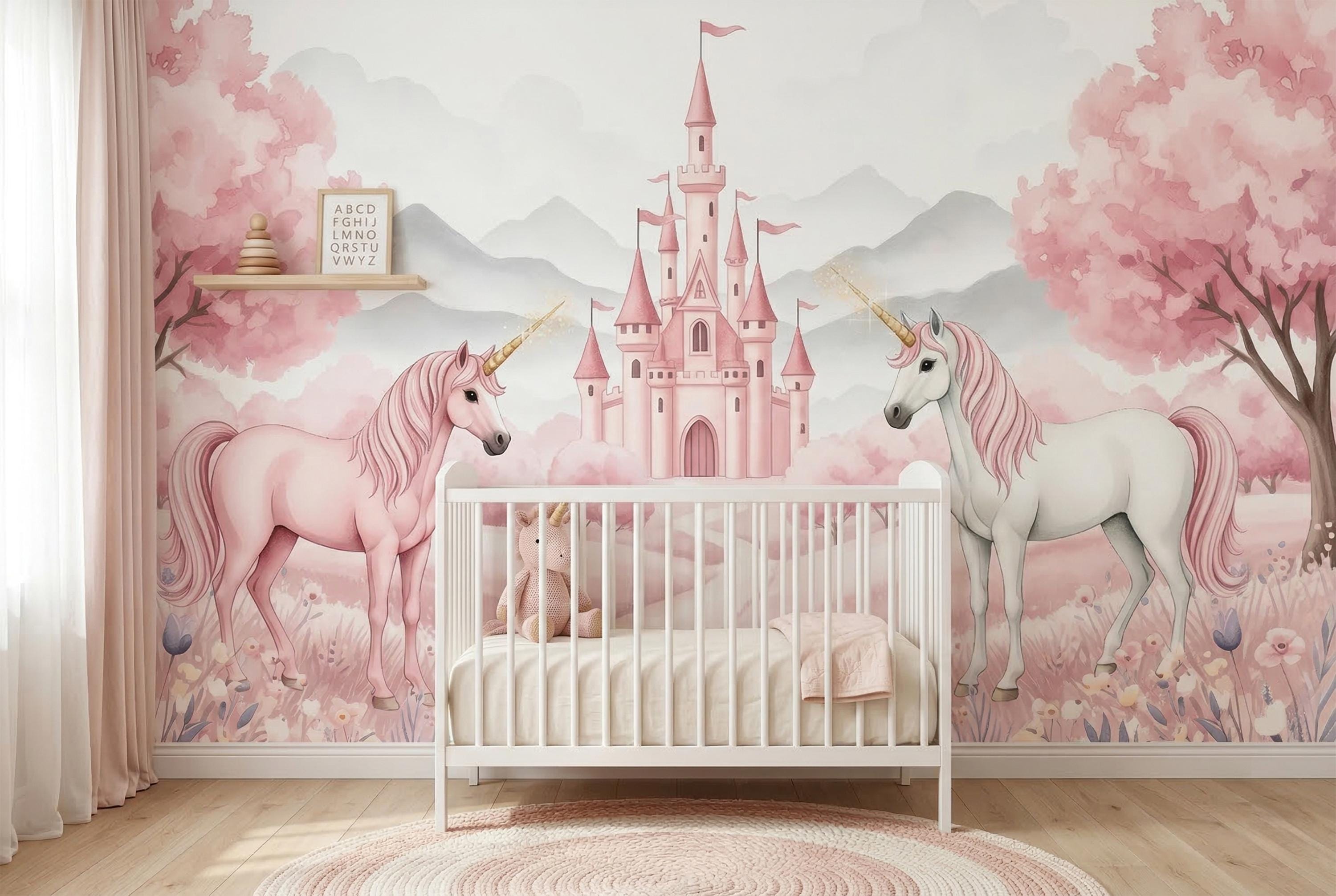 This wall mural for girls is timeless in the truest sense. As a pink unicorn wallpaper it sits at the very top of the category — not because it shouts, but because it glows.