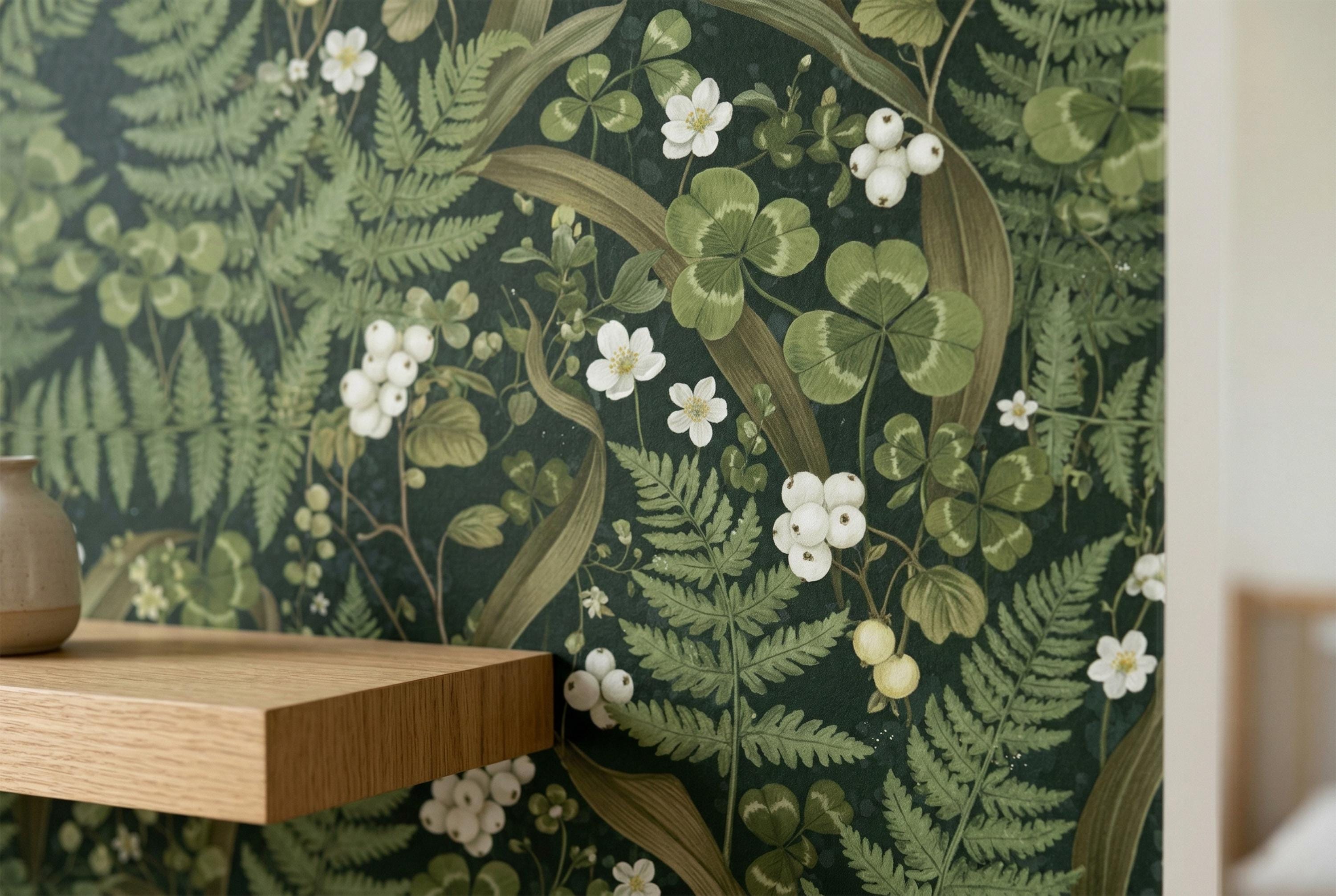 This is the moody green wallpaper that dark academia enthusiasts, botanical maximalists, and serious interior designers have been searching for. As a witchy botanical wallpaper it captures the gothic-natural aesthetic that is dominating interior trends — but with an illustrative quality precise enough to stand alongside fine botanical prints.