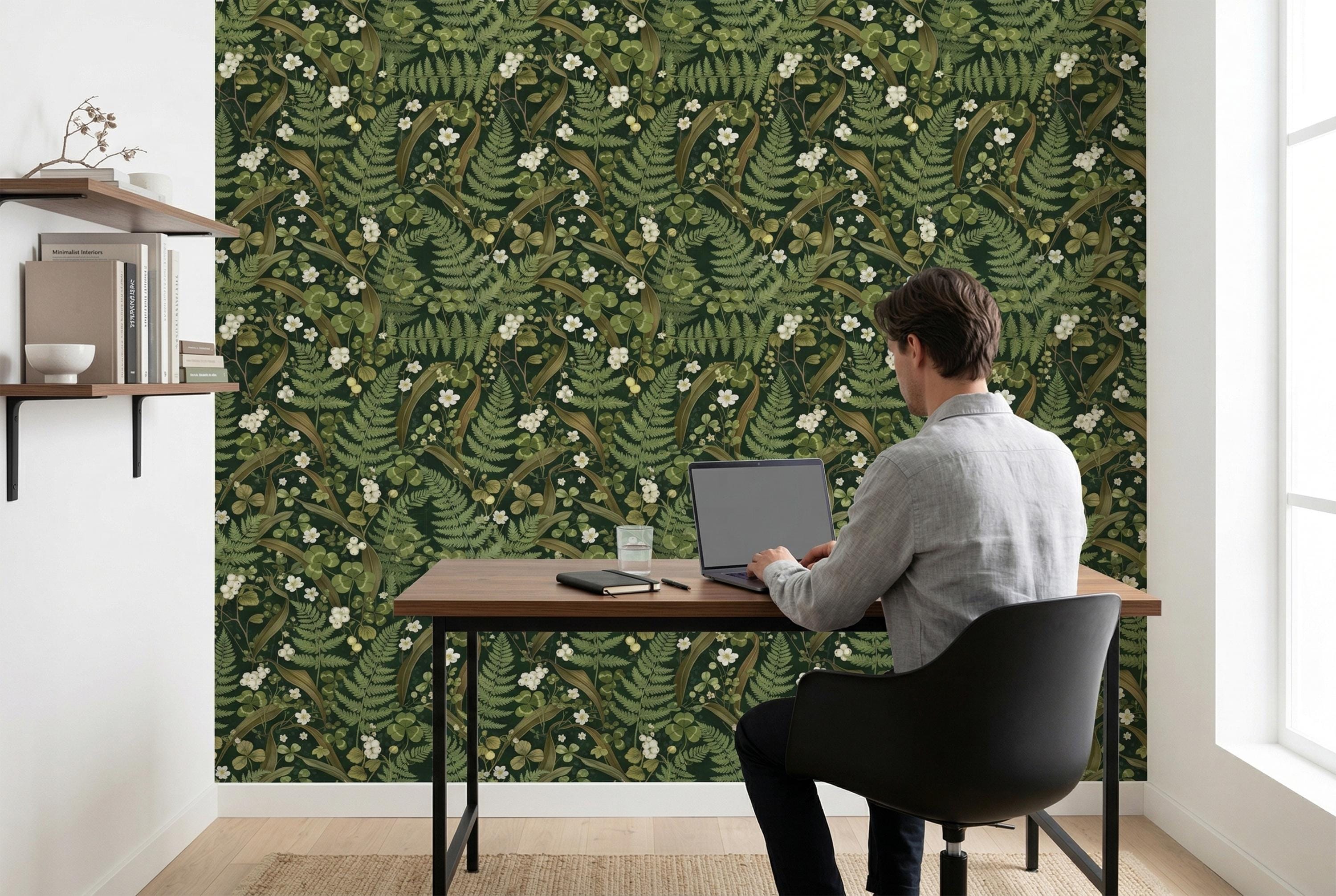 Looking for woodland black wallpaper with genuine depth? A botanical forest wallpaper that commands a room without overwhelming it?