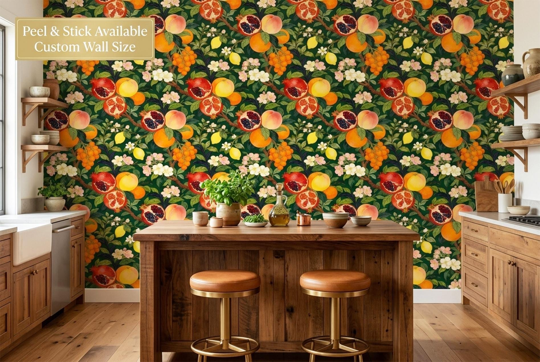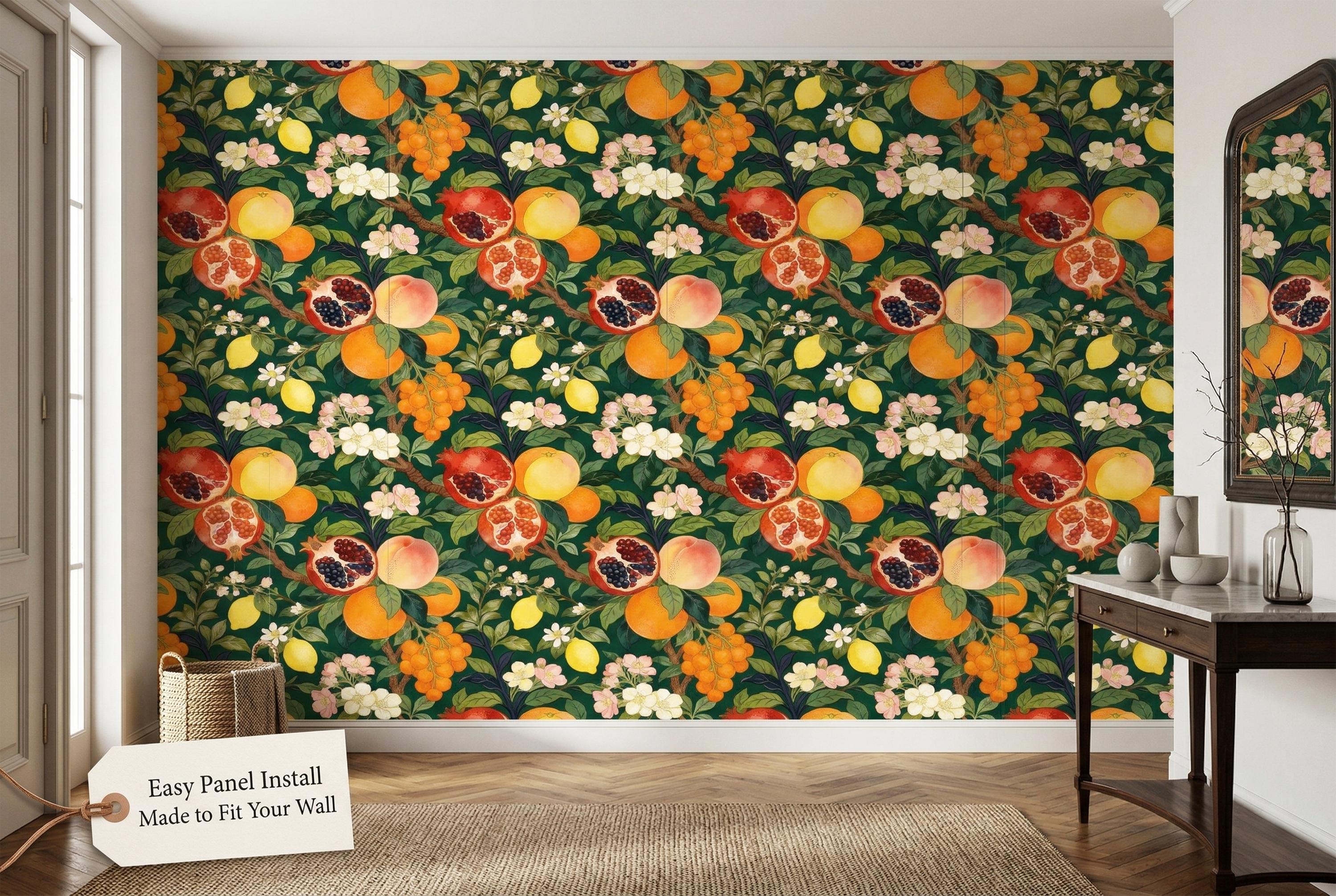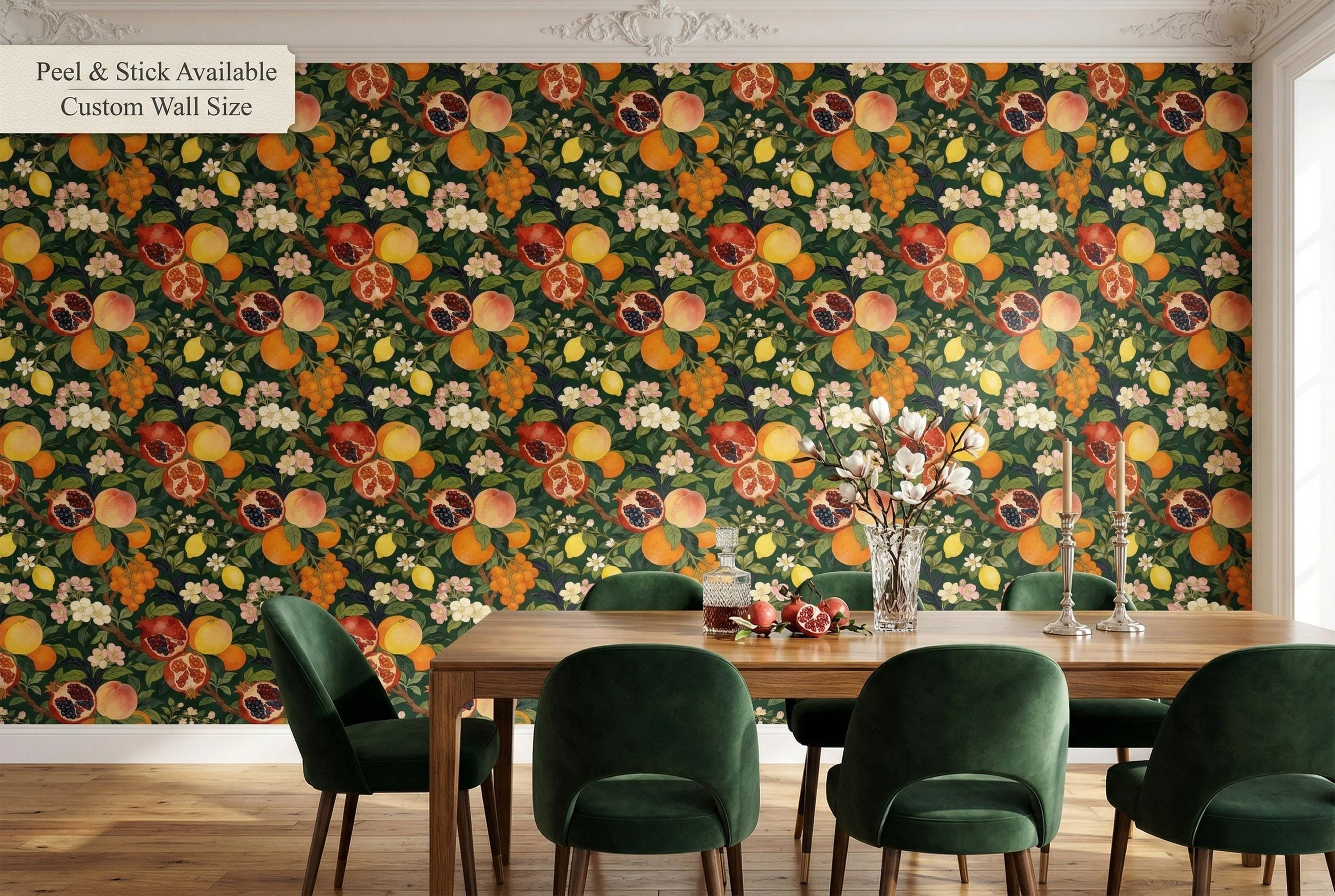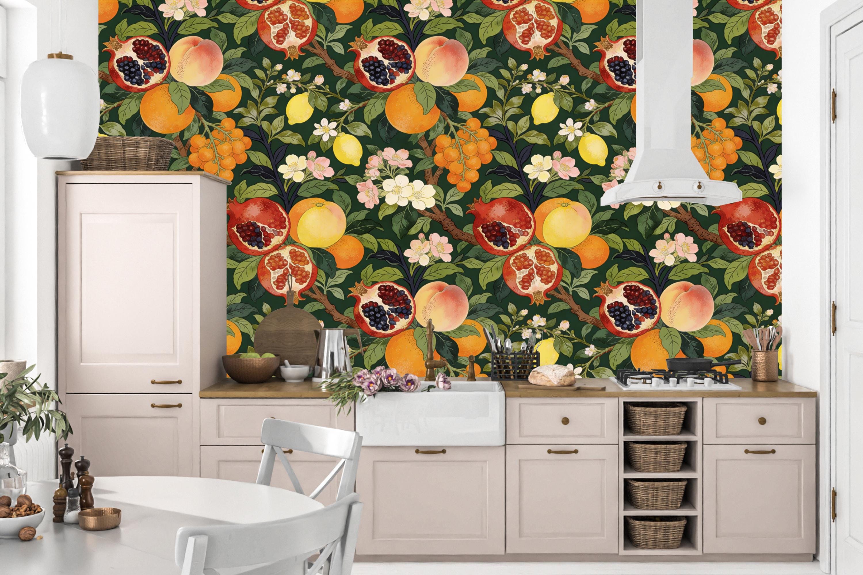 This Arts and Crafts-inspired fruit wallpaper brings the richness of a Victorian orchard straight to your walls. It's the kind of pattern that makes a kitchen feel like a feast, a hallway feel like an arrival, and a dining room feel like a celebration every single day.
