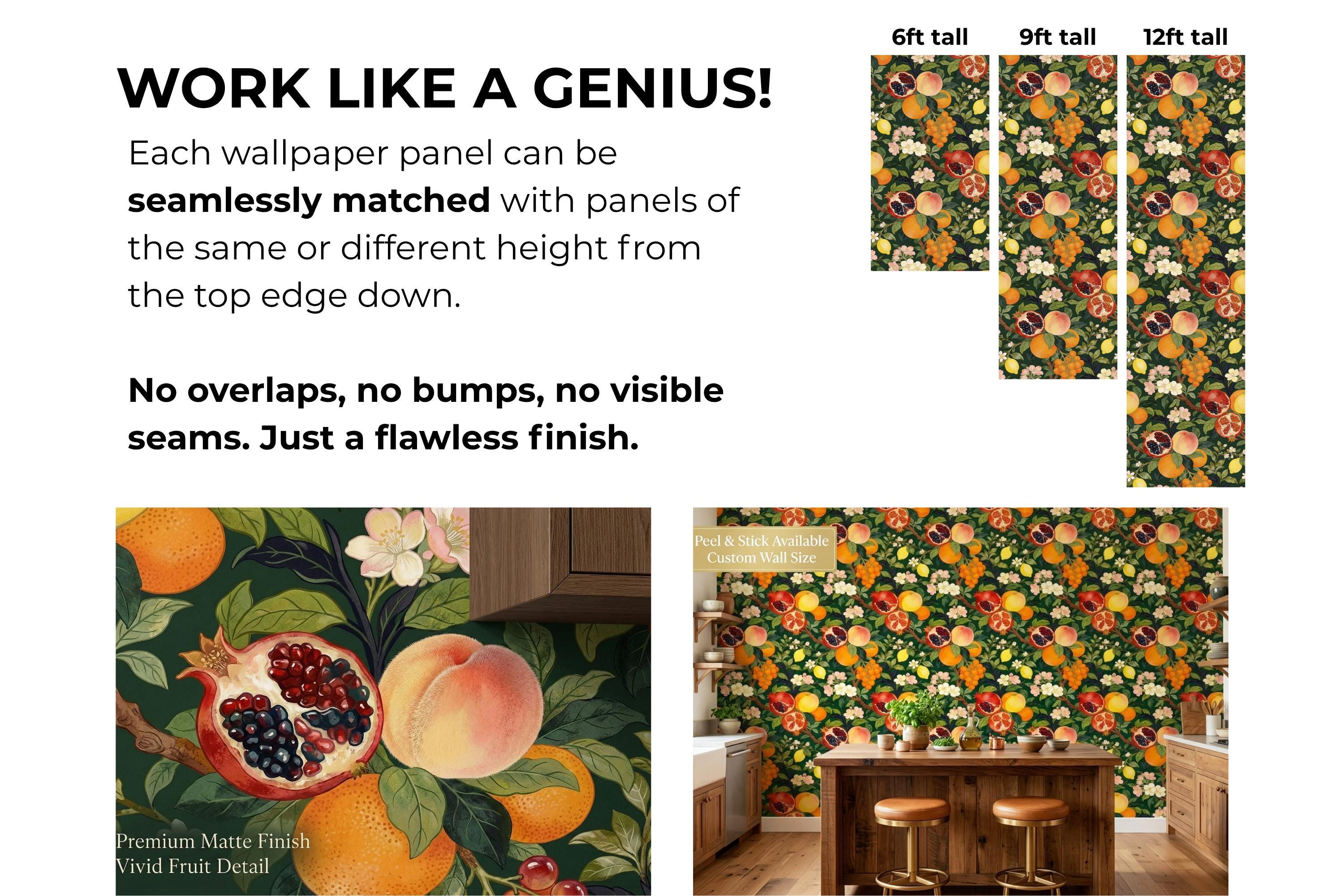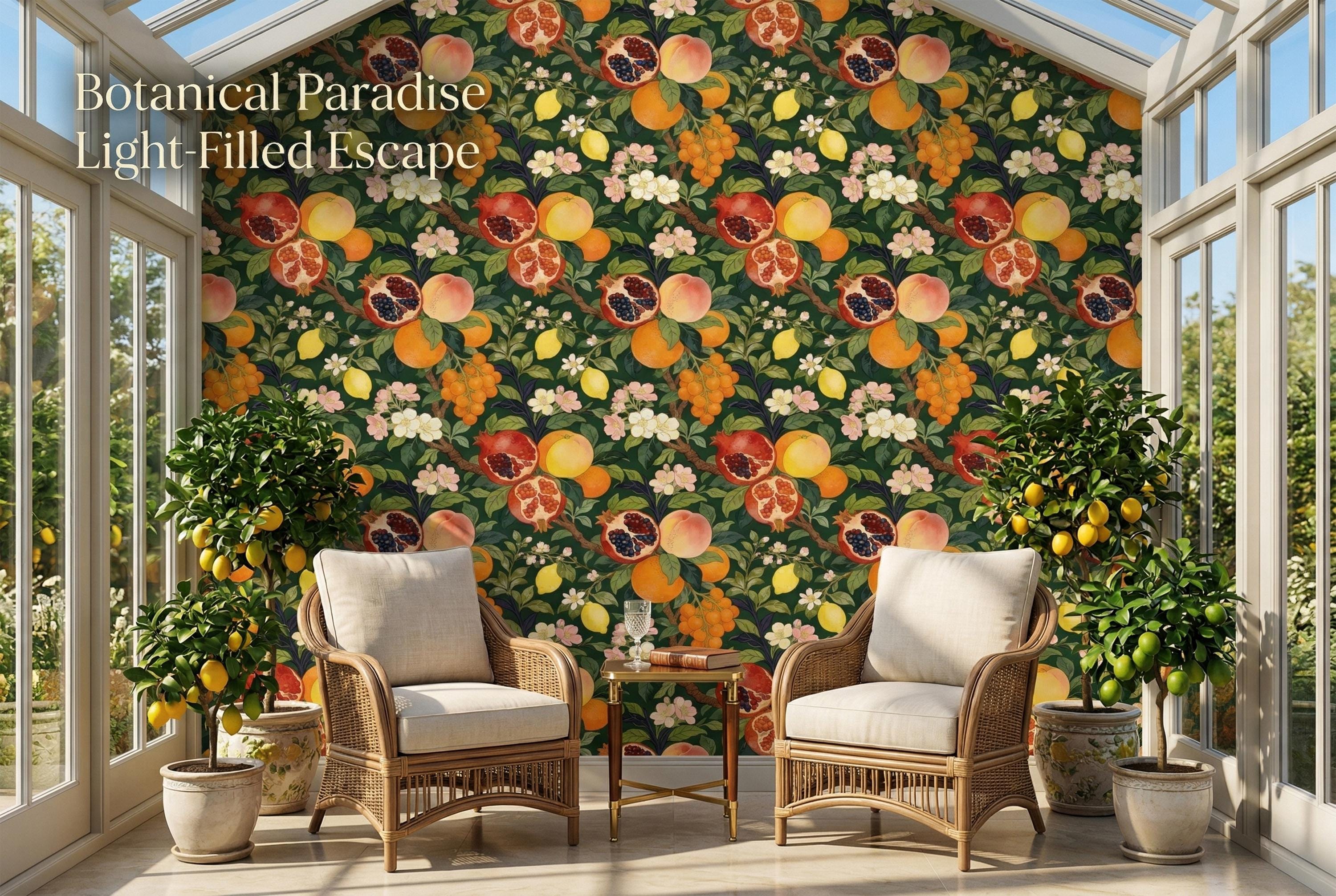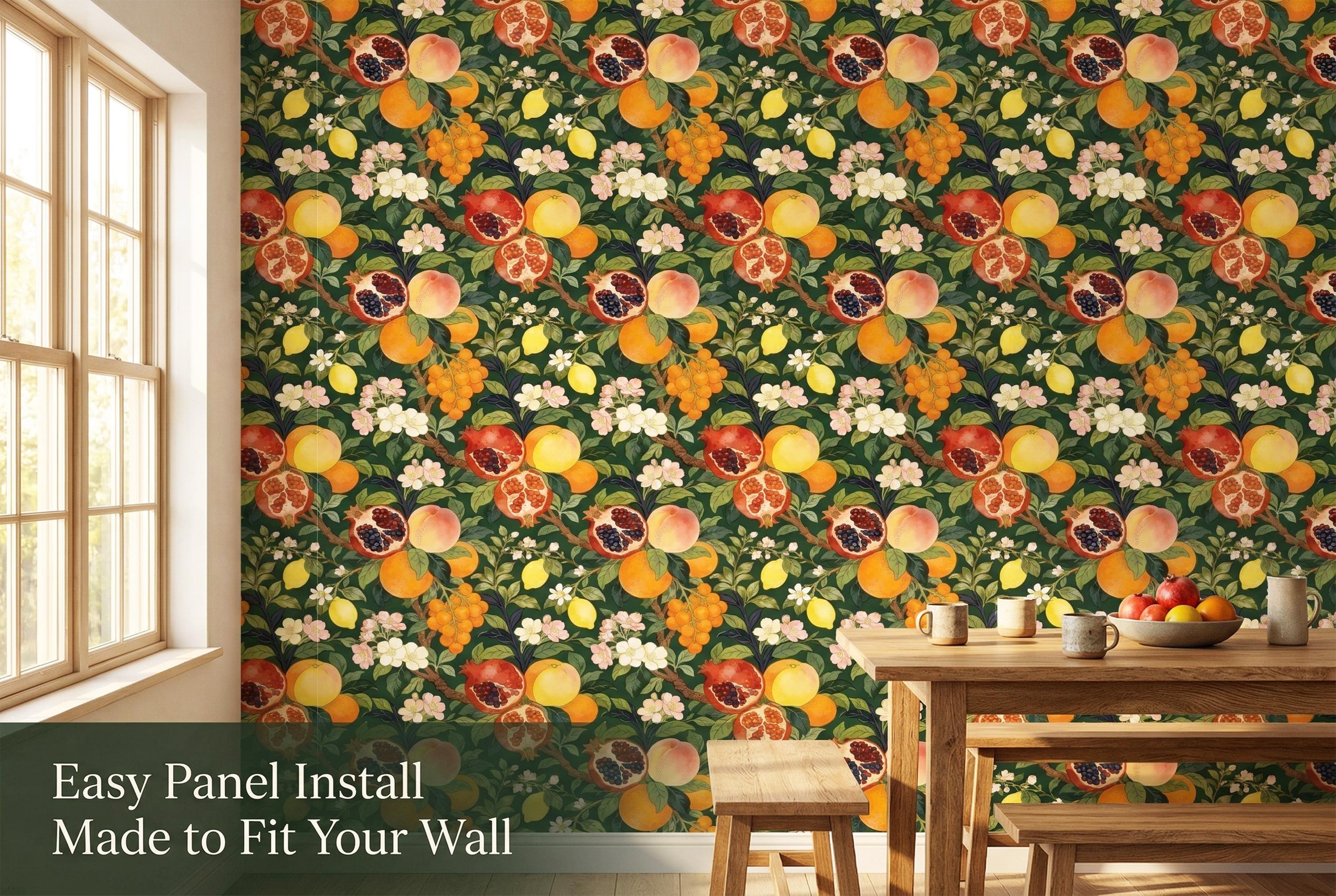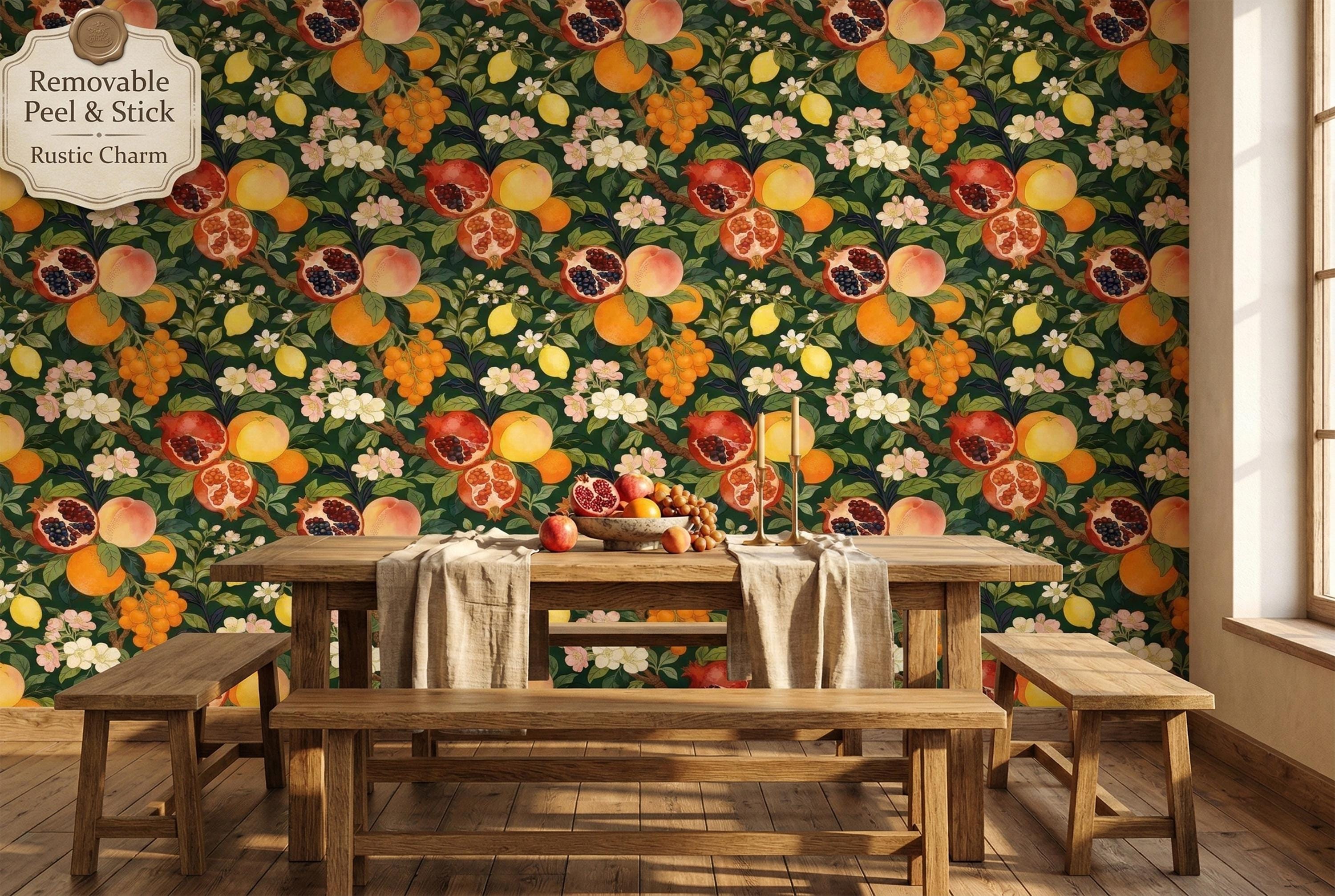 This Arts and Crafts-inspired fruit wallpaper brings the richness of a Victorian orchard straight to your walls. It's the kind of pattern that makes a kitchen feel like a feast, a hallway feel like an arrival, and a dining room feel like a celebration every single day.