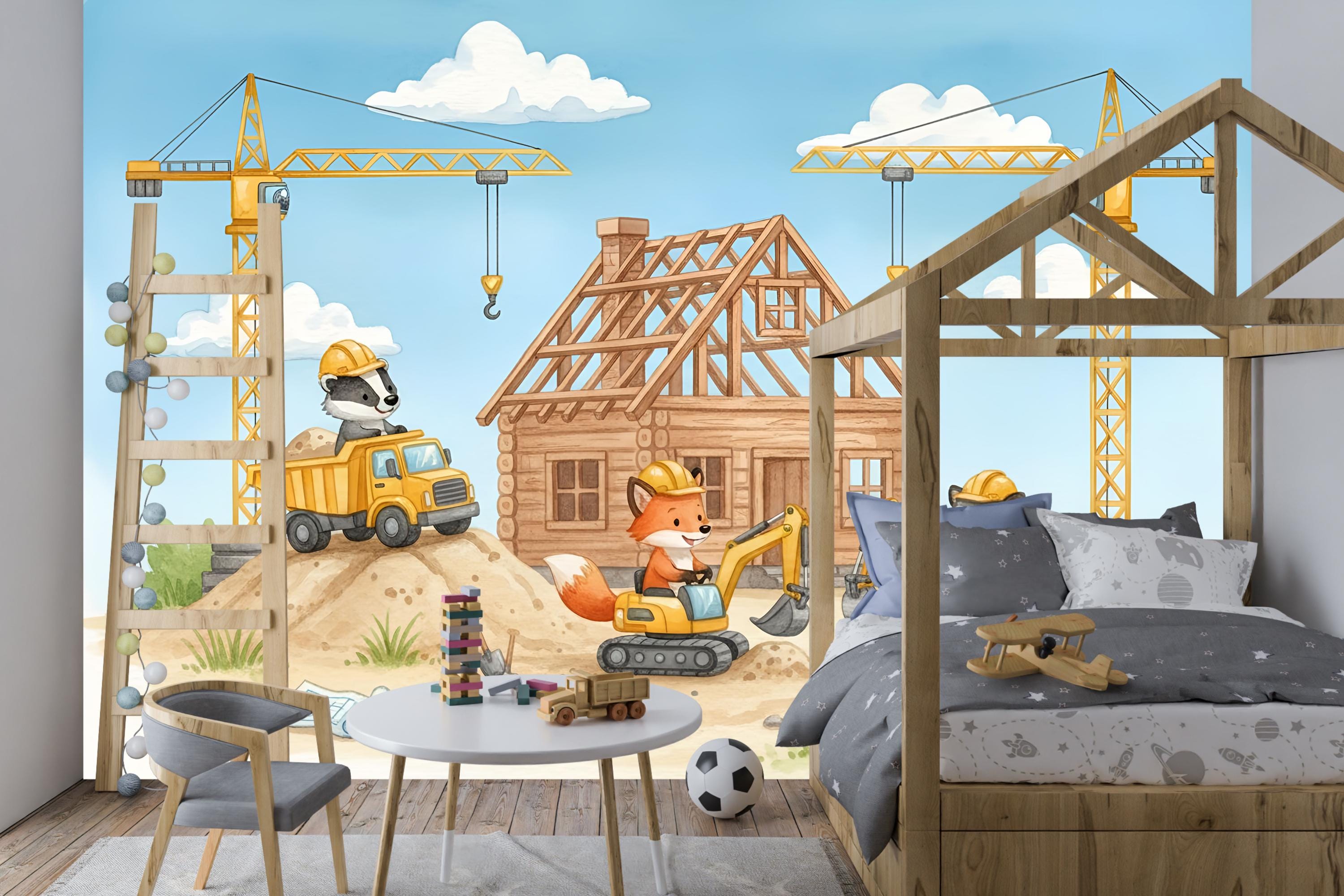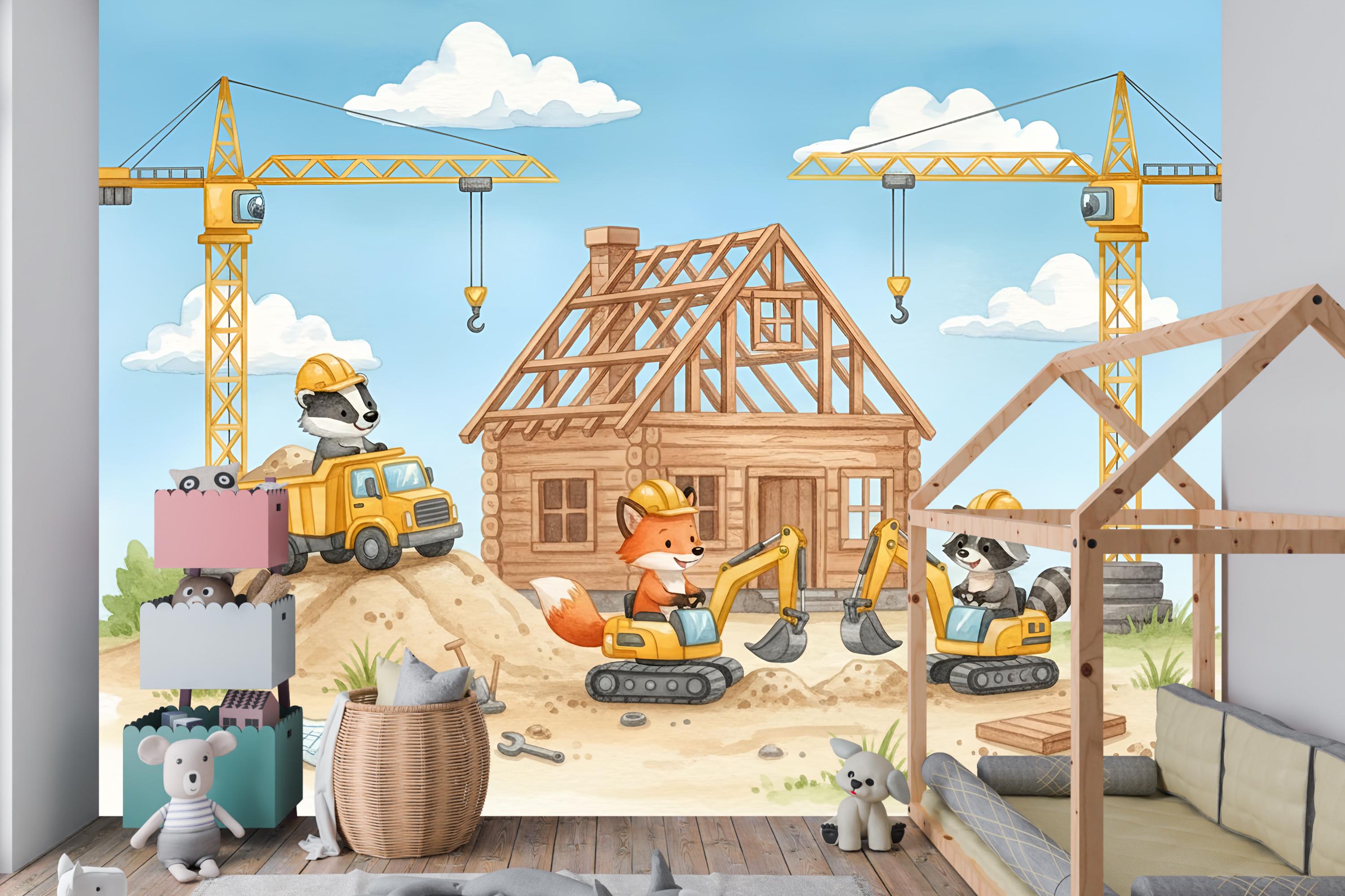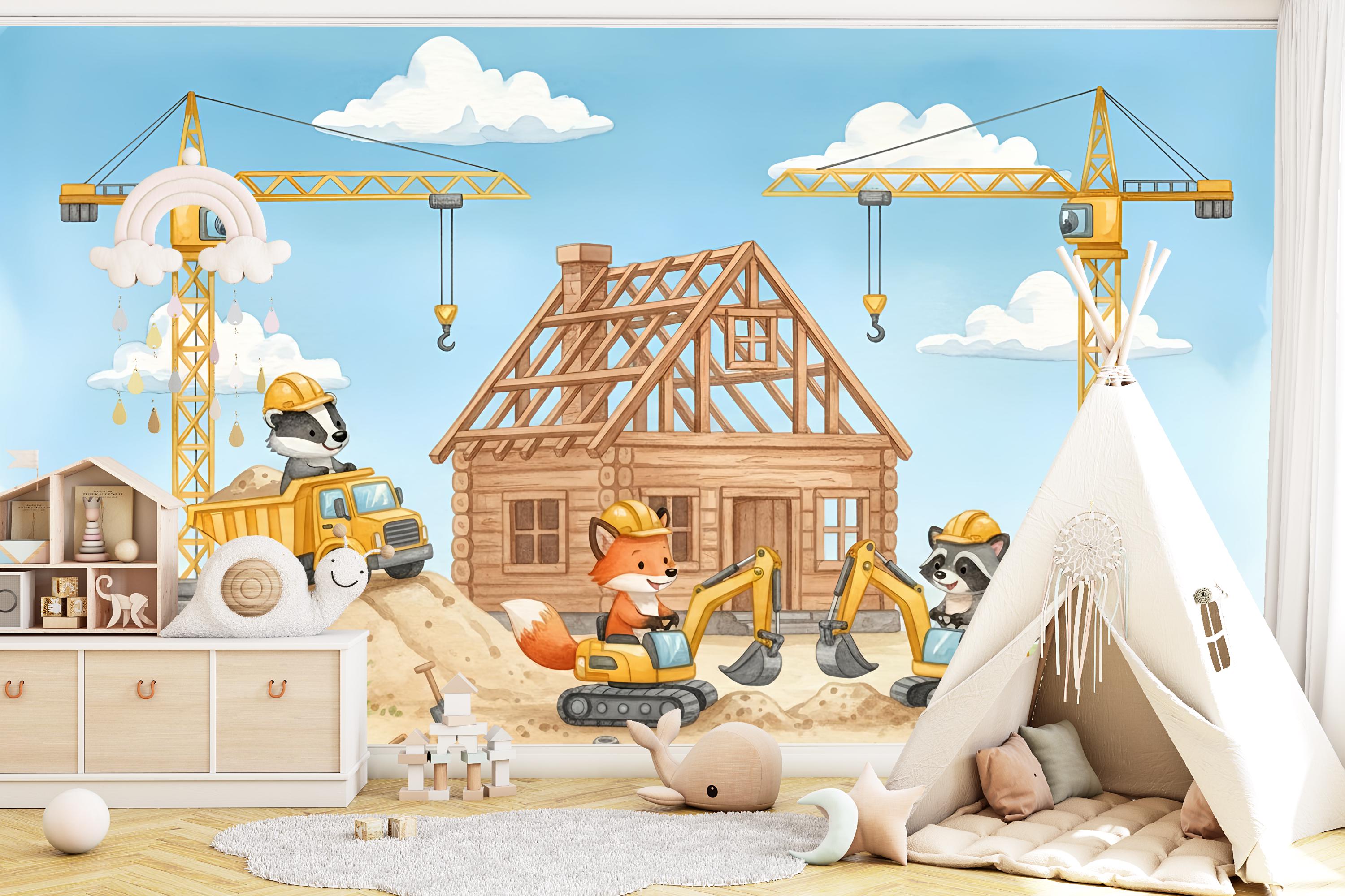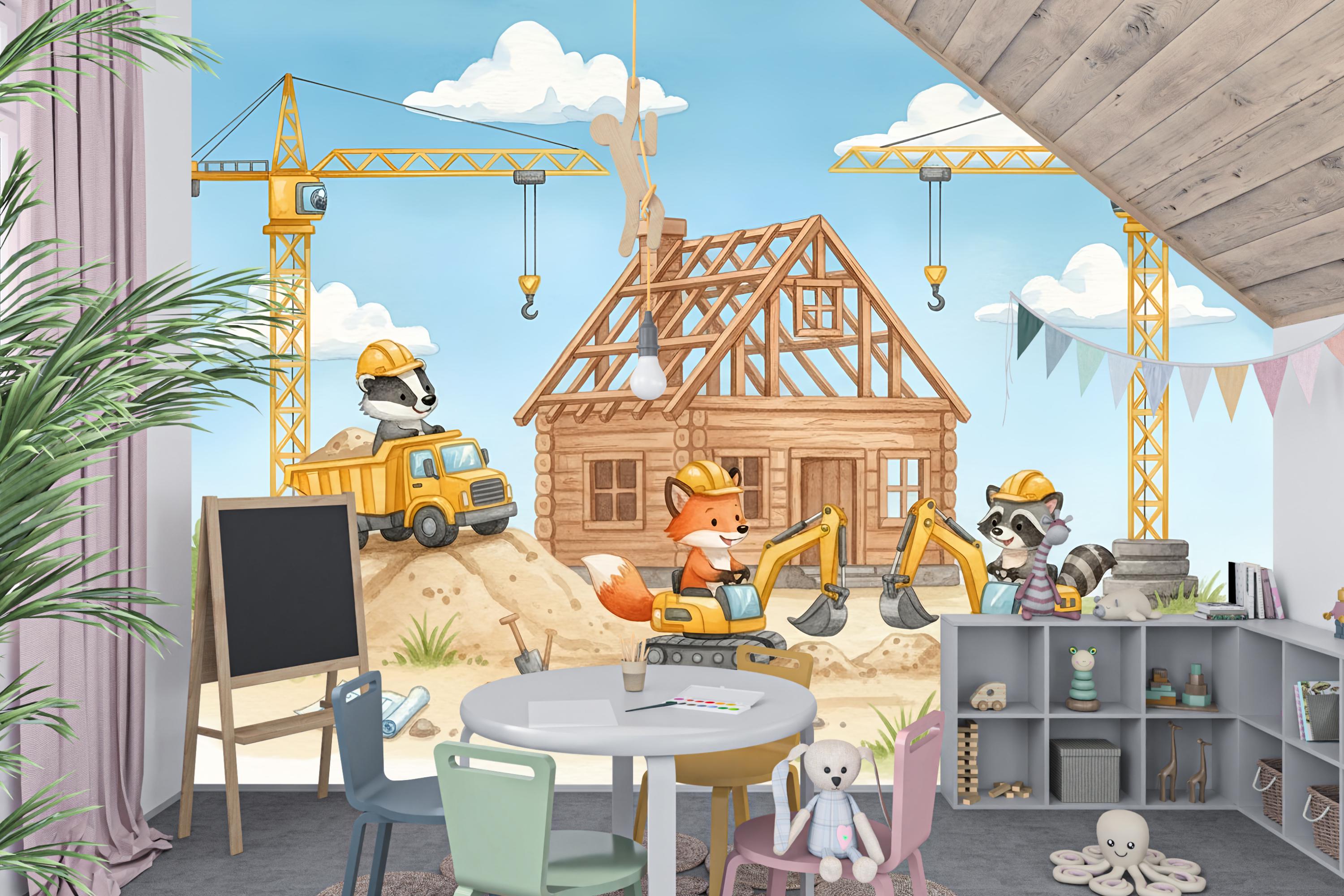 Inspire big dreams and endless play with our adorable animal construction wallpaper!
