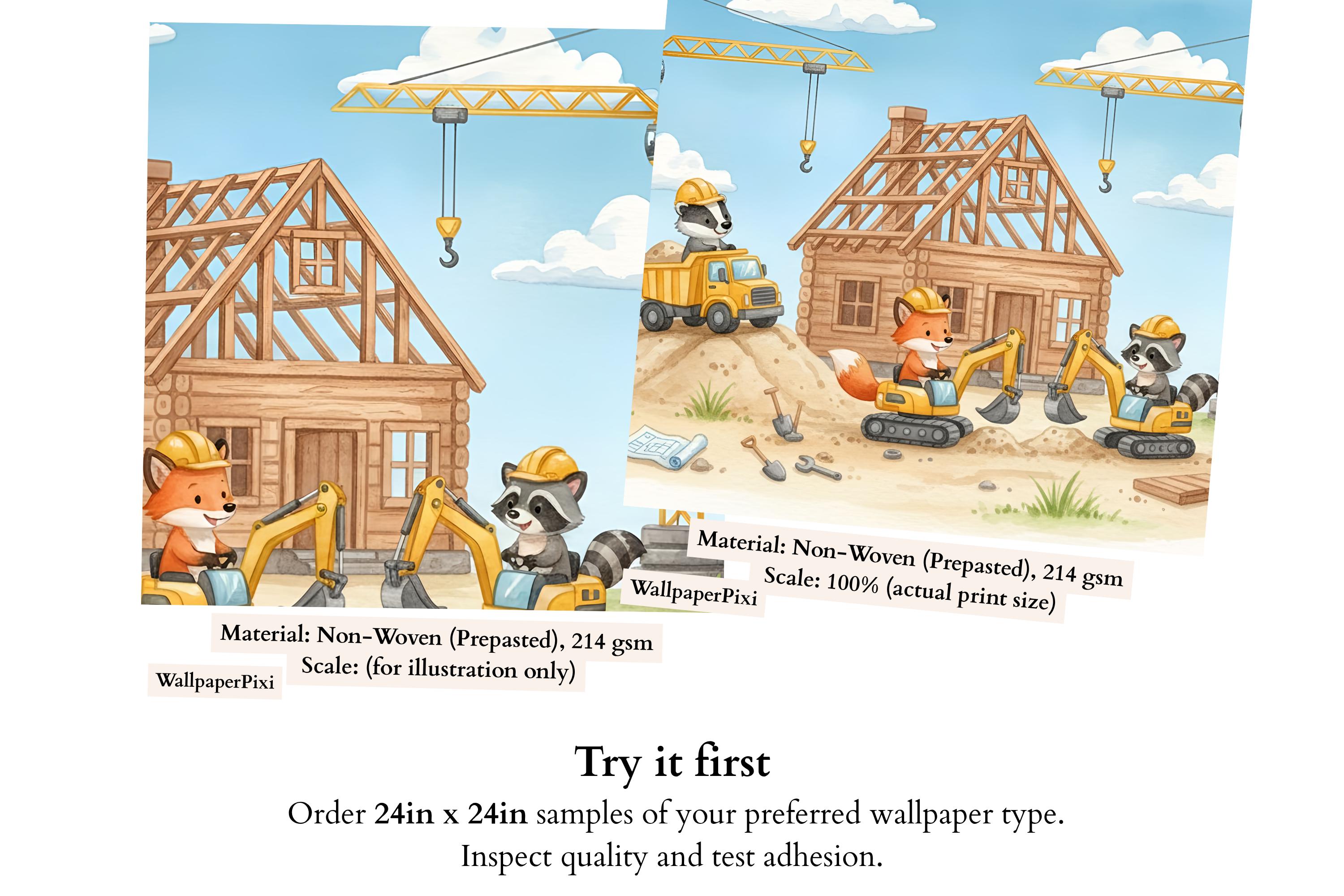 Each custom-sized panel beautifully captures the playful spirit and soft watercolor artistry of this unique design, printed on high-quality, eco-friendly materials. This isn't just wallpaper; it's a durable, fade-resistant piece of art that encourages creativity, teamwork, and a love for building. Give your child the gift of a dynamic space where their favorite animals are the stars of their very own construction adventure, a backdrop for countless hours of fun.