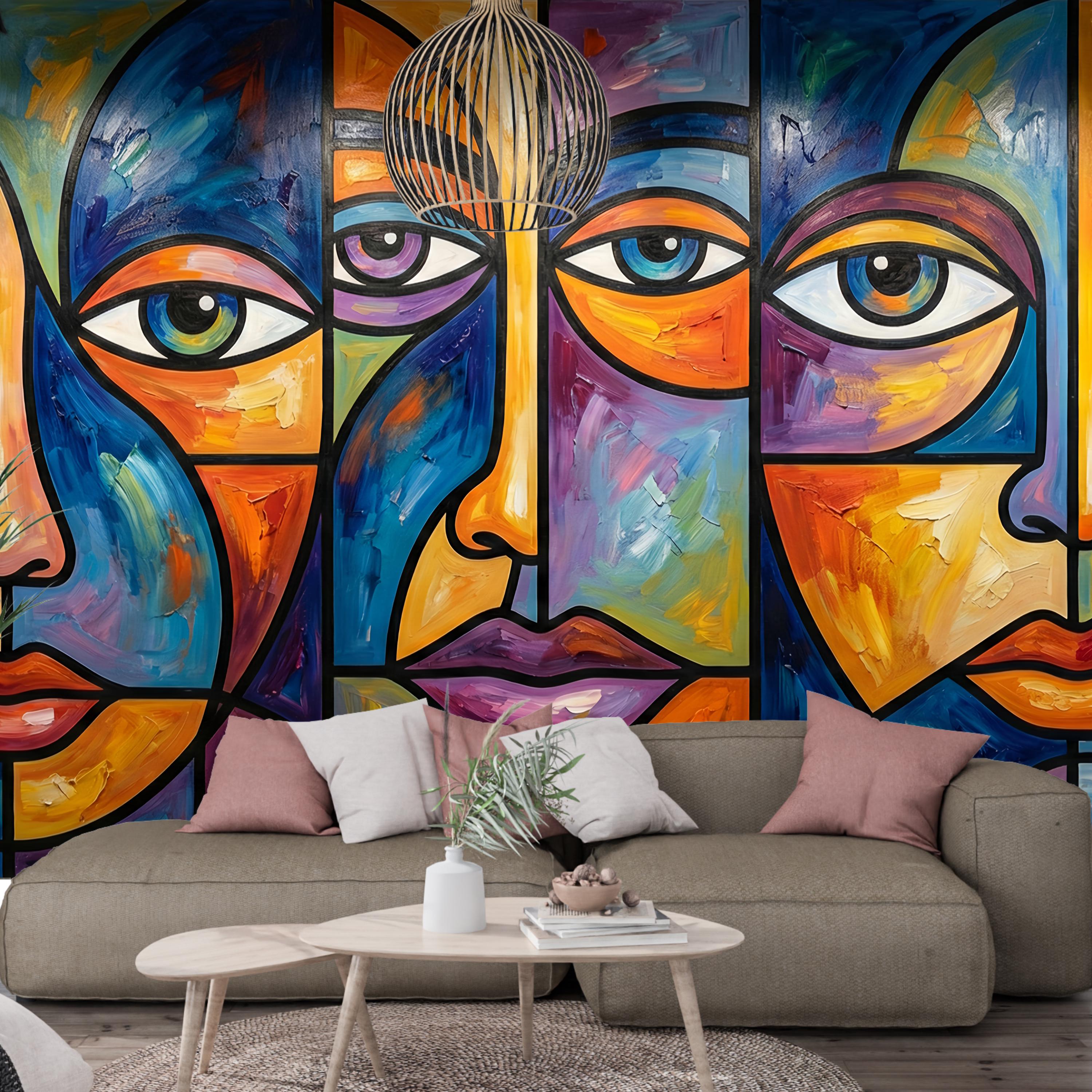 Transform your space into a modern art gallery with this Abstract Cubist Faces Wallpaper Mural. This isn't just background decor; it's a bold conversation starter that defines the room.