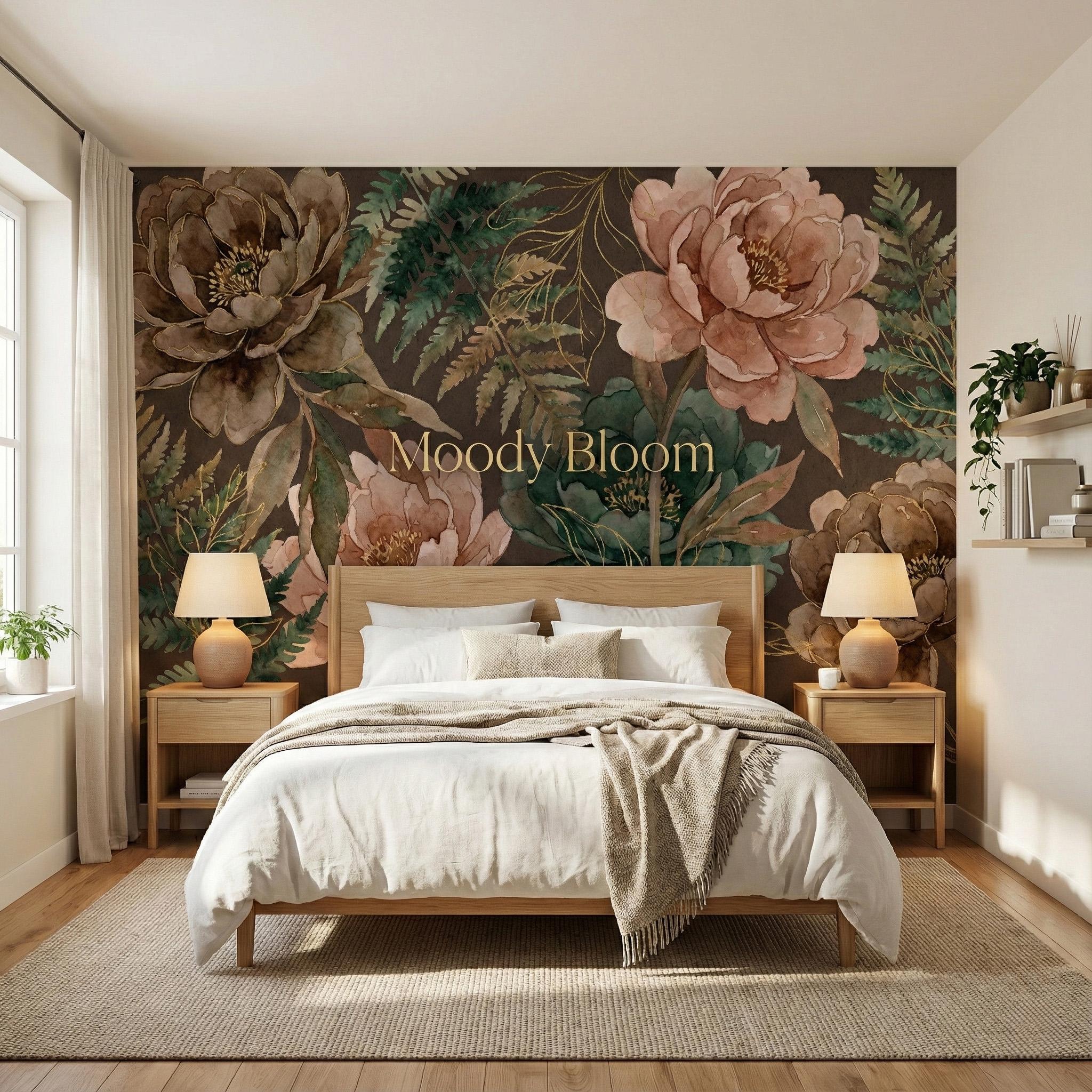 Bring drama and sophistication to your home with our stunning Dark Floral Wallpaper. This design is the perfect centerpiece for anyone looking to embrace the trending Moody Wall Decor style, combining deep, rich hues with delicate floral elegance.