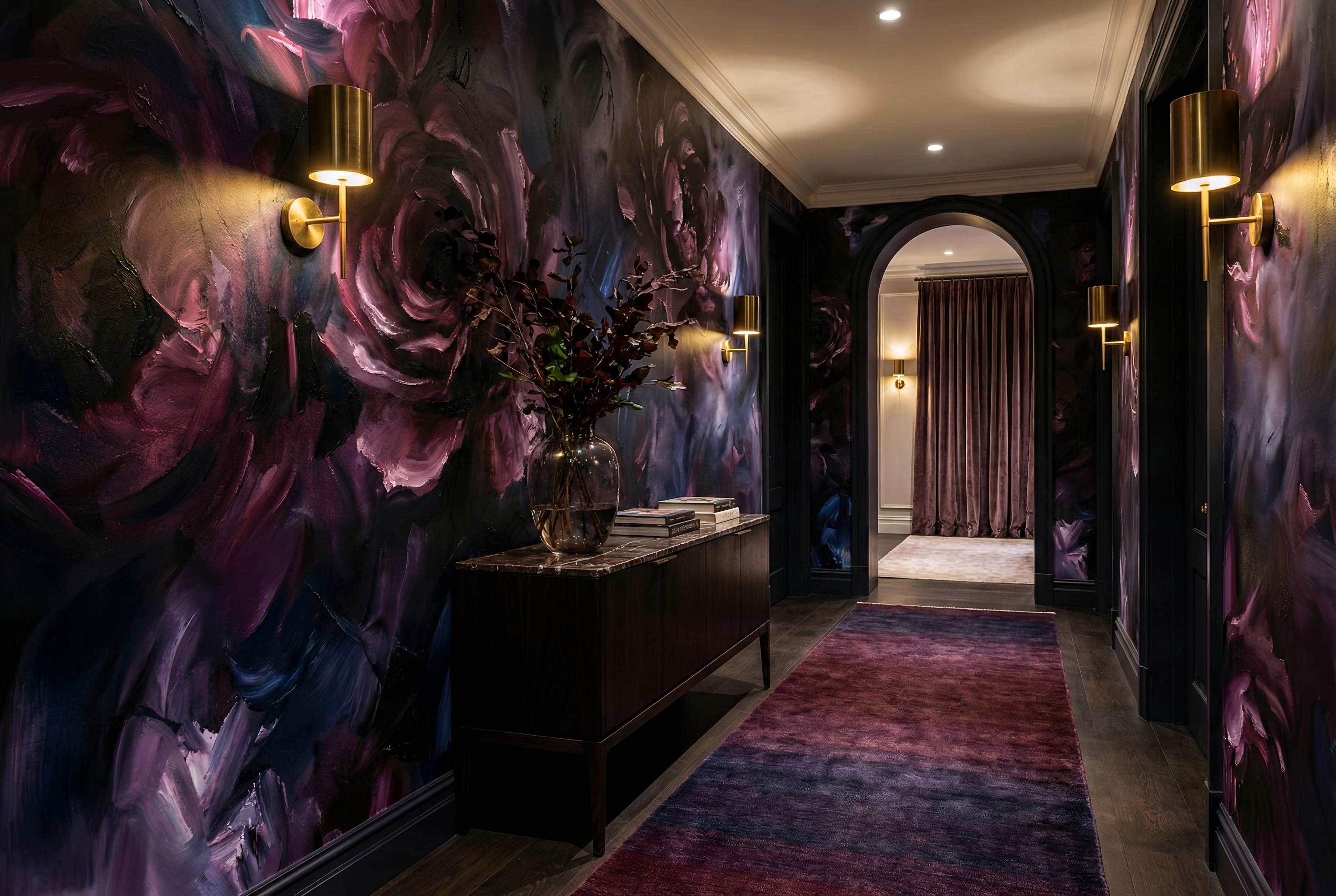 This wallpaper doesn’t fade into the background — it defines the room. The layered brushwork and dark florals create intimacy, depth, and quiet drama. Perfect for those who love bold design, emotional interiors, and timeless artistic expression.