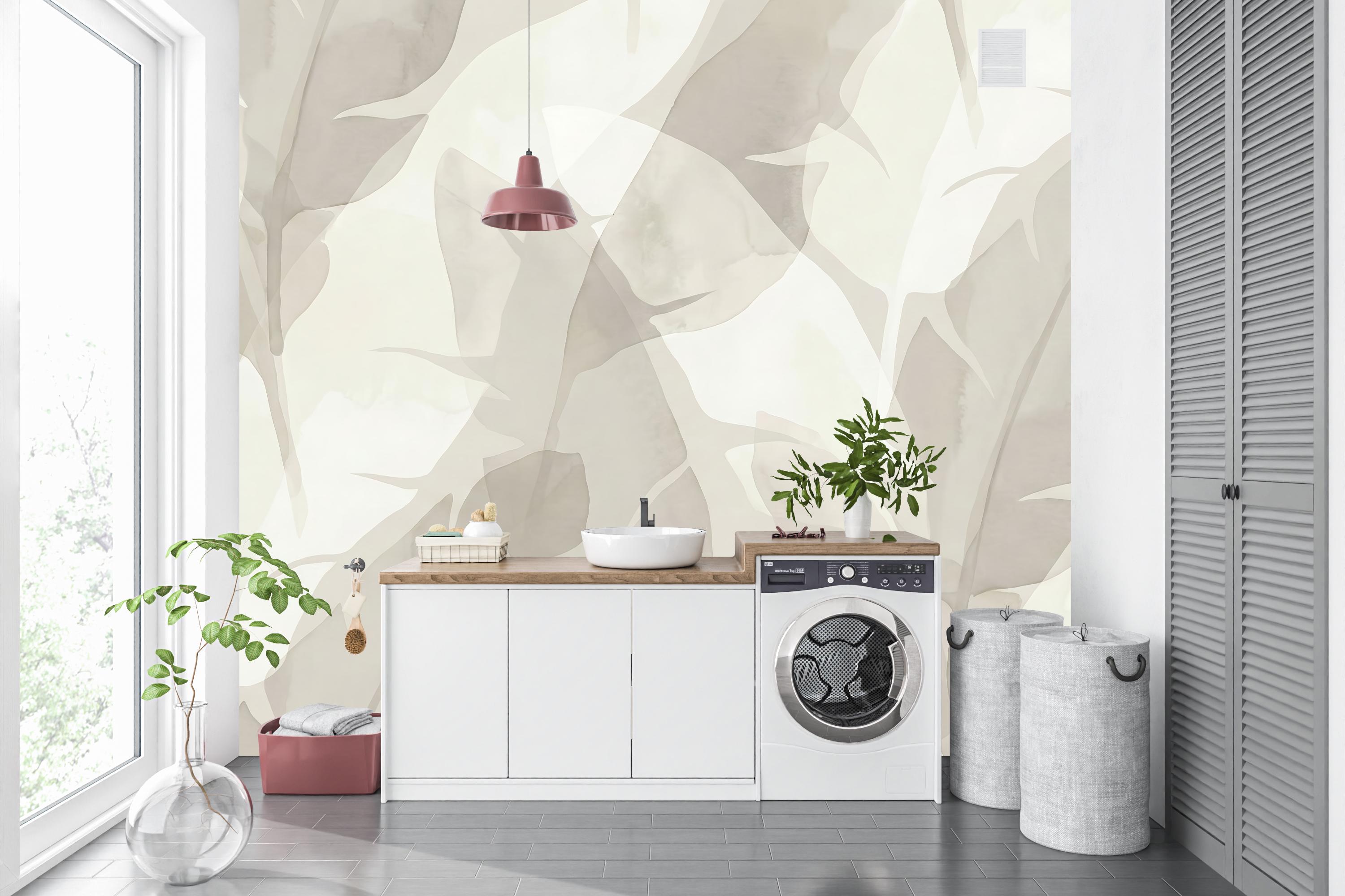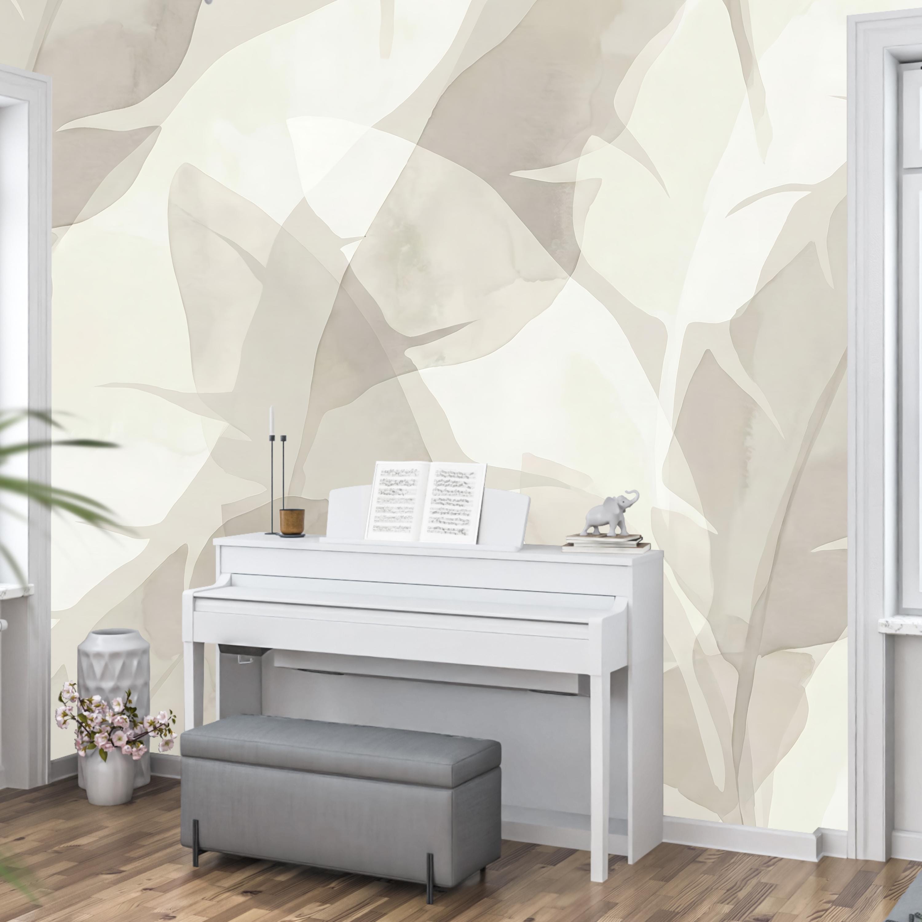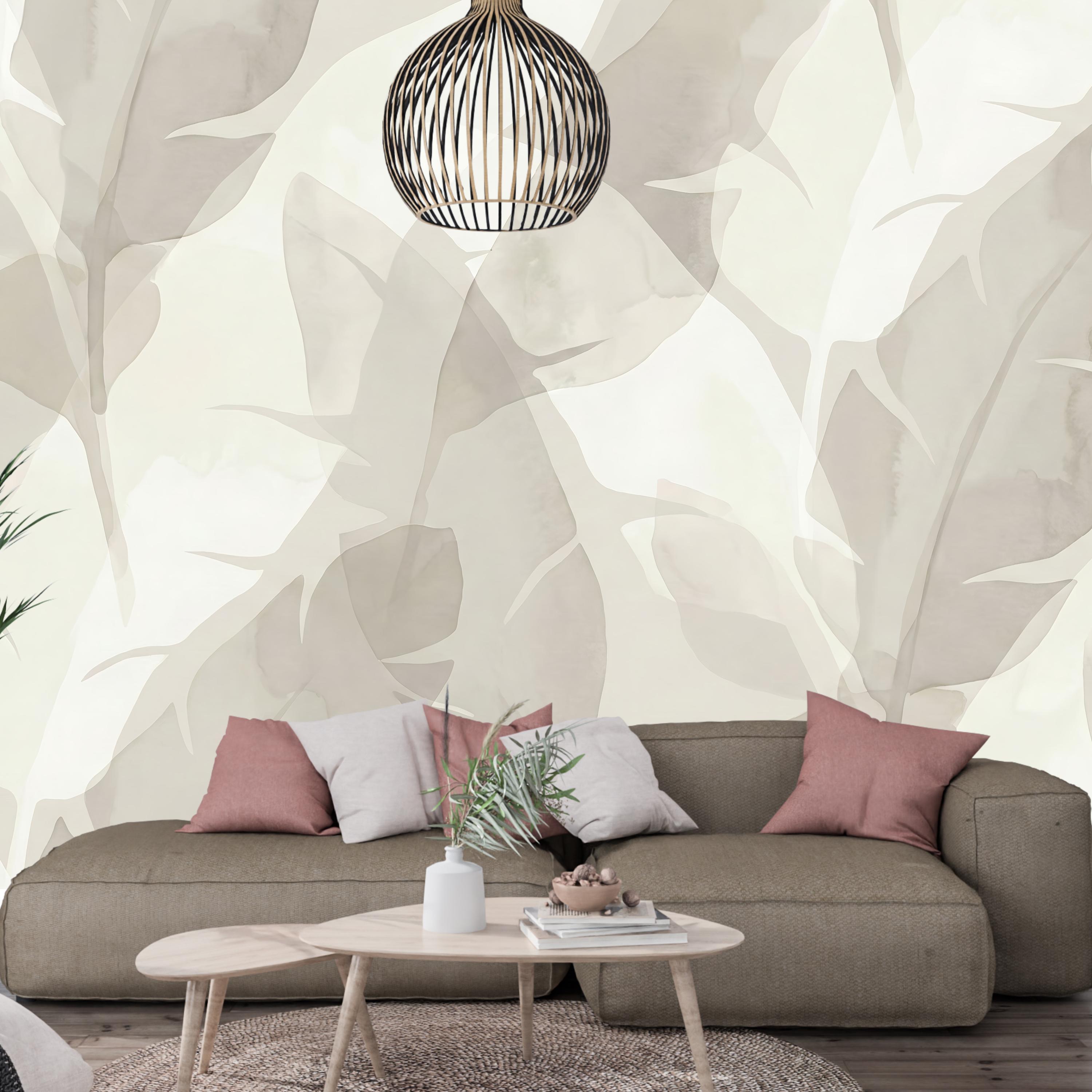 Create a calm, elevated atmosphere with soft banana leaves in warm beige tones — a timeless wall mural designed for modern, serene interiors that never go out of style.