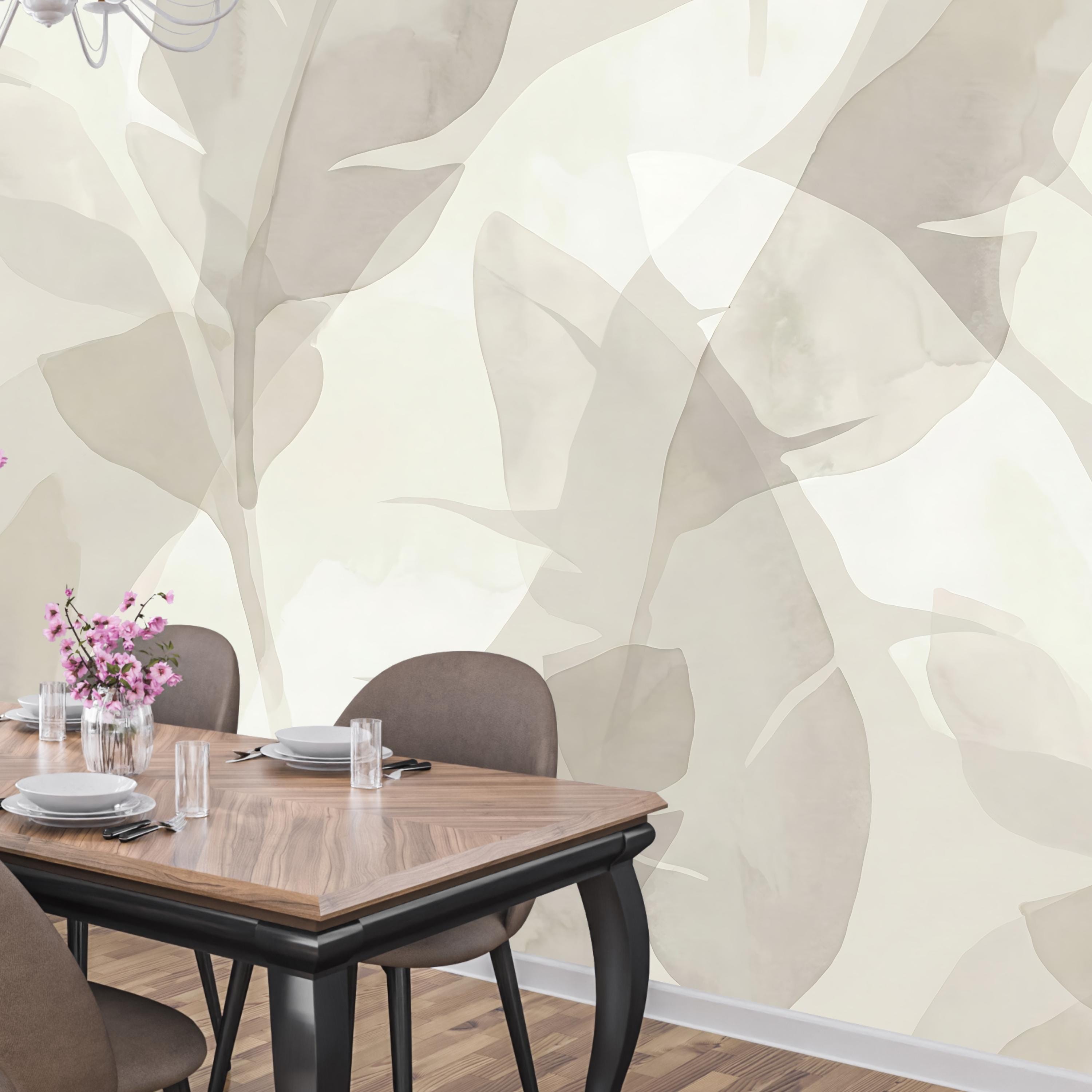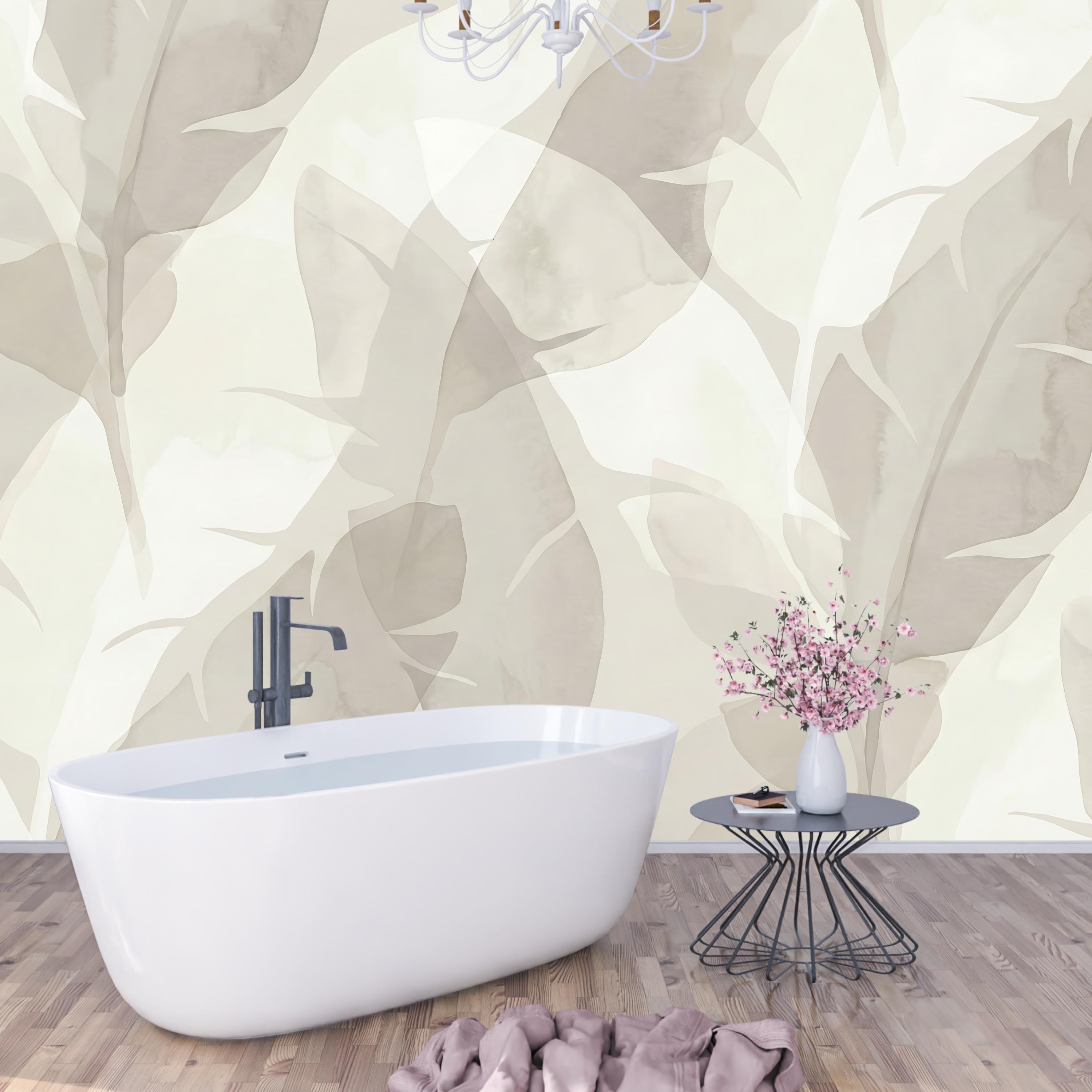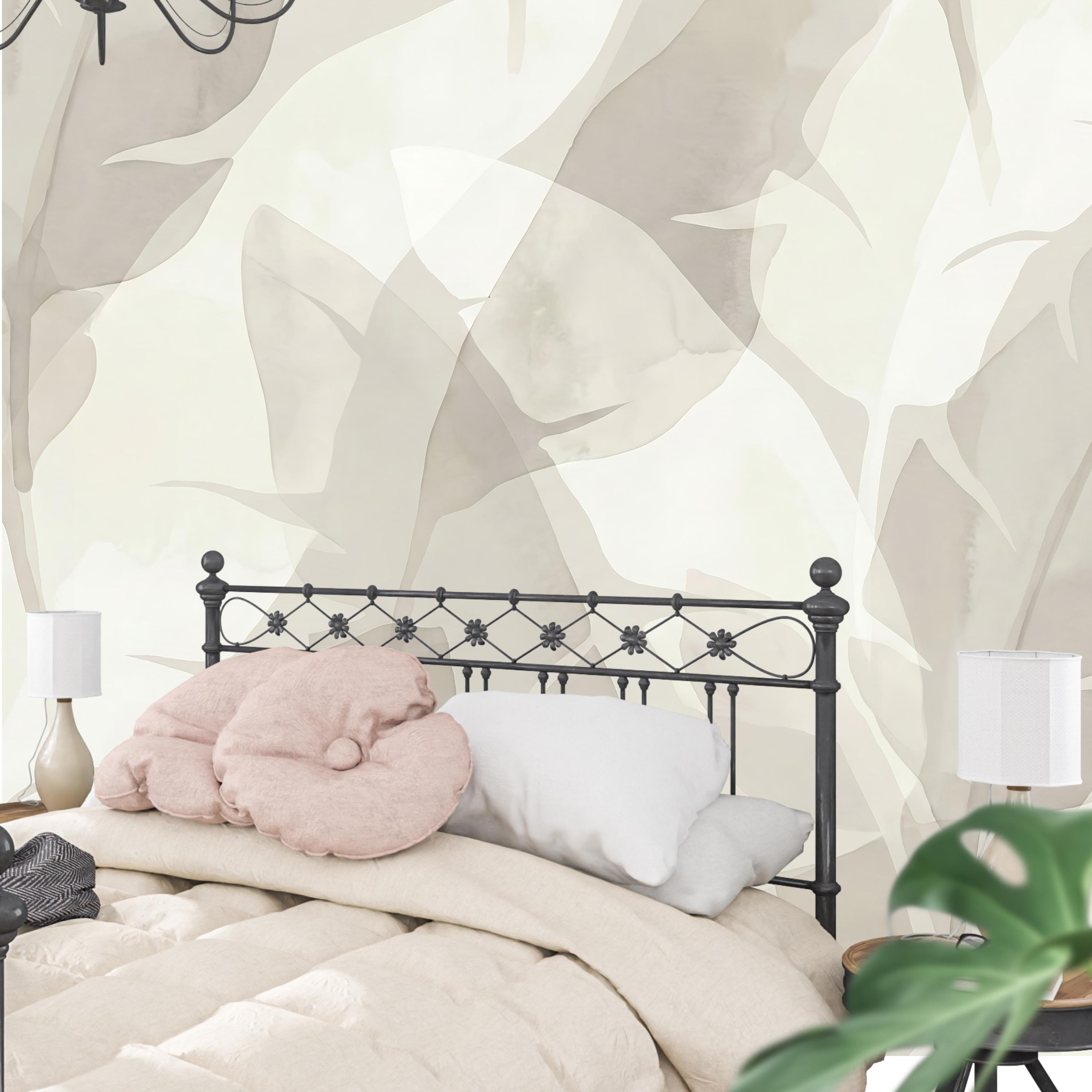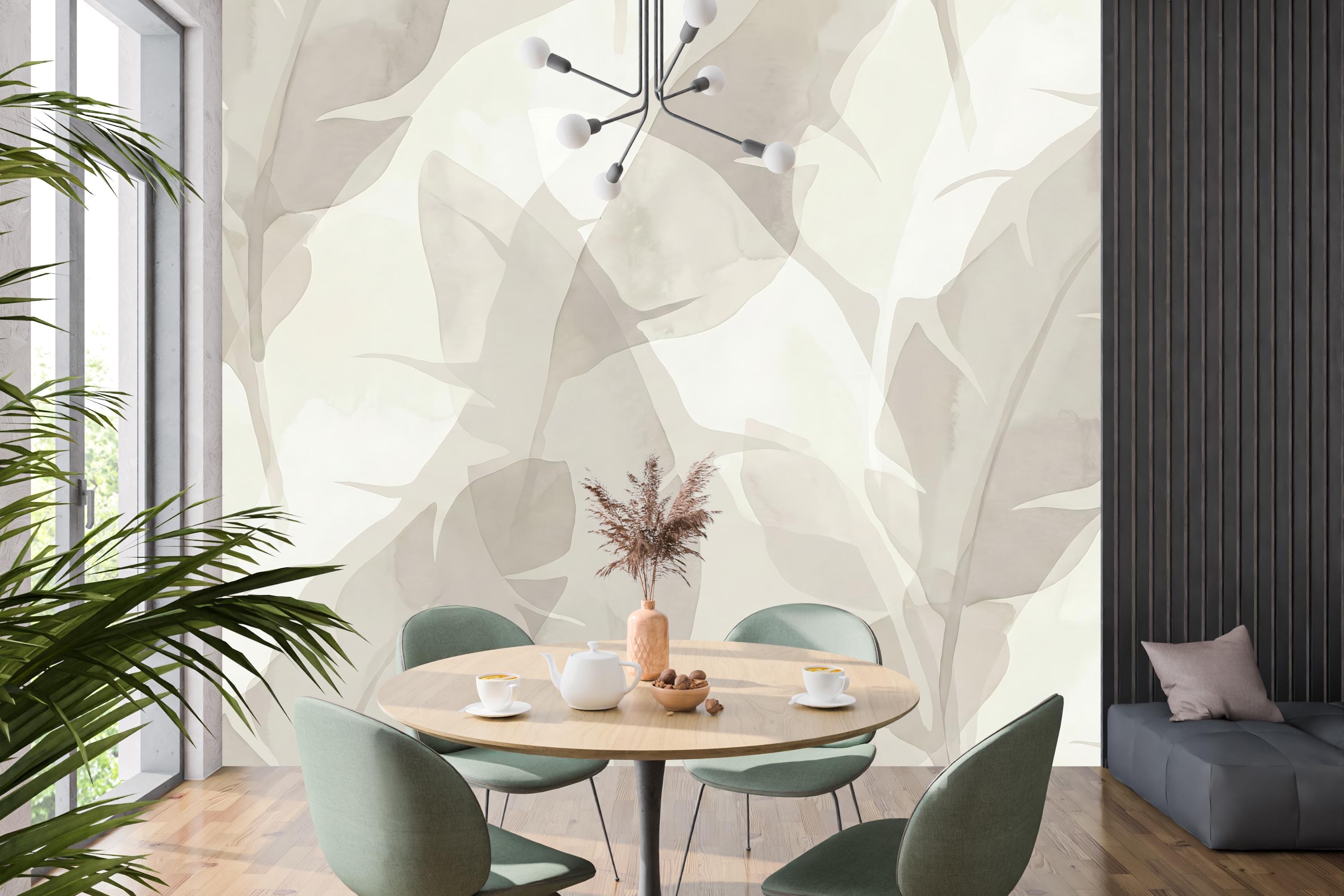 Create a calm, elevated atmosphere with soft banana leaves in warm beige tones — a timeless wall mural designed for modern, serene interiors that never go out of style.