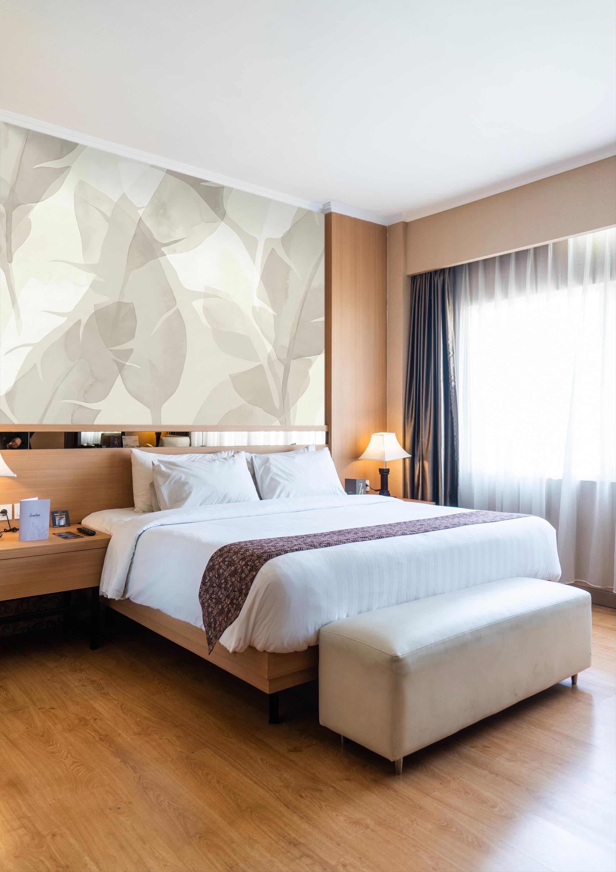 Large-scale leaf pattern creates depth and elegance without overpowering the room