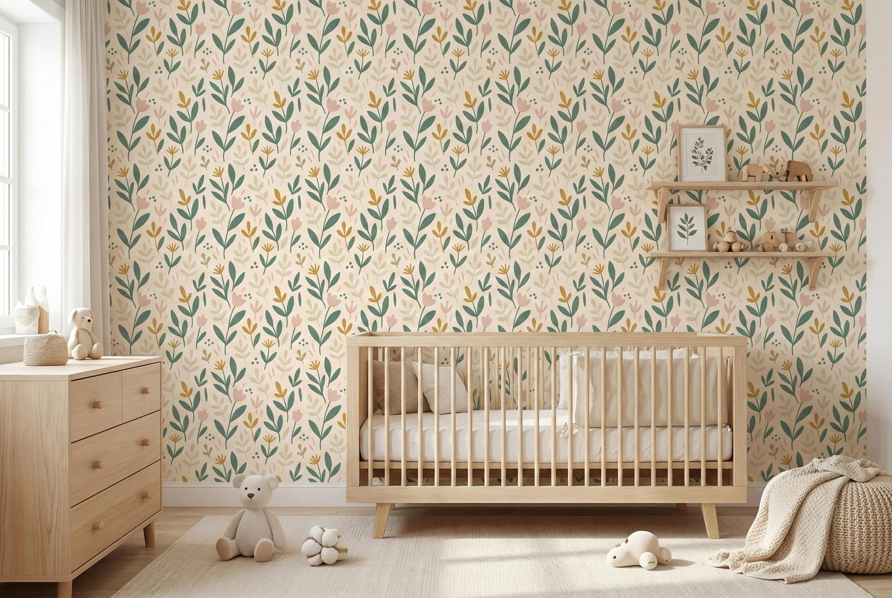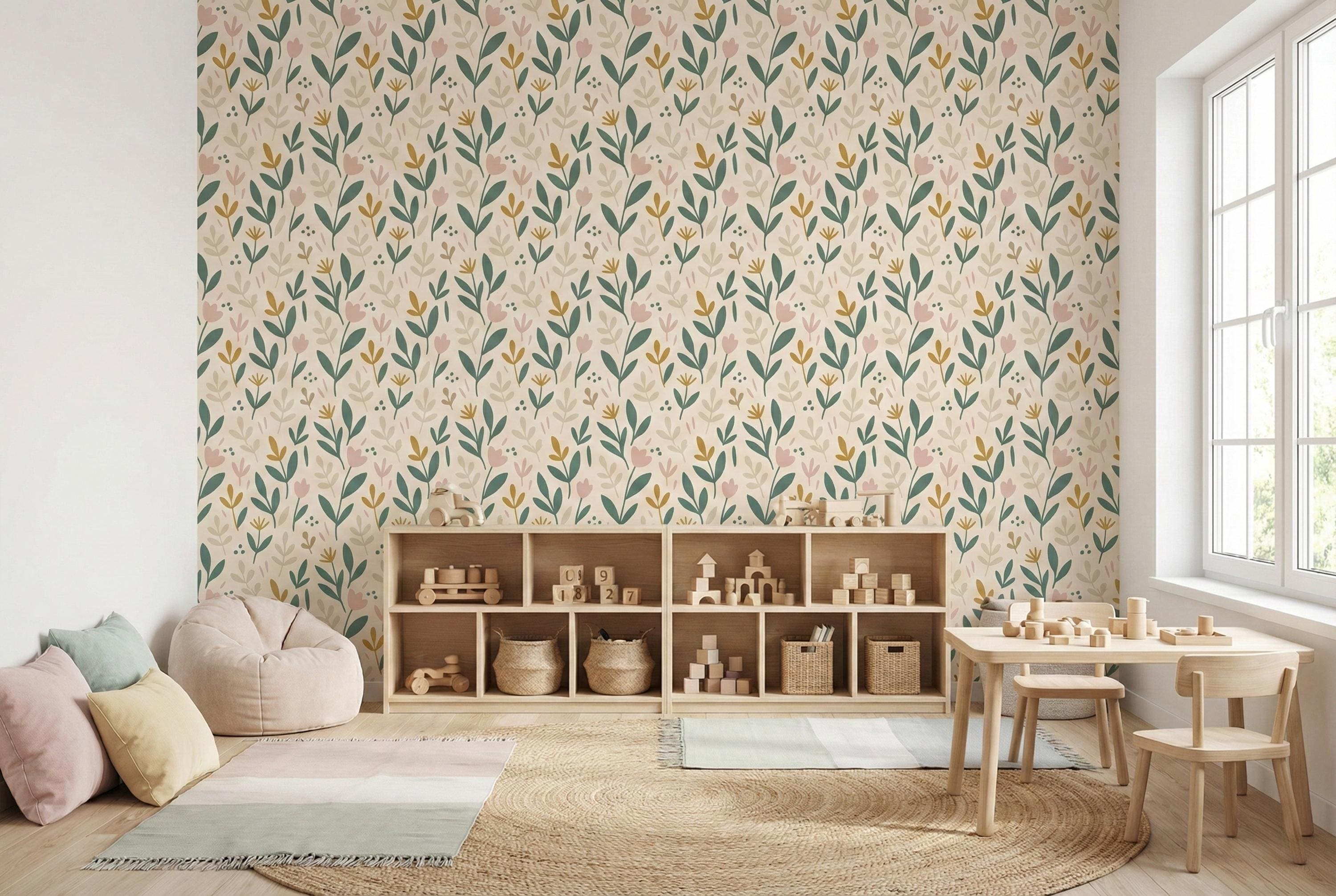 Ideal for nurseries, bedrooms, living rooms, or creative spaces, this foliage wallpaper transforms your wall into a soft, welcoming backdrop that never overwhelms.