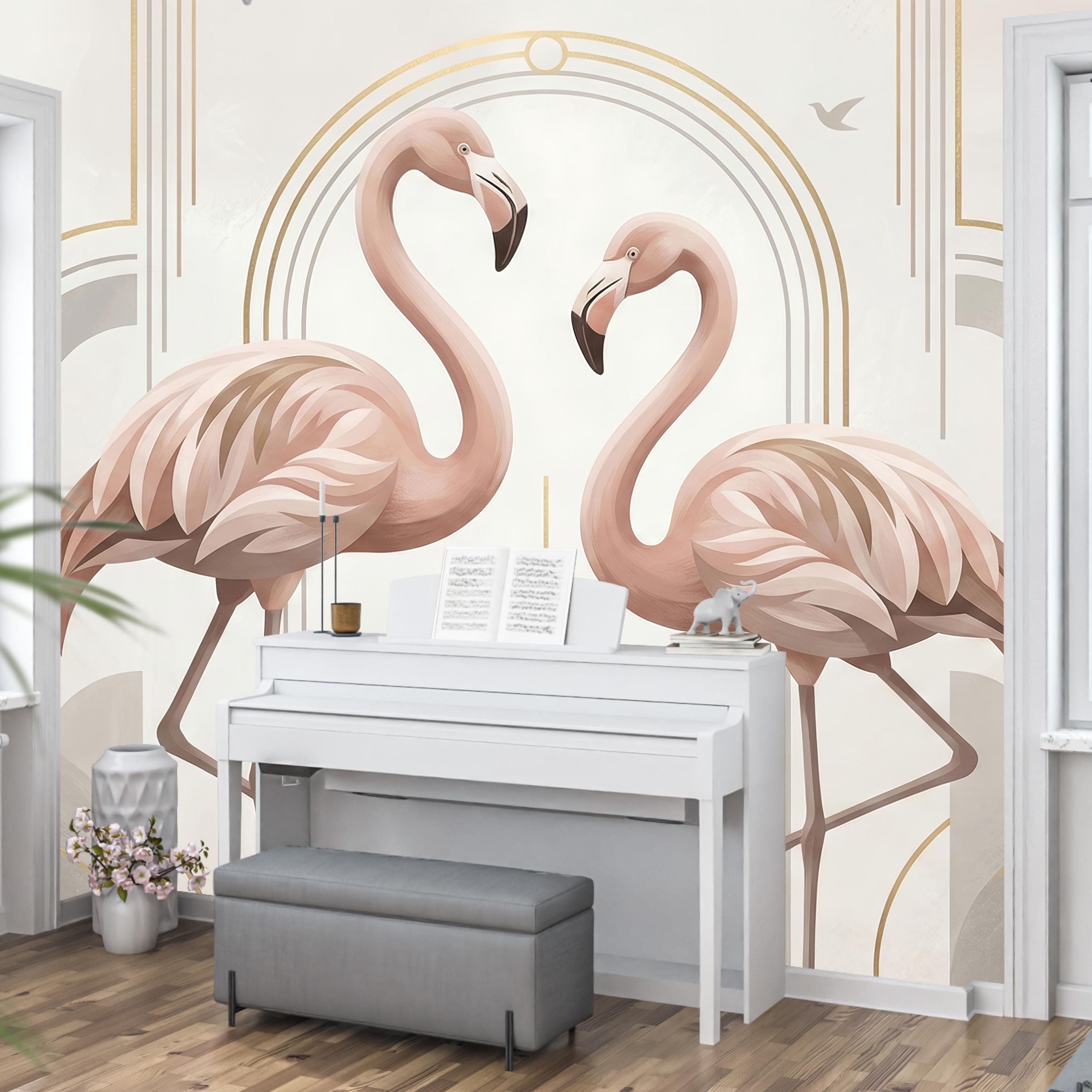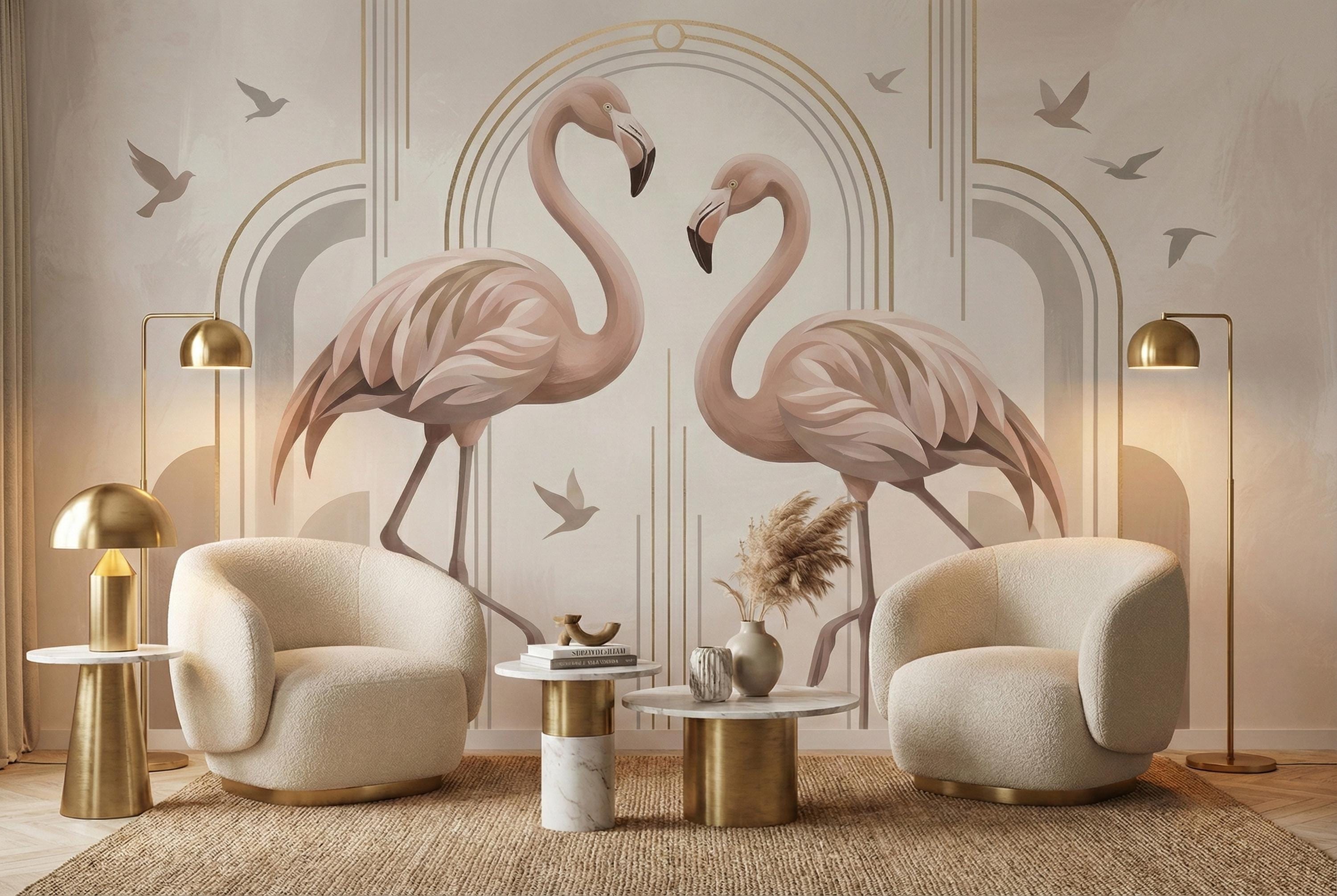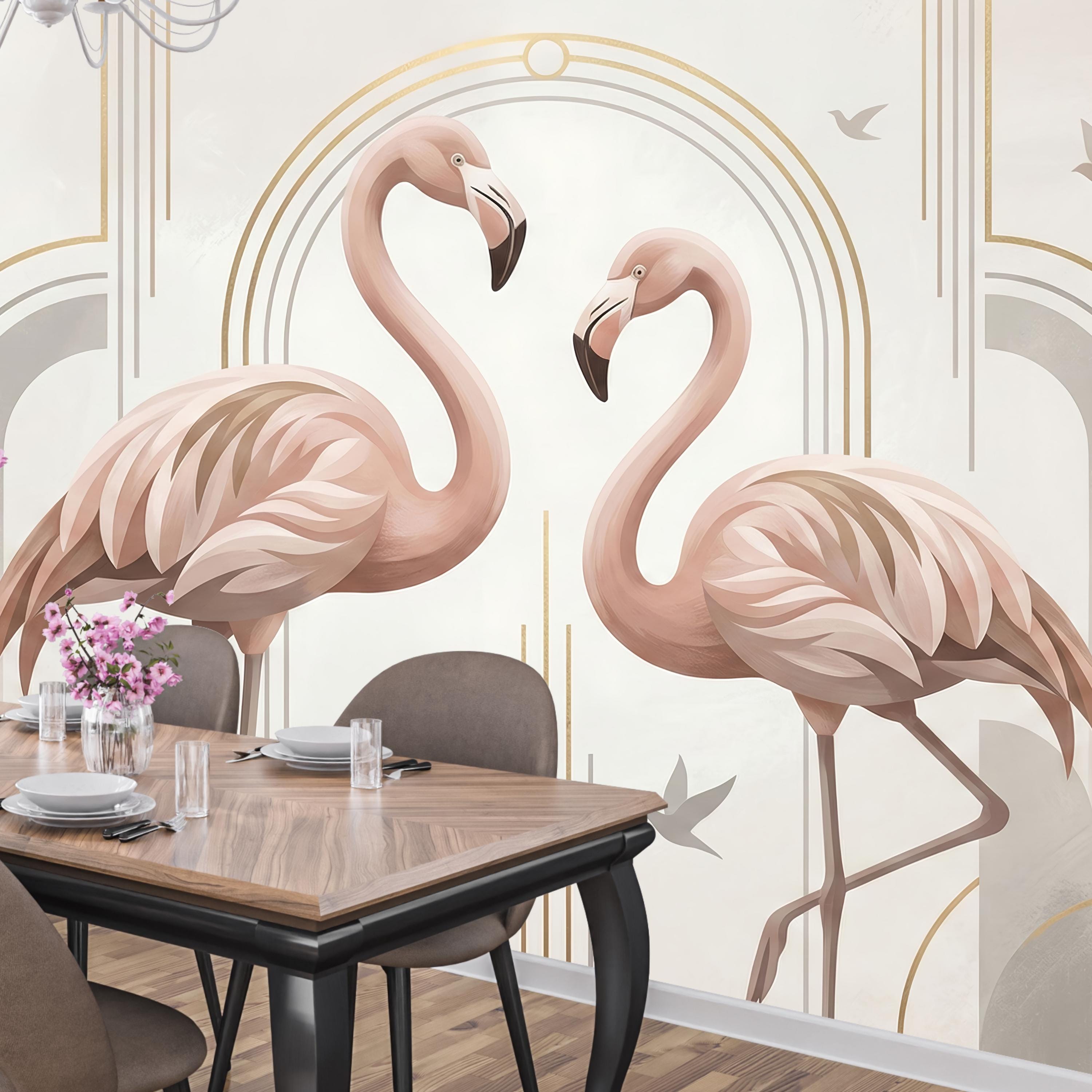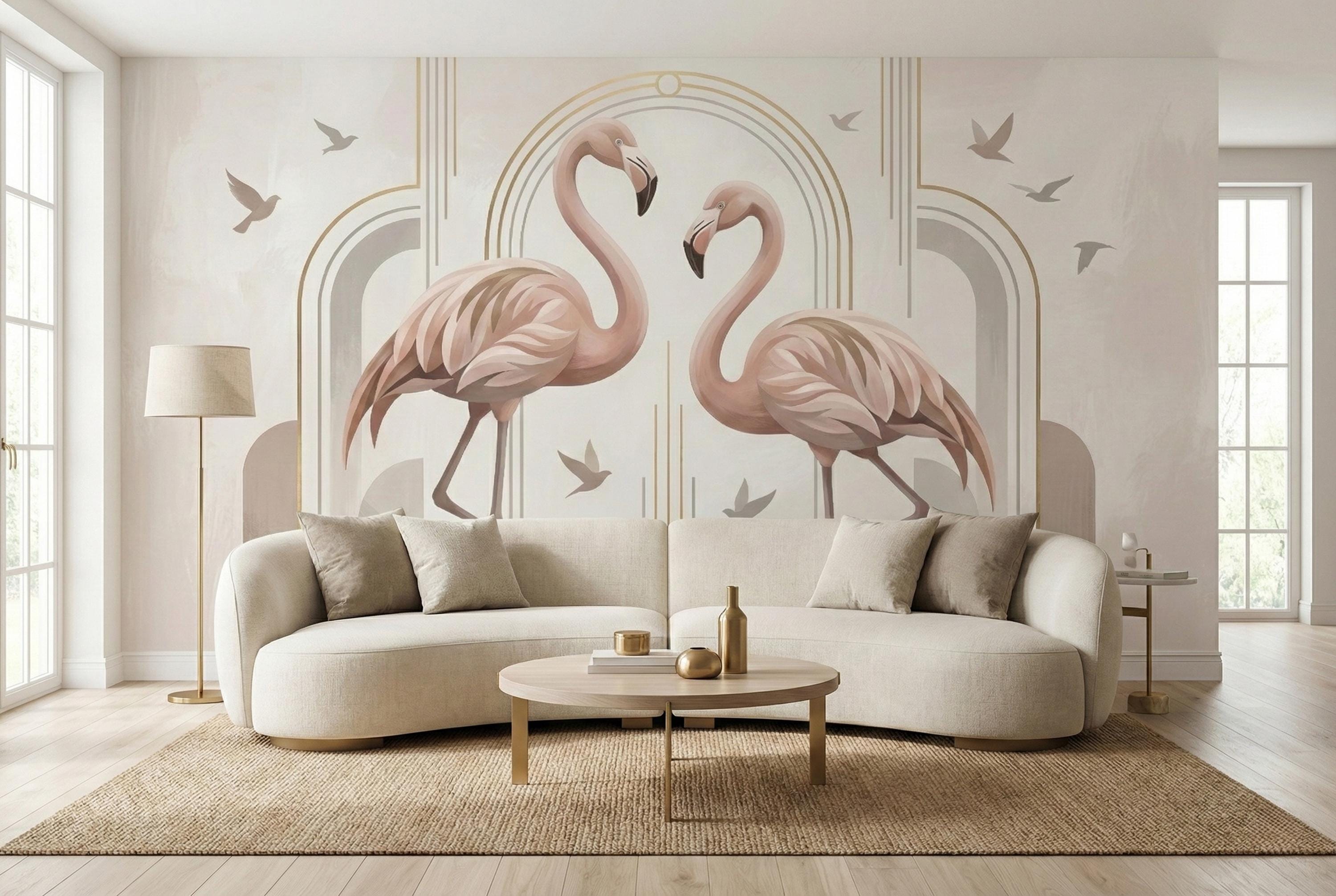 Transform your walls into a serene paradise with our Art Deco Flamingo Wallpaper Mural, a blend of timeless elegance and modern charm. Soft blush tones, minimalist lines, and romantic flamingos come together to create a wallpaper that brings sophistication, tranquility, and a luxurious boutique vibe to any space 🦩✨