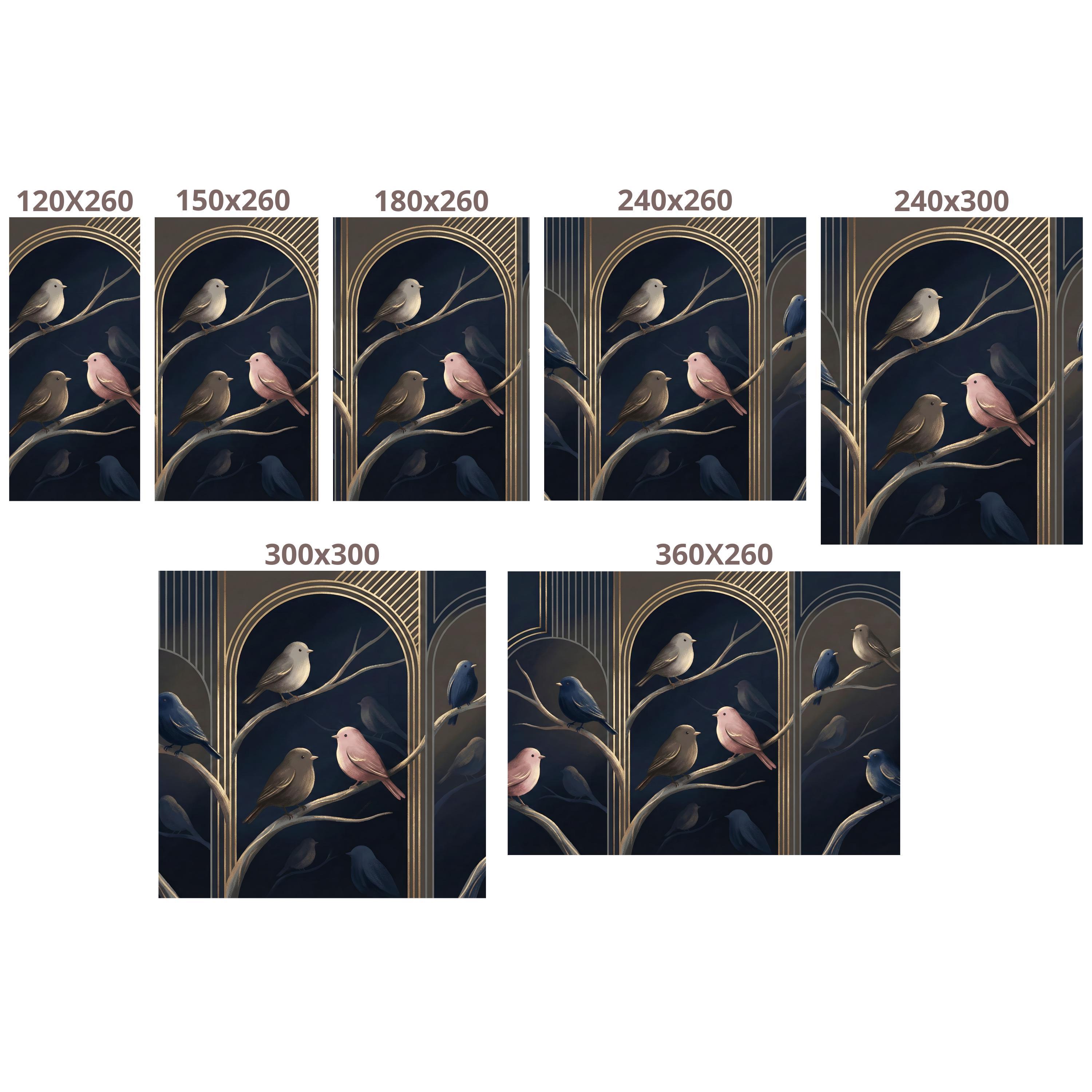 🐦 Delicate Bird Motif – Graceful birds in blush pink, beige, navy, and charcoal perch on soft-branch illustrations, offering a peaceful yet artistic statement for walls.