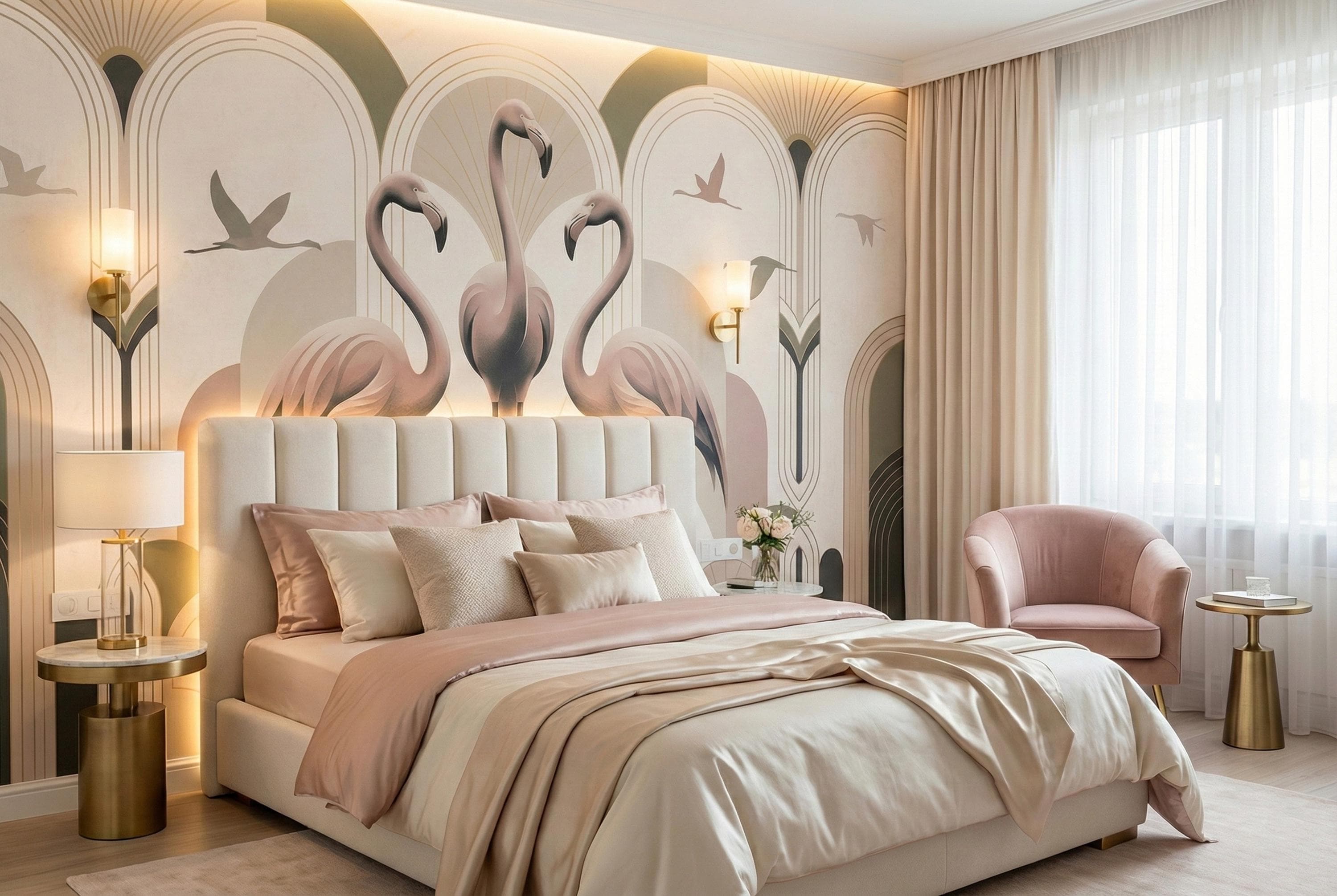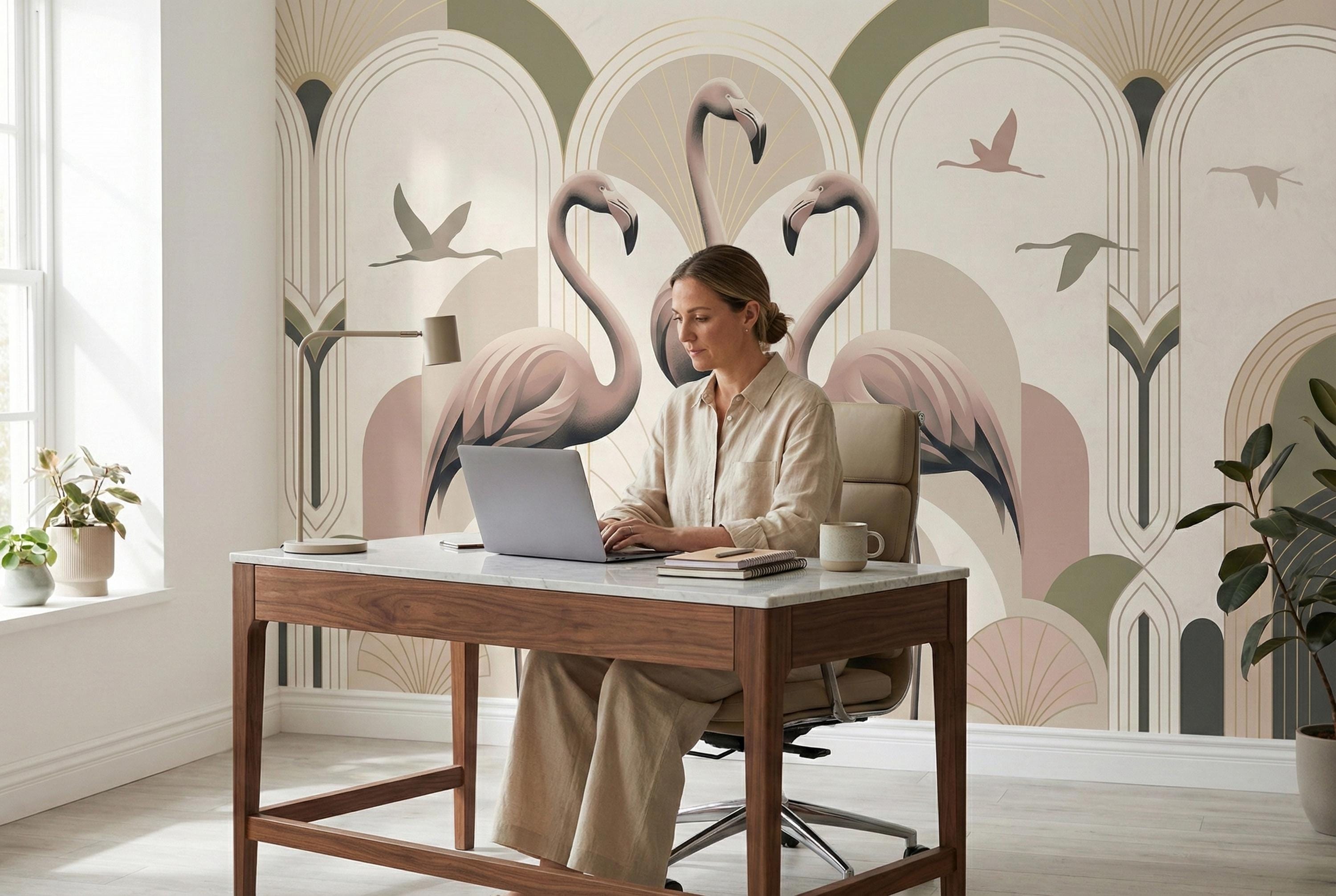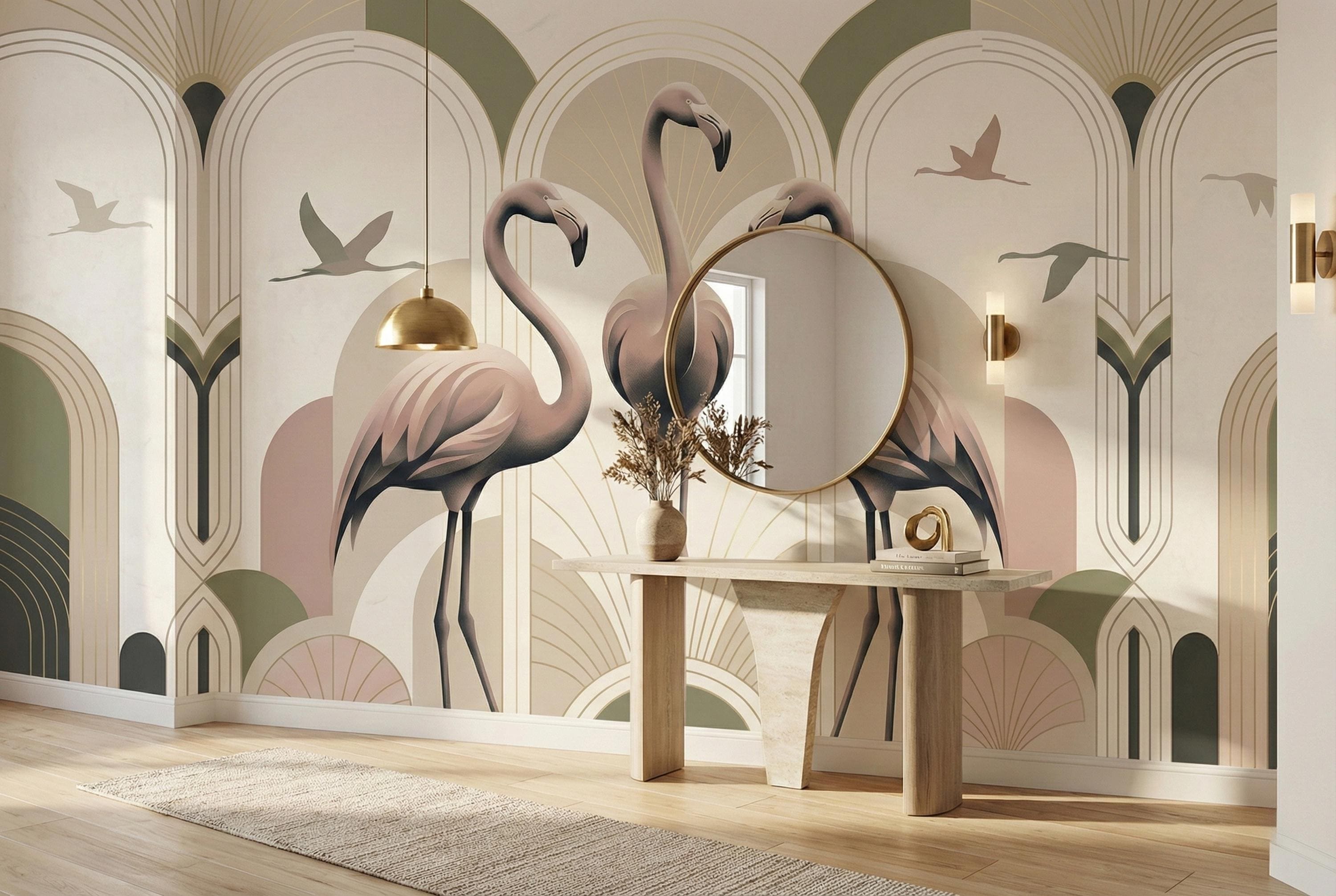 Graceful flamingos meet glamorous geometry in this Art Deco Flamingo Trio Wallpaper Mural β a bold yet elegant design that transforms your space into a scene of refined sophistication and timeless charm π¦©π With clean symmetry, muted retro tones, and dramatic deco-style arches, this mural makes a perfect statement wall for modern, eclectic, or vintage-inspired interiors.