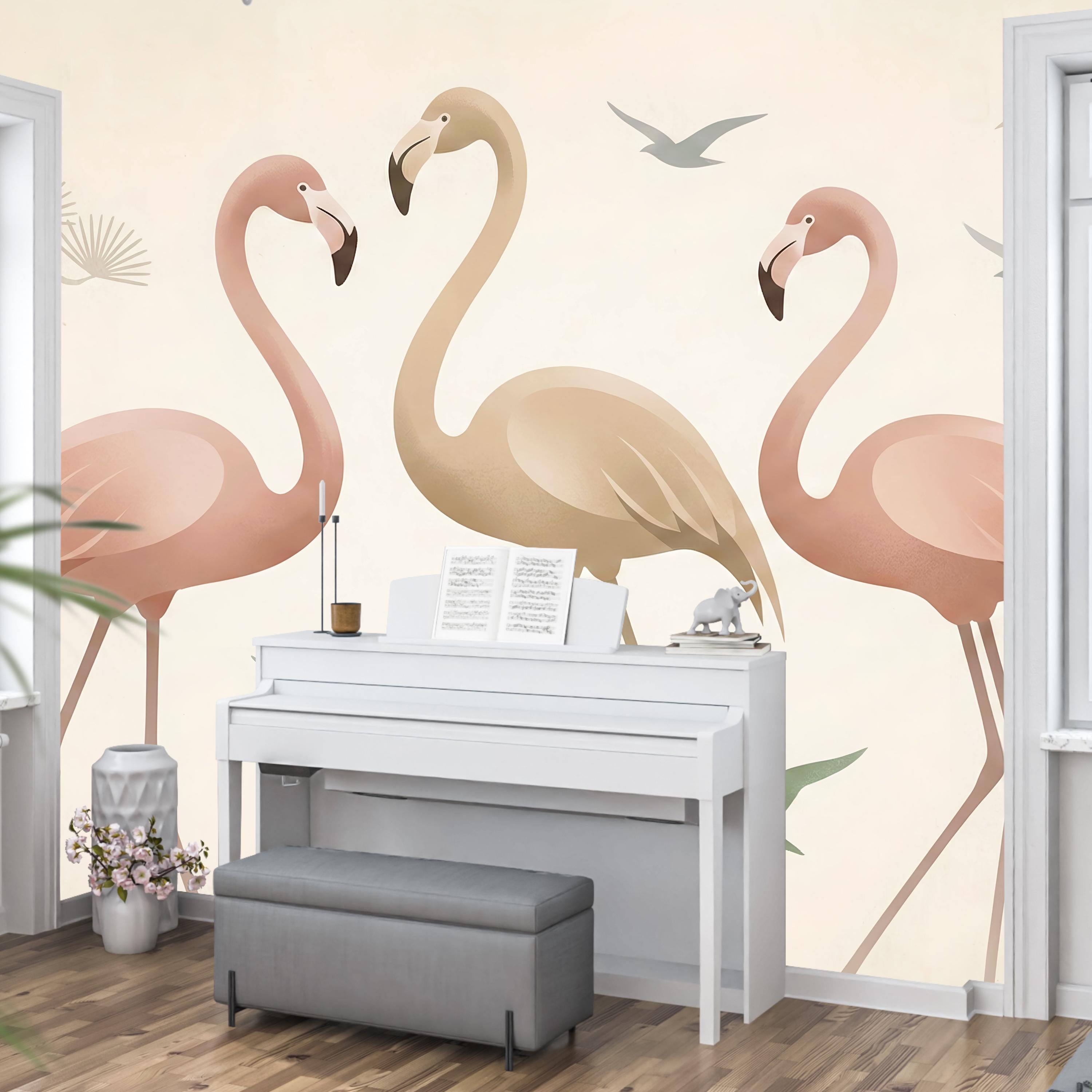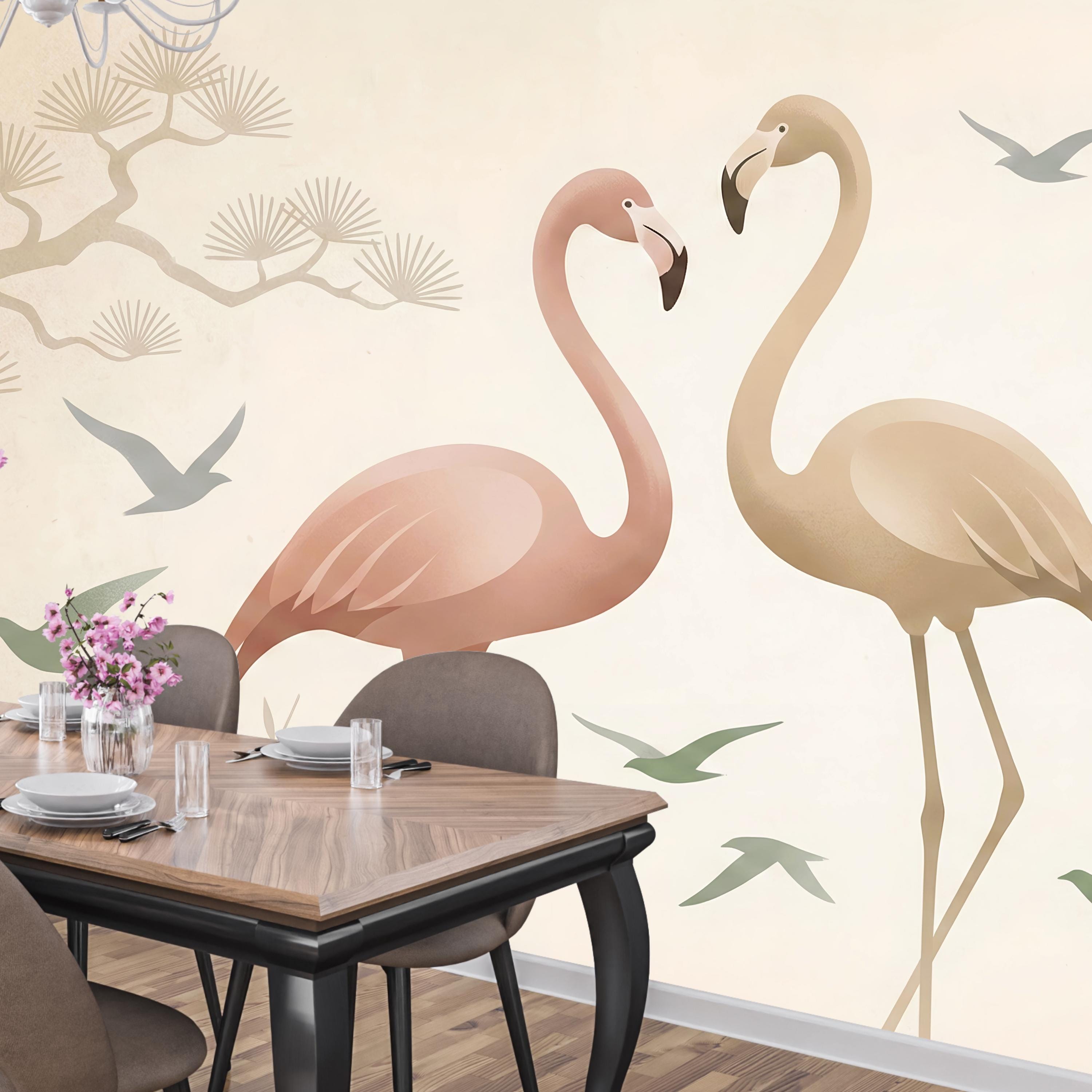 Let your wall breathe with simplicity and grace — this flamingo mural is the perfect balance of modern art and natural calm 🌾🦩