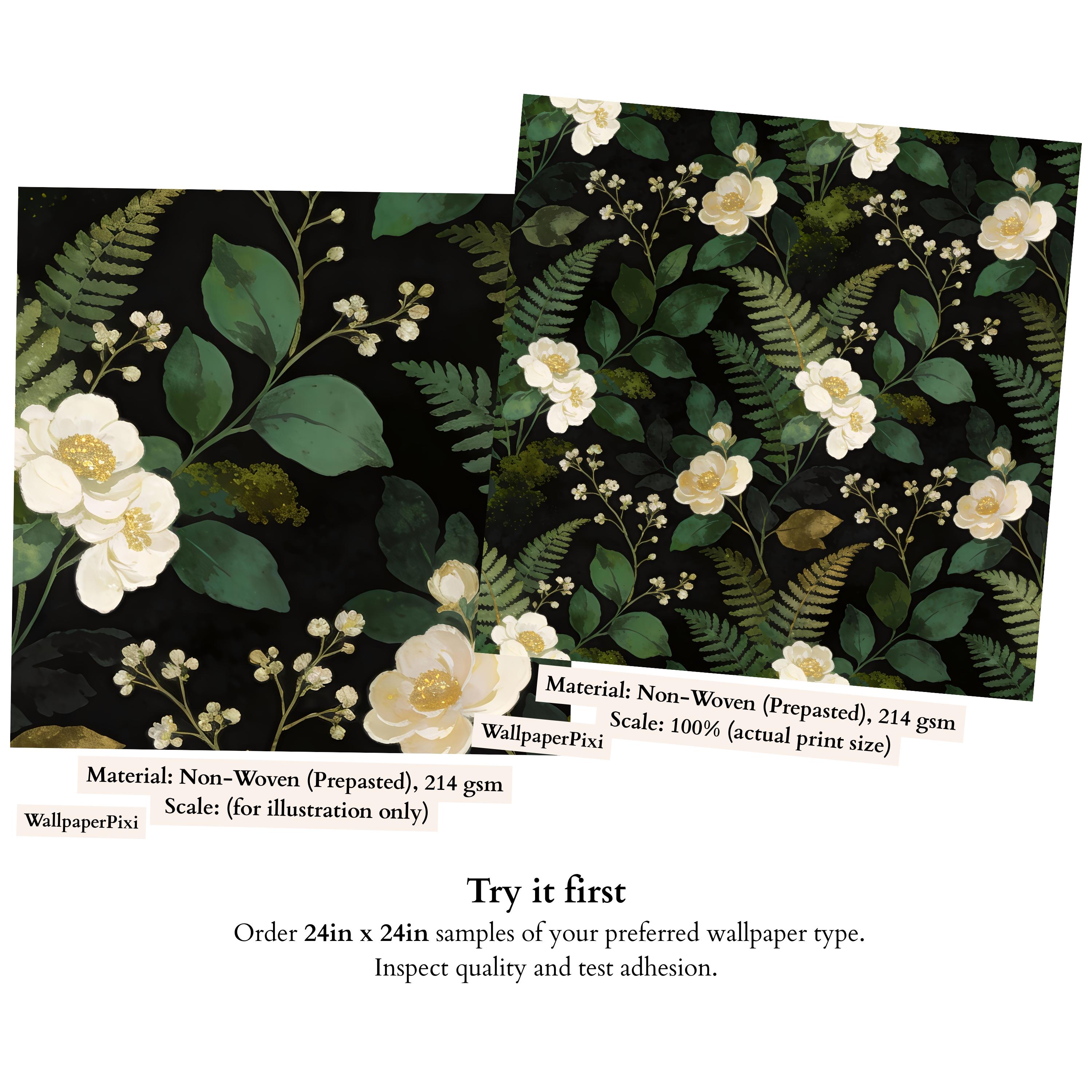 Create an elegant, nature-inspired interior with this dark floral wallpaper.