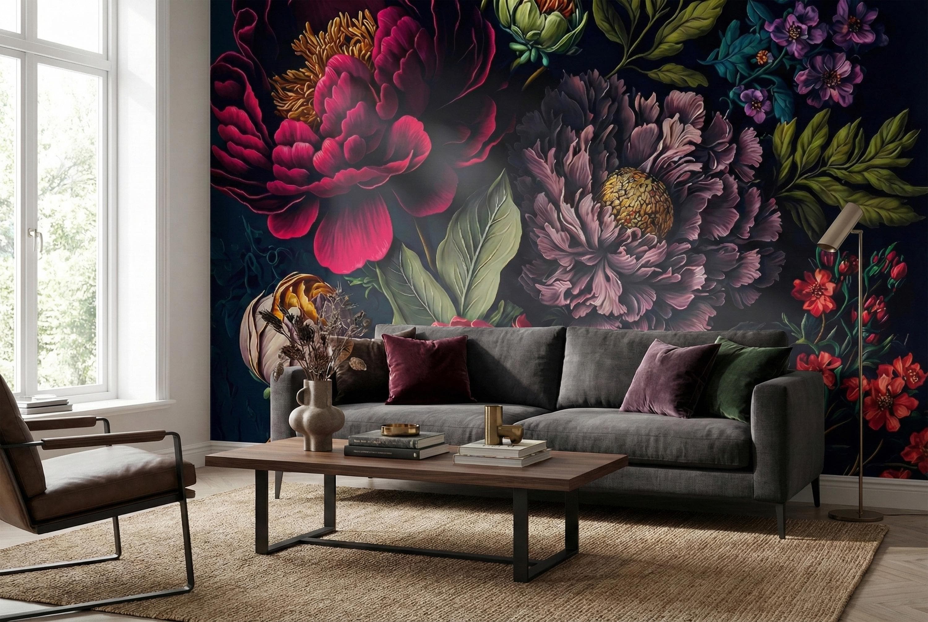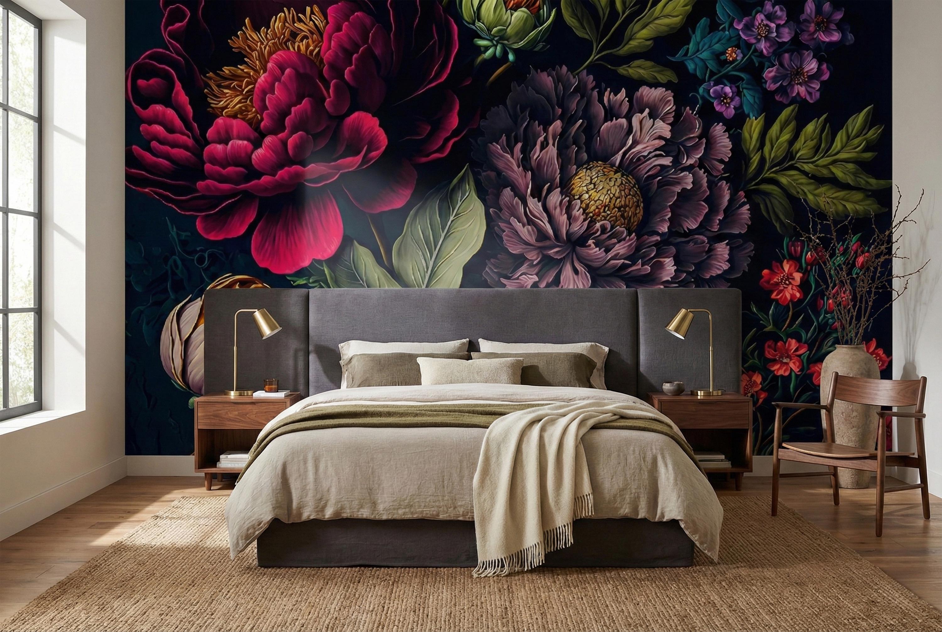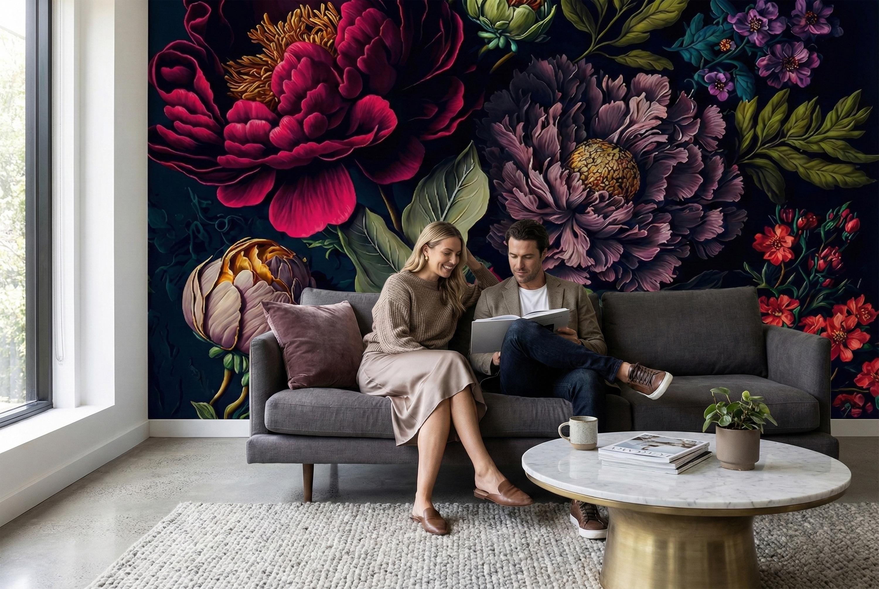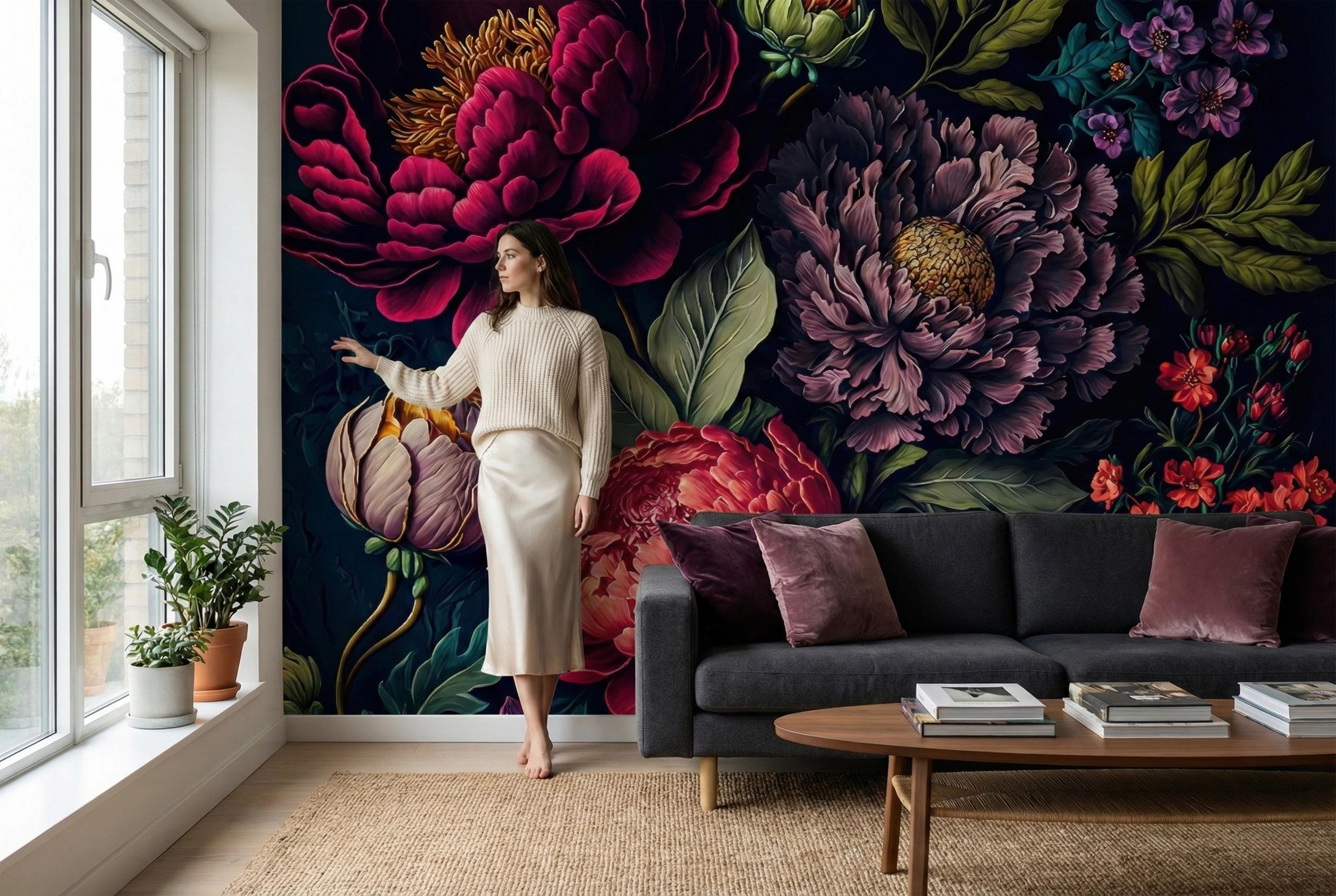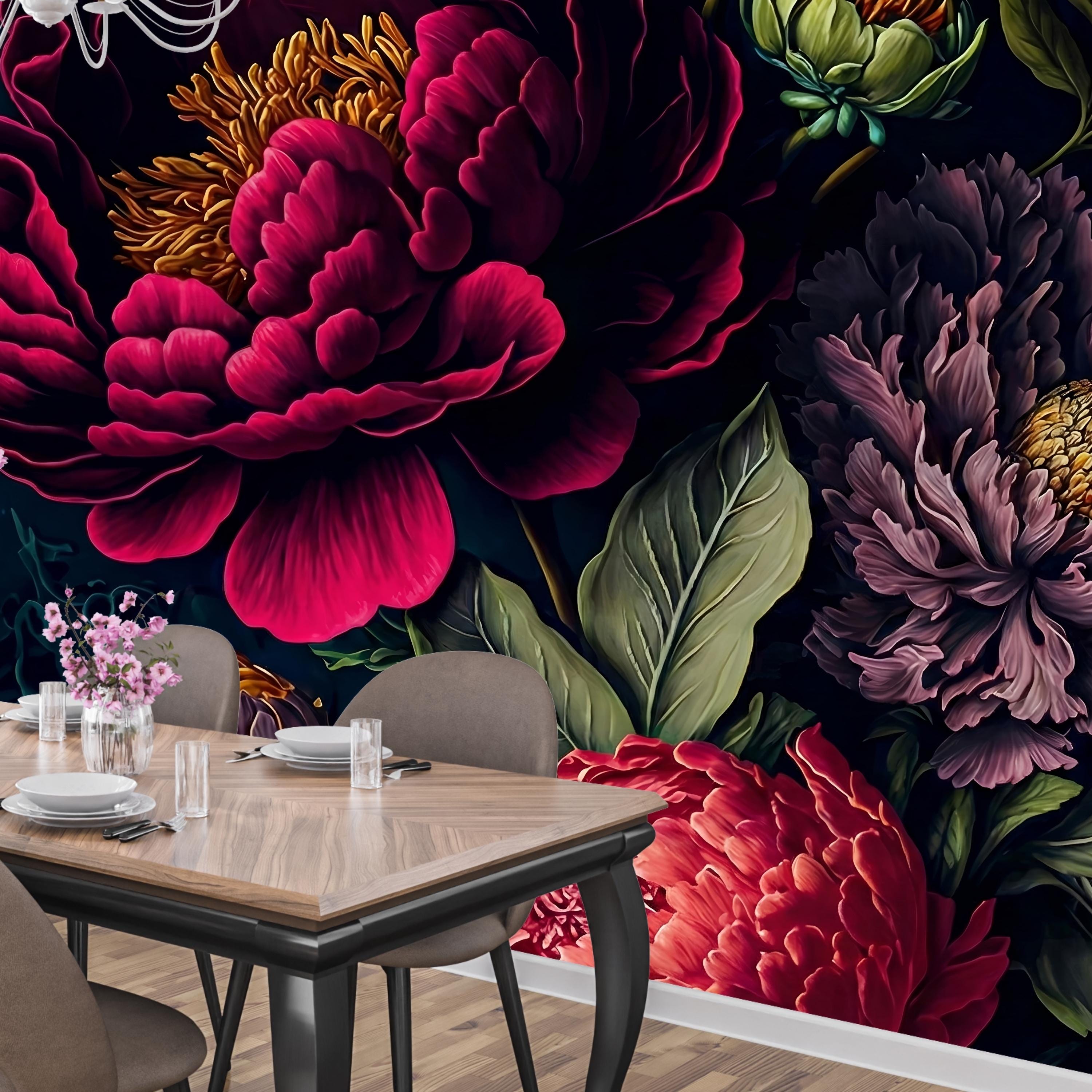 Transform your home into an opulent sanctuary with our Moody Dark Floral Wallpaper. This is more than just wallpaper; it's a dramatic statement piece that invites you to step into a secret, luxurious world.