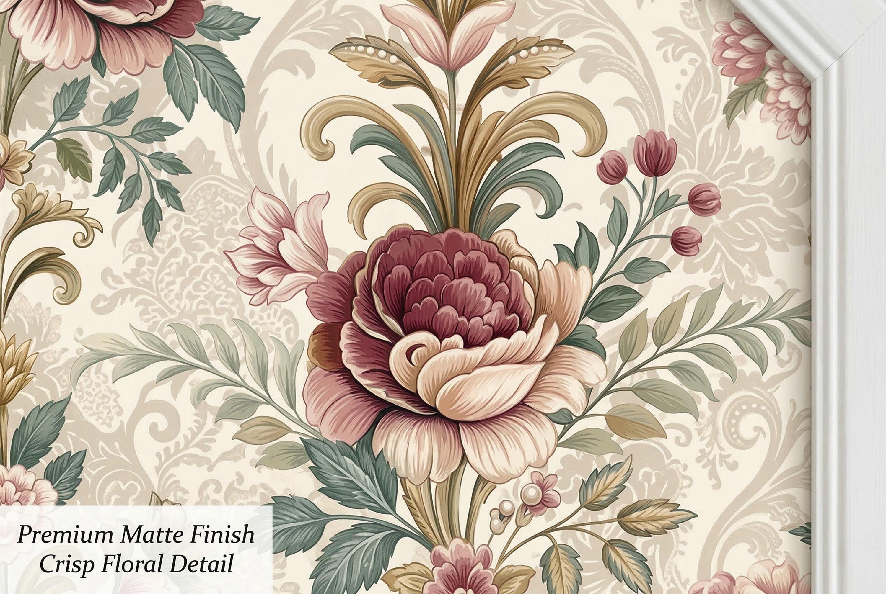 Turn your wall into a romantic vintage statement with blush peonies and damask detail.