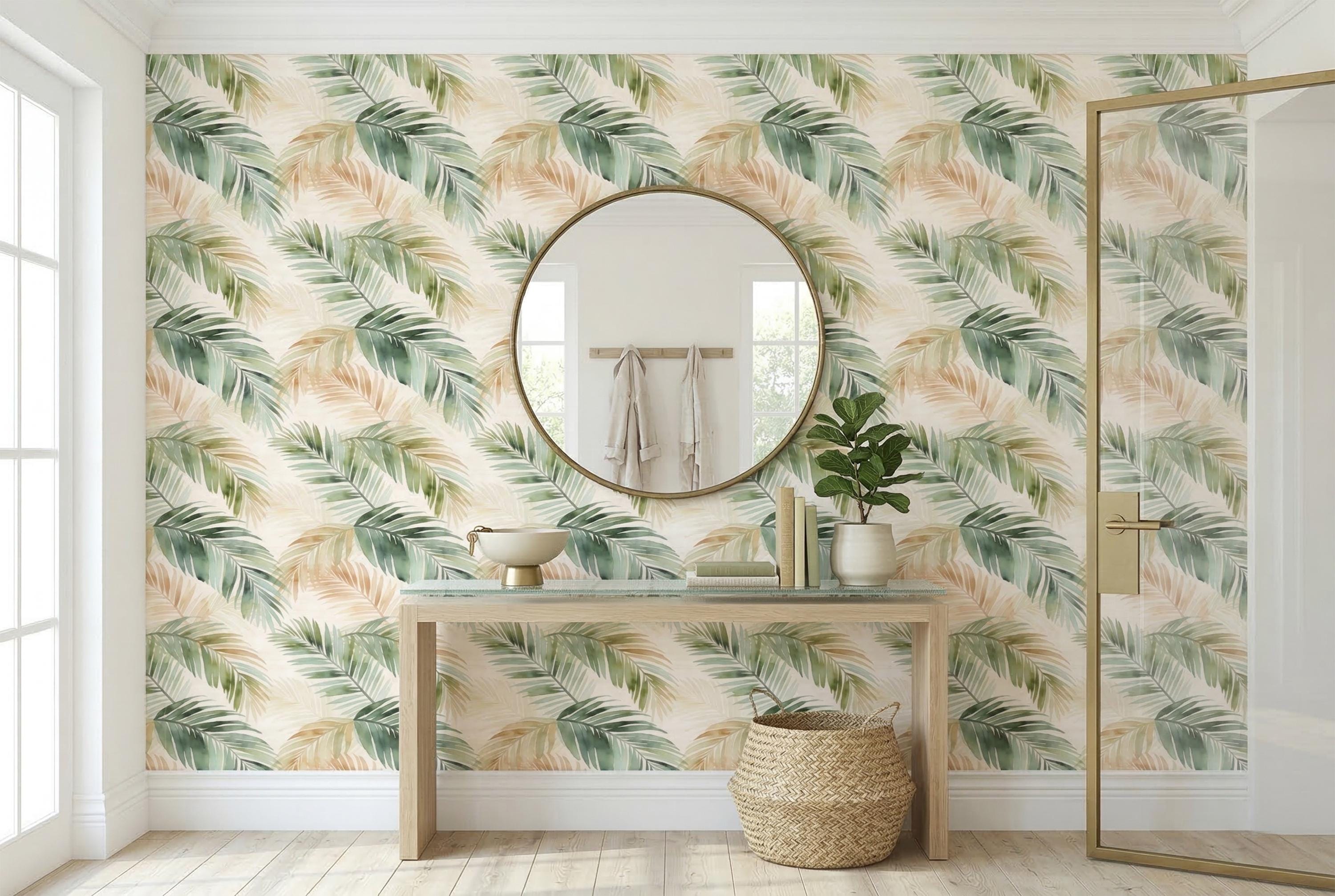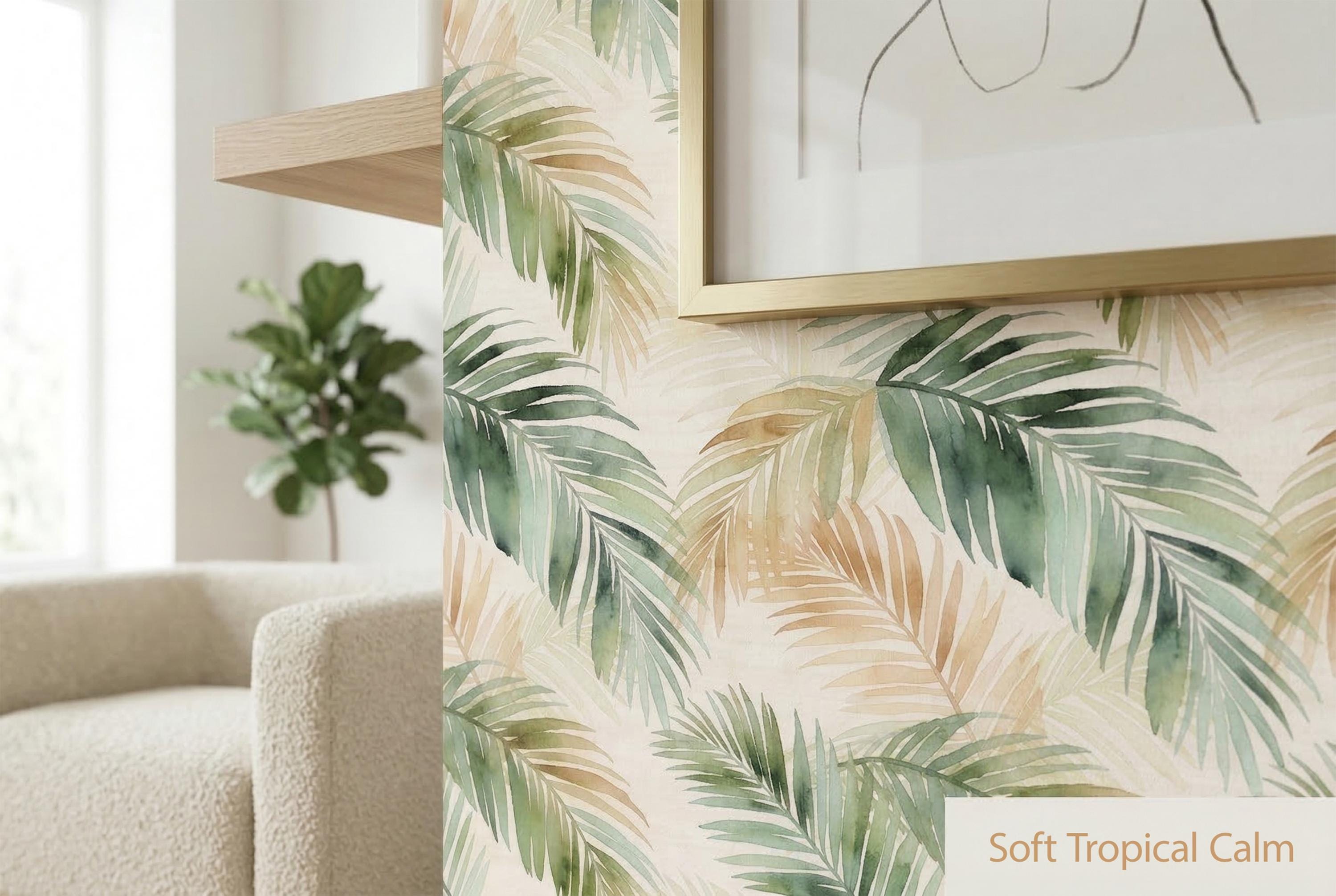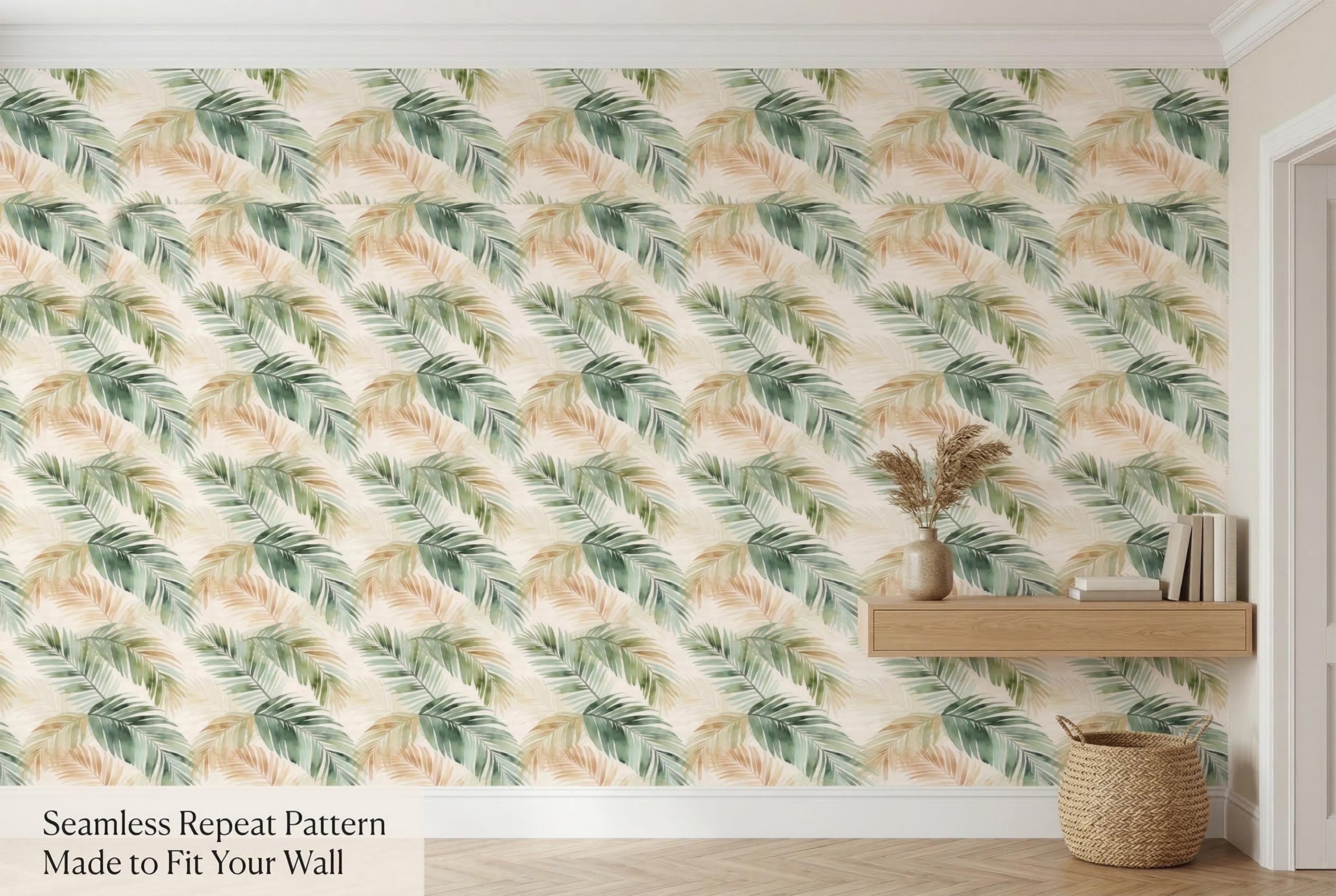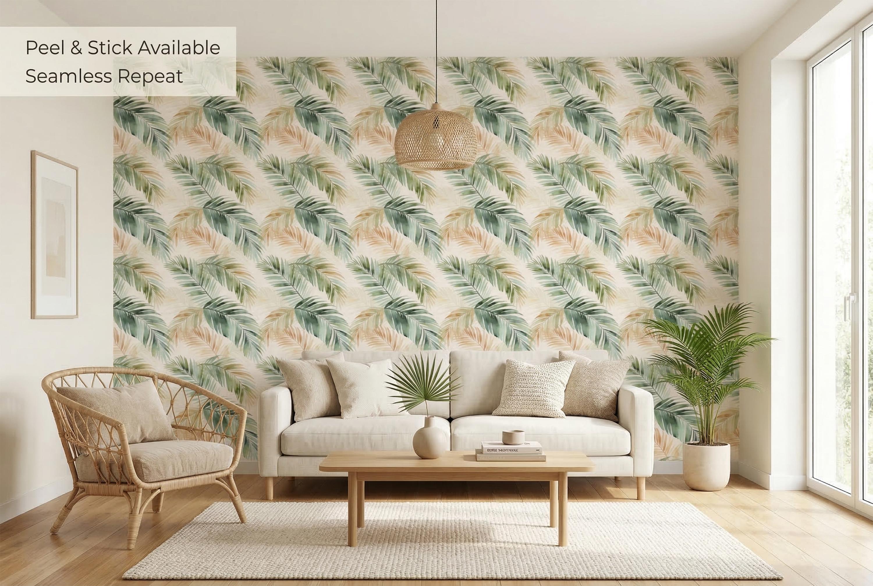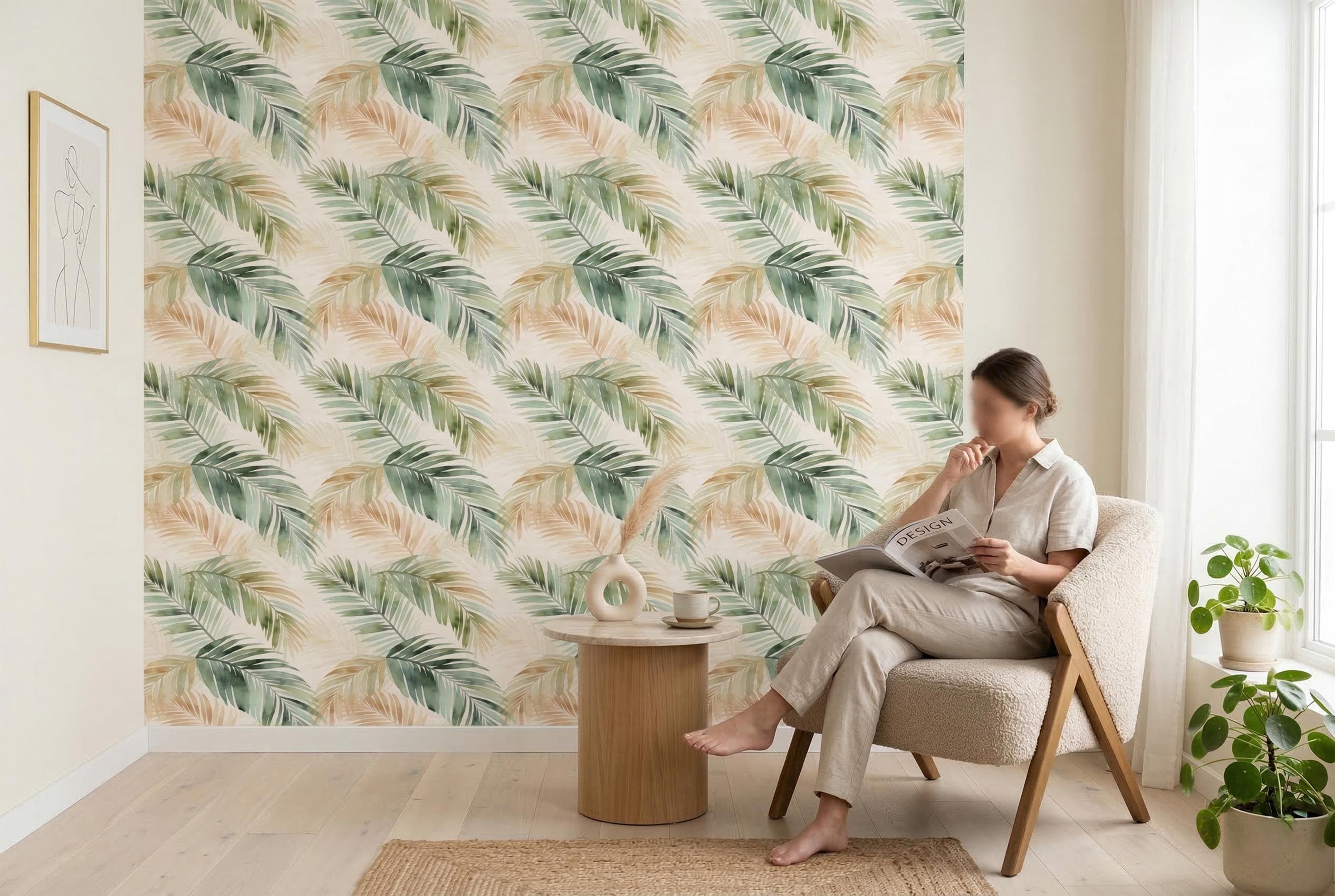πΏ Tropical Palm Leaf Peel & Stick Wallpaper β Watercolor Boho Green Botanical Mural