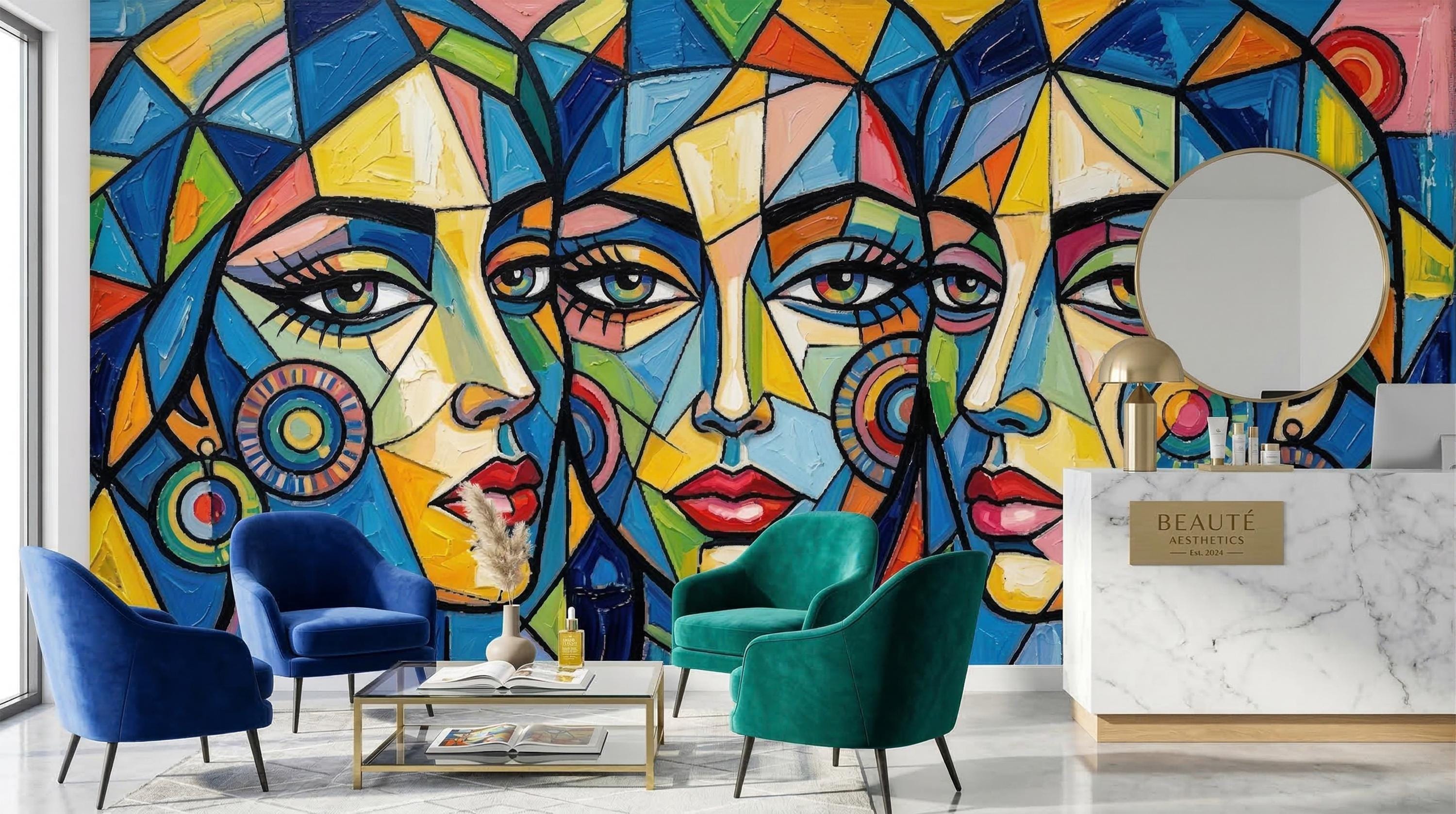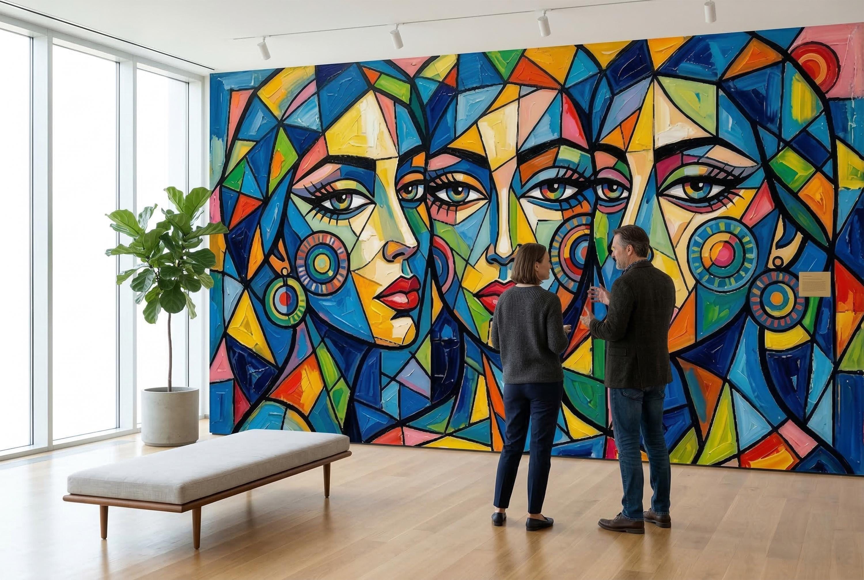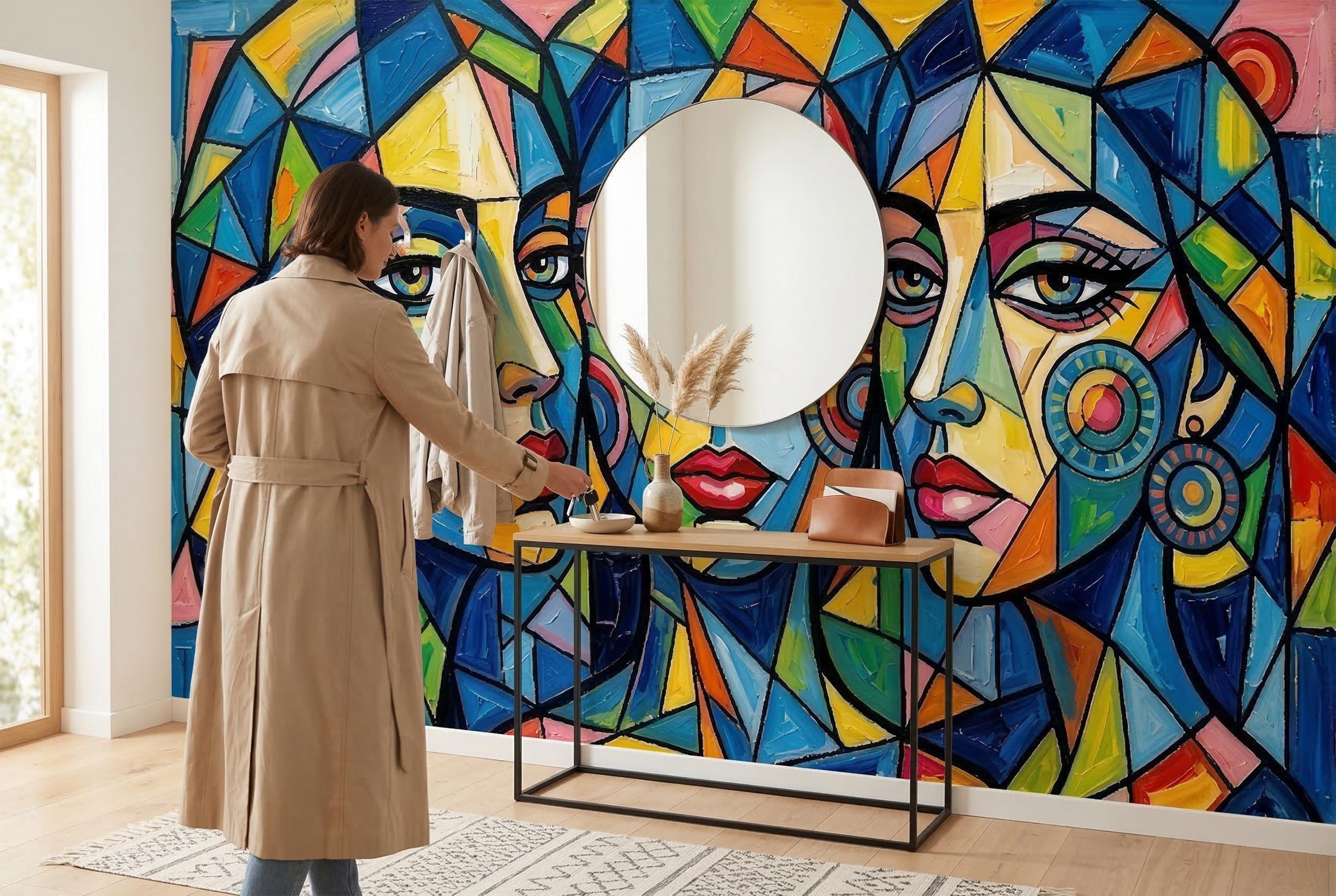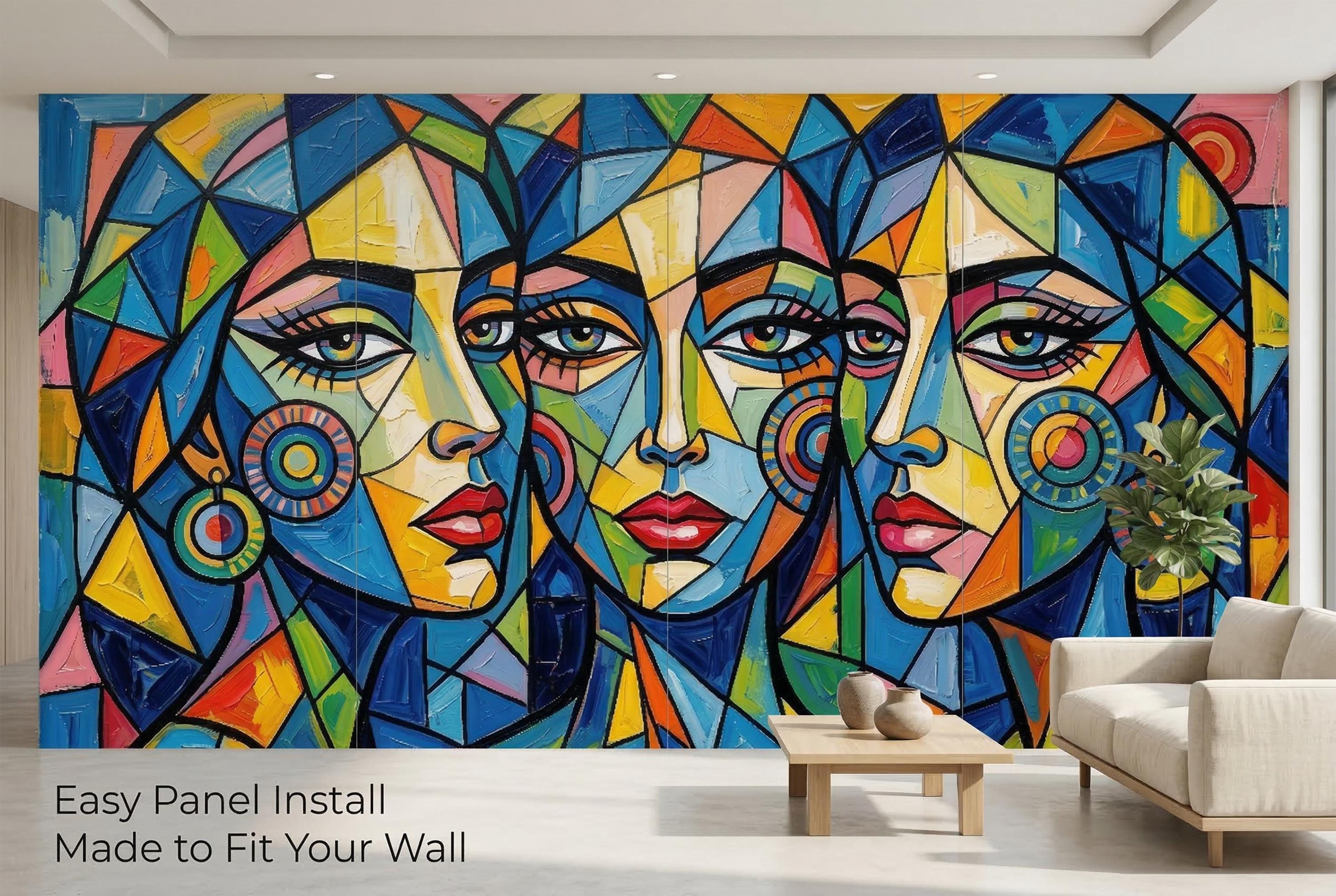 🎨 Cubist Abstract Women Face Peel & Stick Wallpaper — Bold Colorful Art Mural