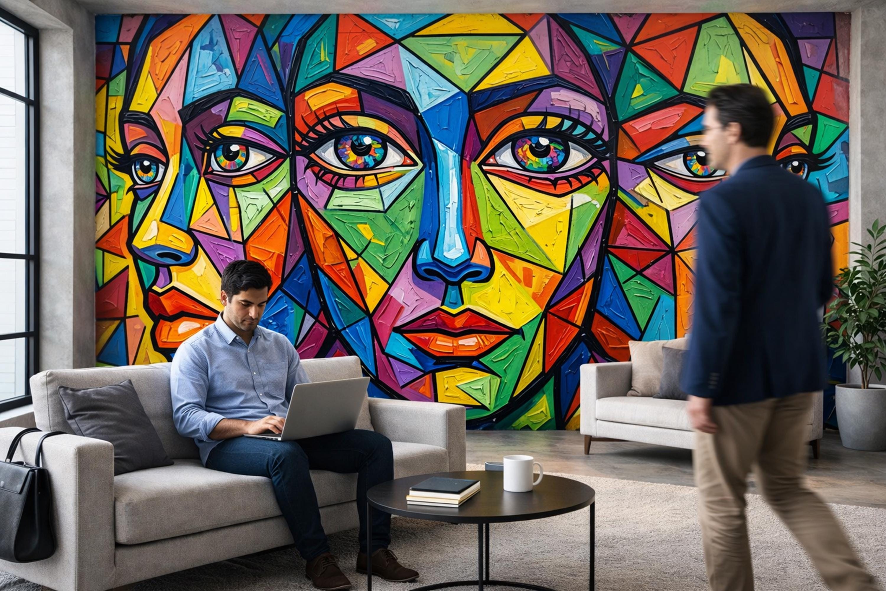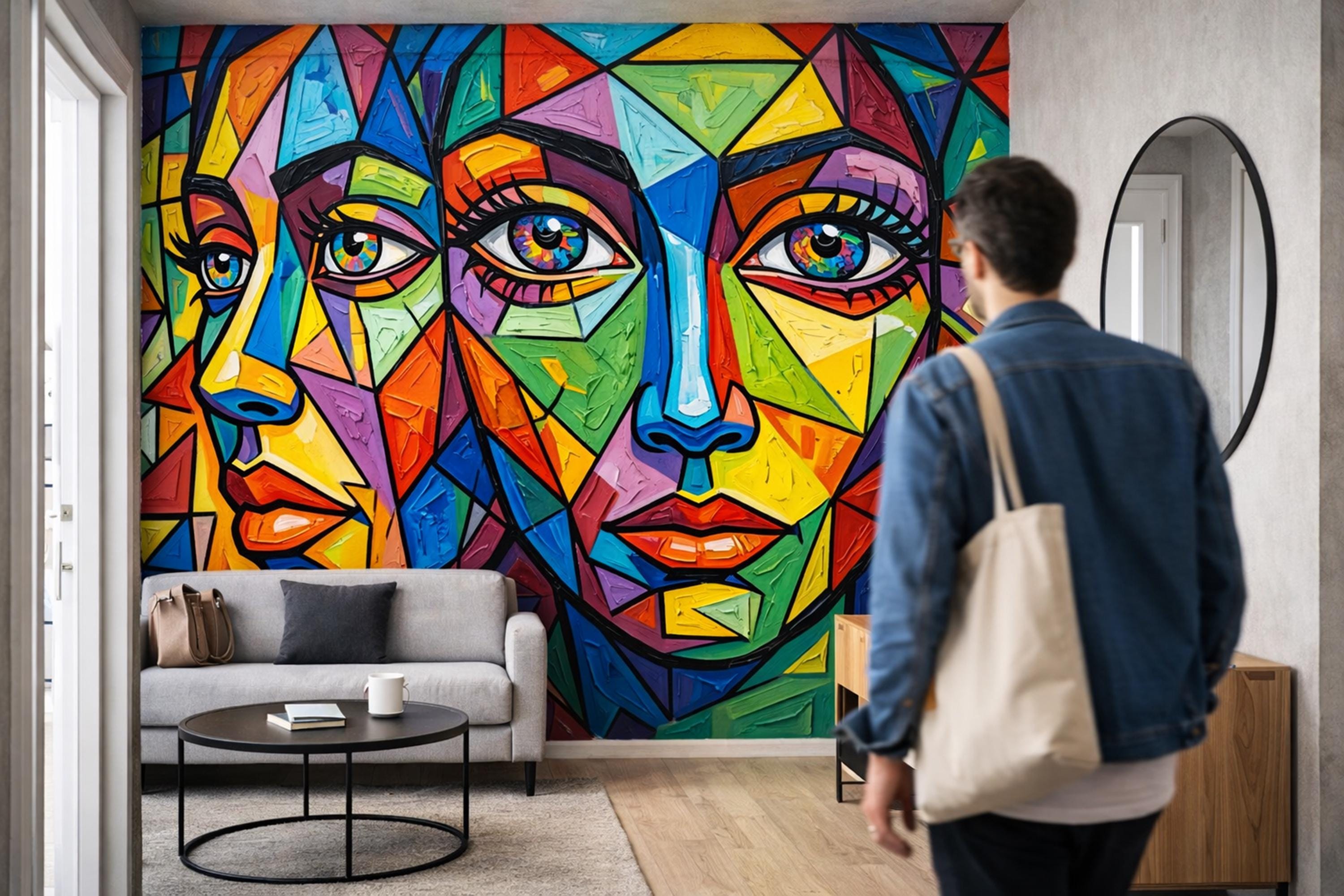 π¨ Street Art Geometric Face Peel & Stick Wallpaper β Colorful Urban Women Mural