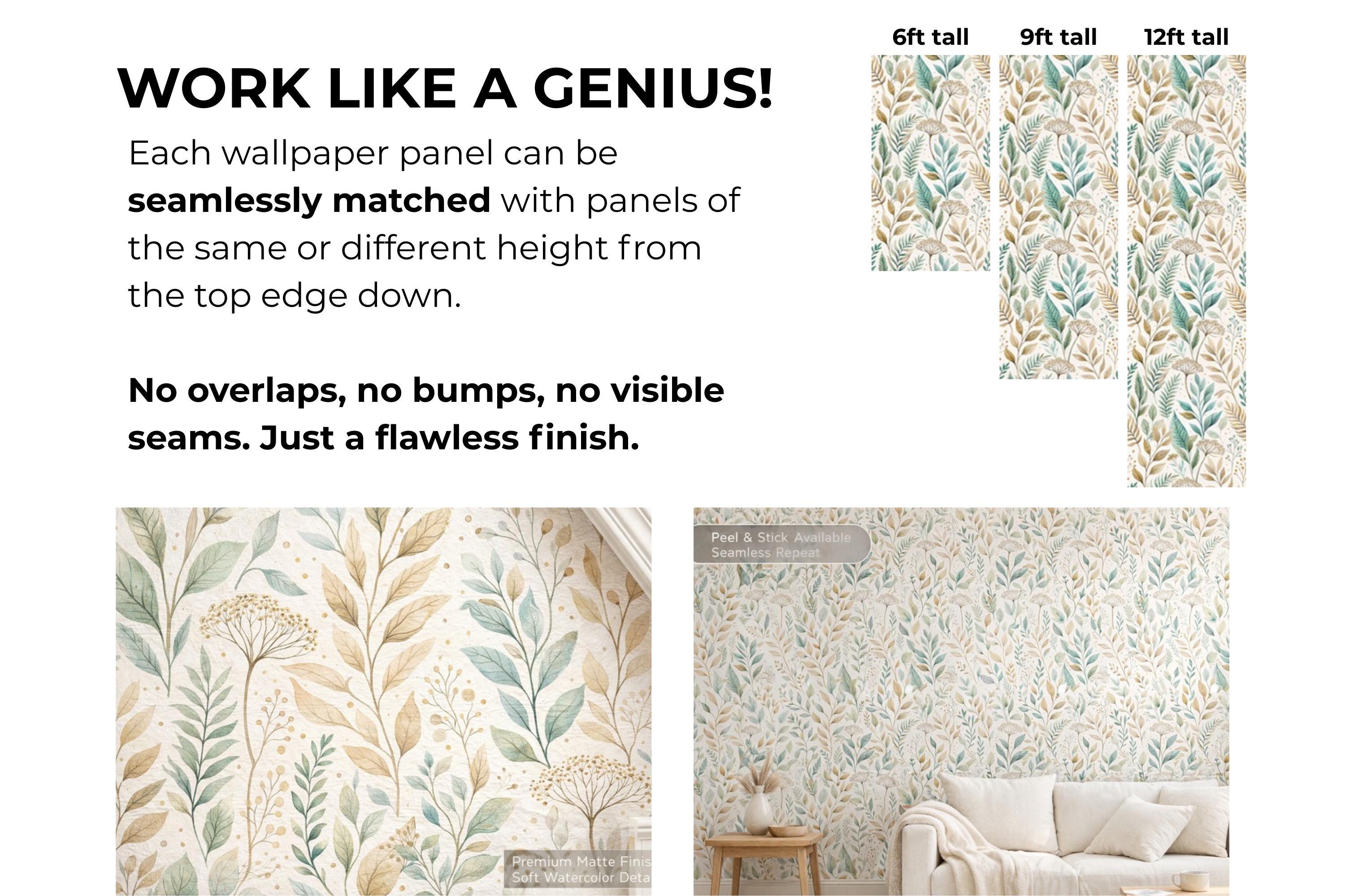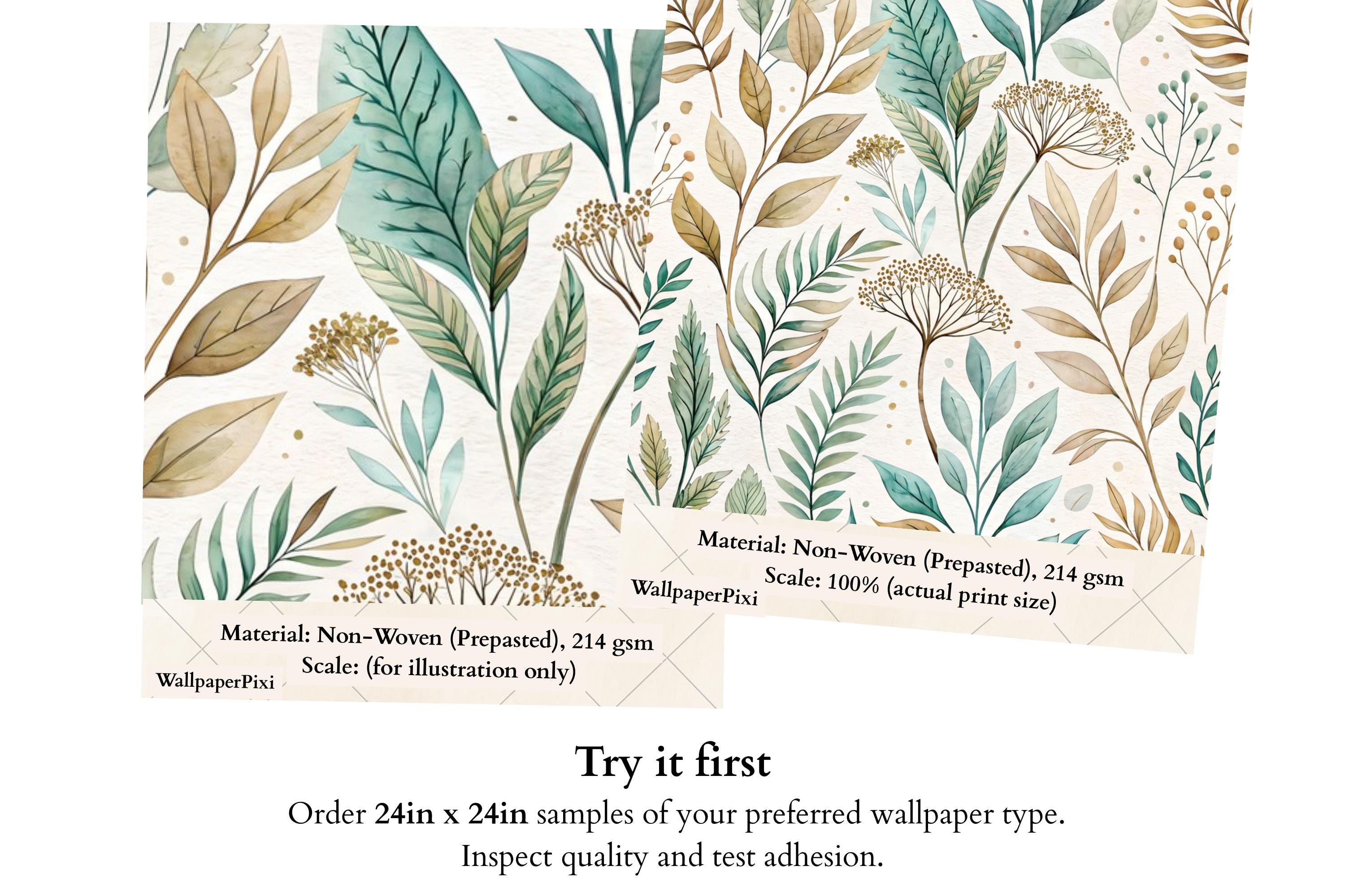 ๐ฟ Watercolor Botanical Leaf Peel & Stick Wallpaper โ Sage Green Beige Boho Mural