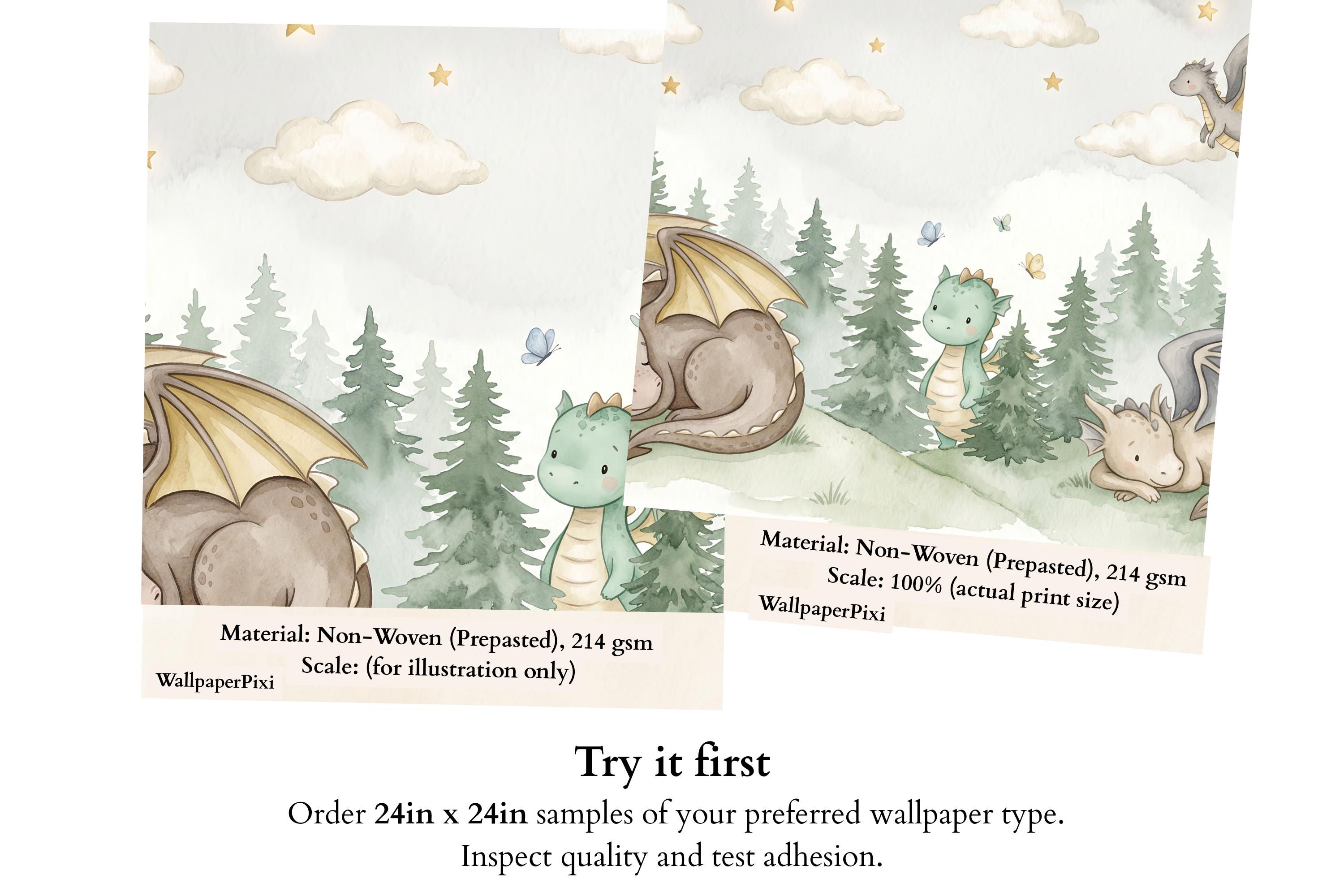 As a watercolor dragon wallpaper, it works equally for boys, girls, and gender-neutral nurseries.