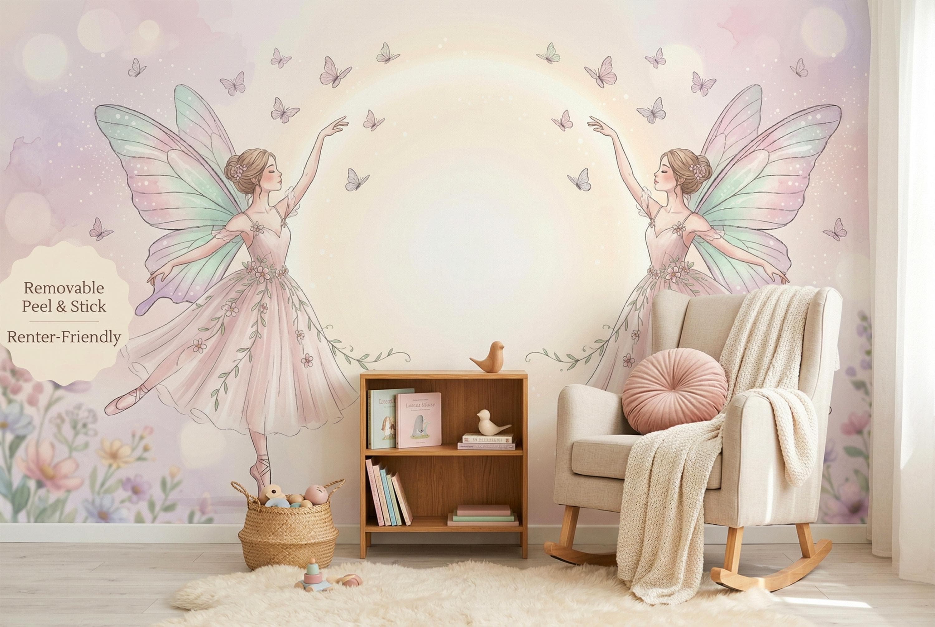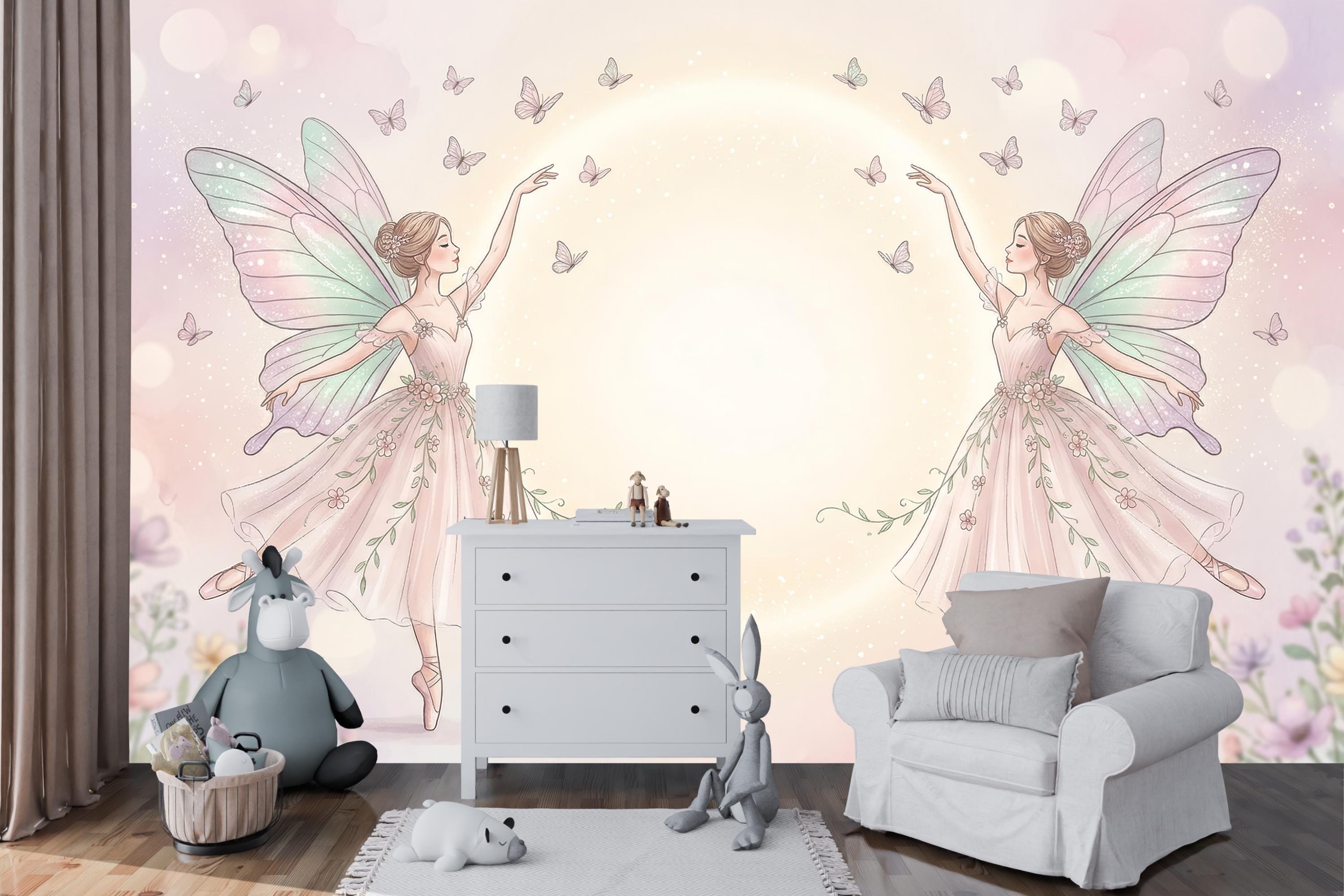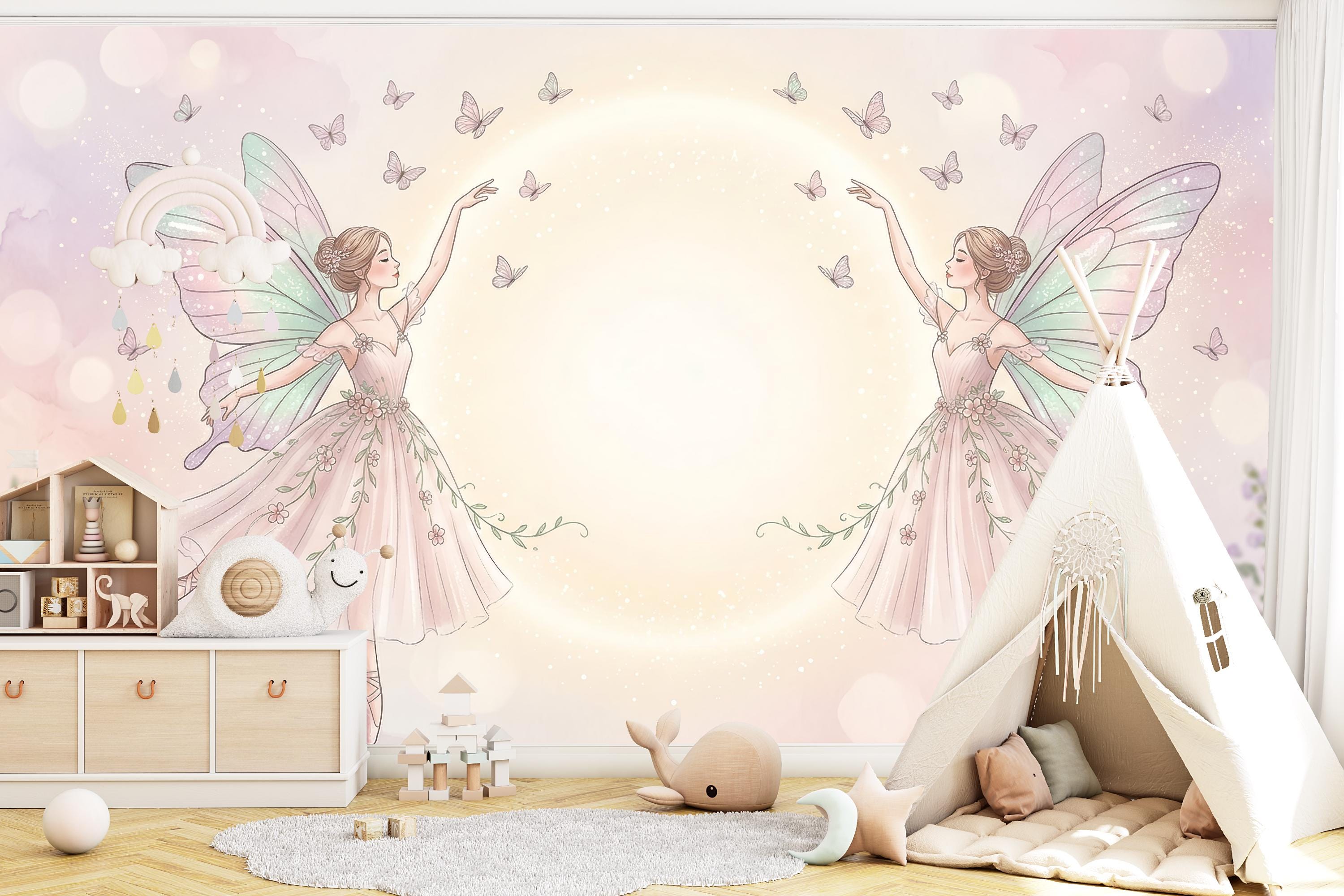 As a magical fairy wallpaper it has no equal in the ballet-fairy niche. As a fairy nursery wallpaper it works from newborn to school age — never too young, never dated. As a whimsical fairy wallpaper for girls it feels less like children's decor and more like fine art.