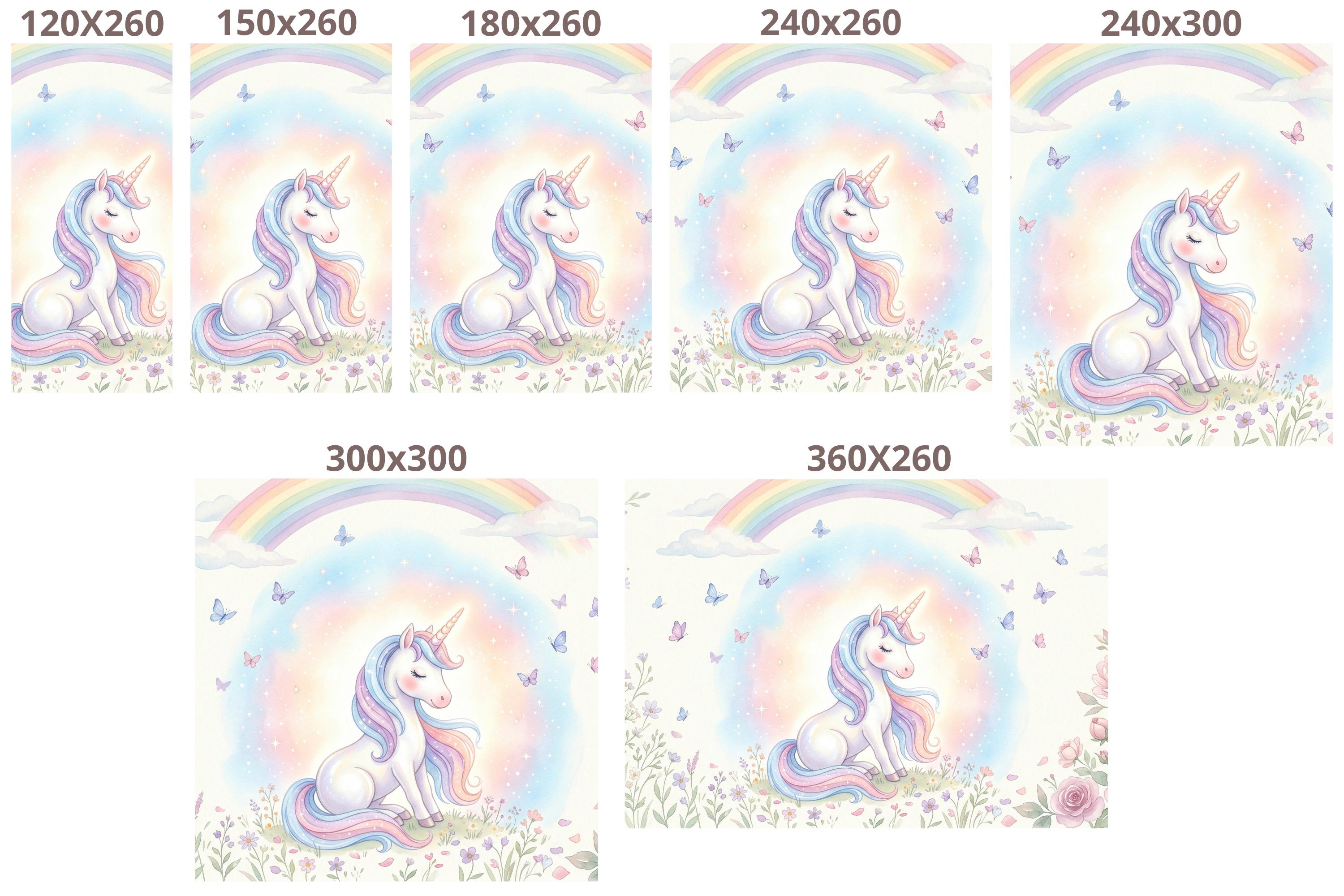 This baby unicorn rainbow peel and stick wall mural by WallpaperPixi is the softest, most serene girls nursery design we make.