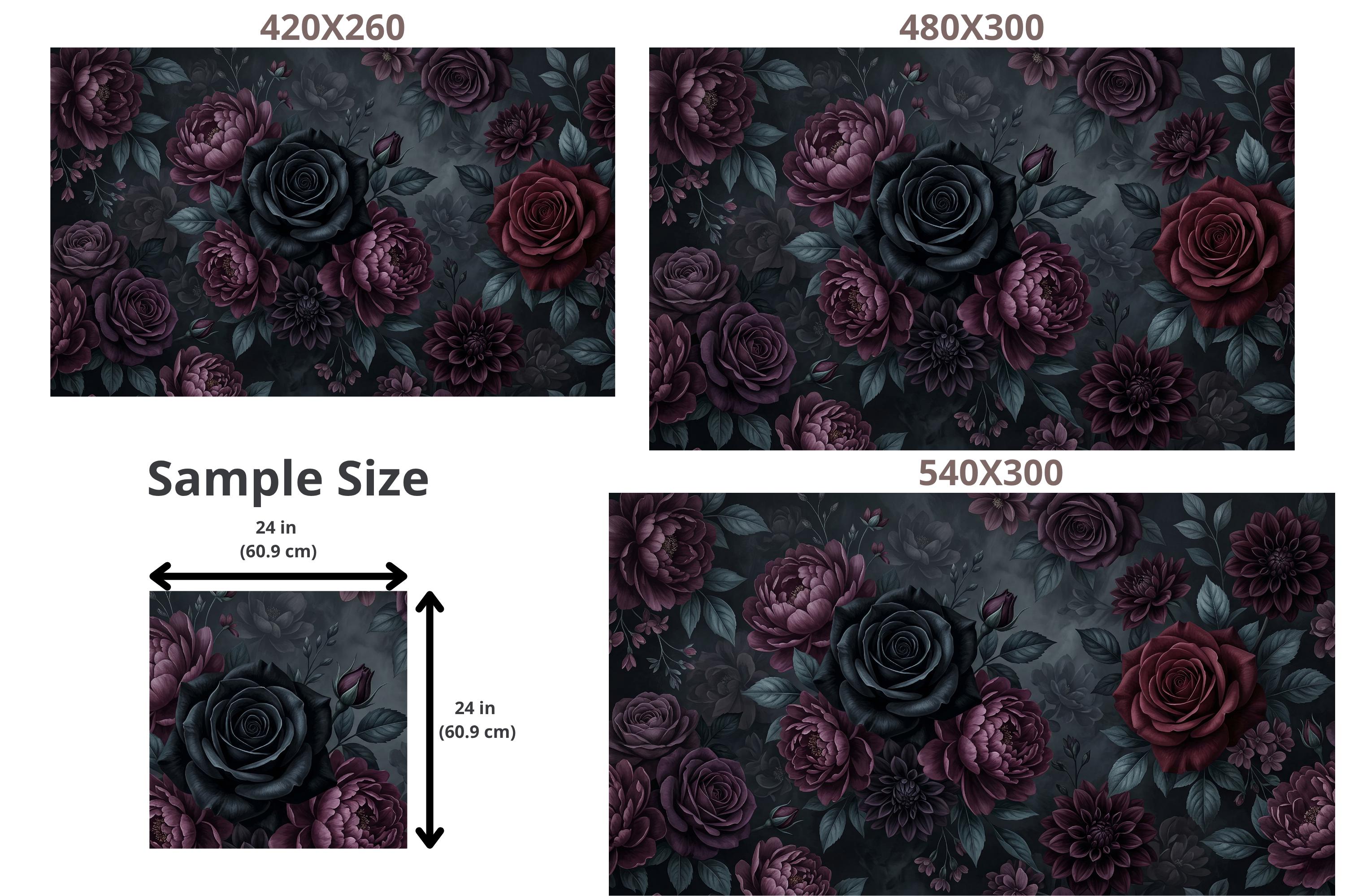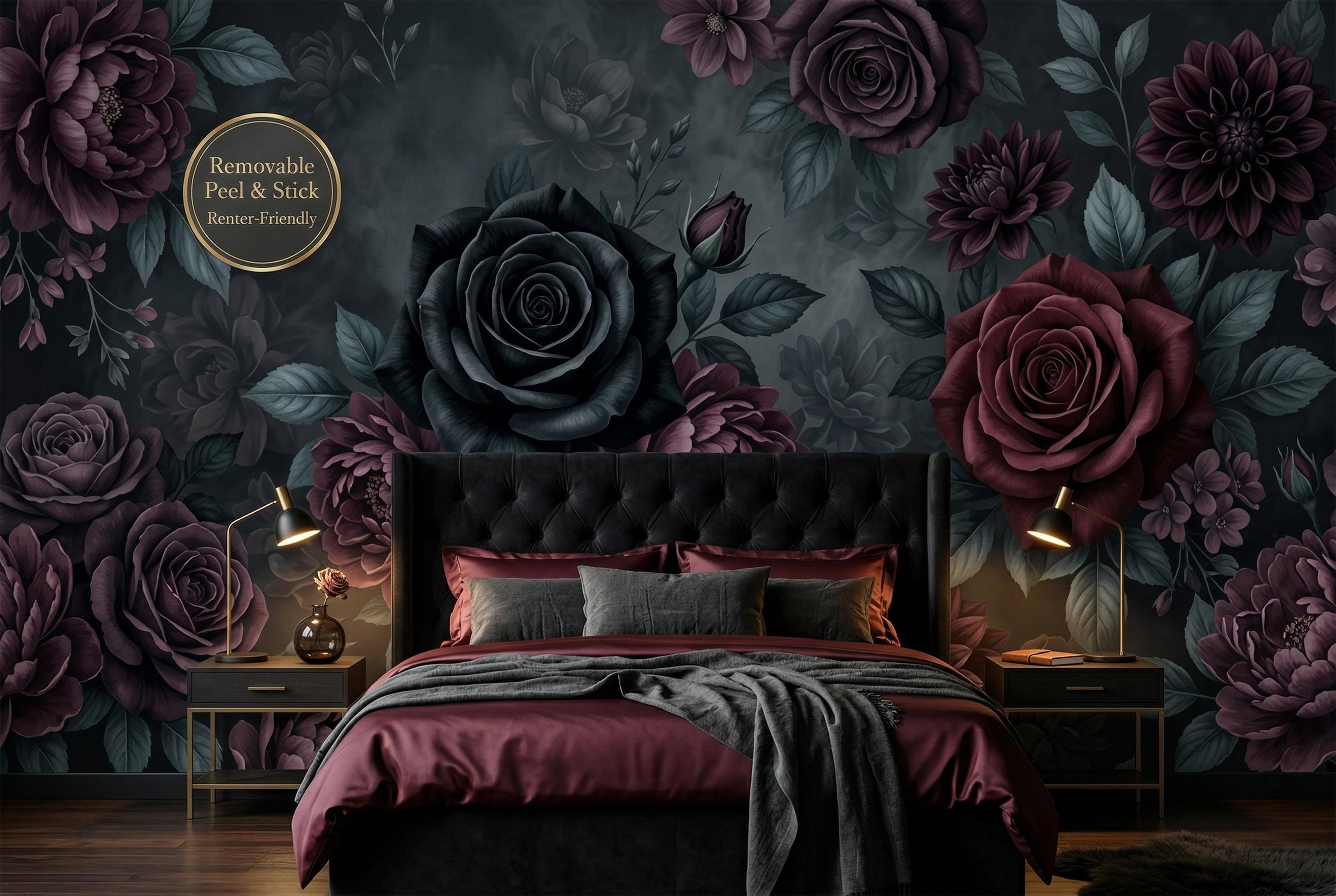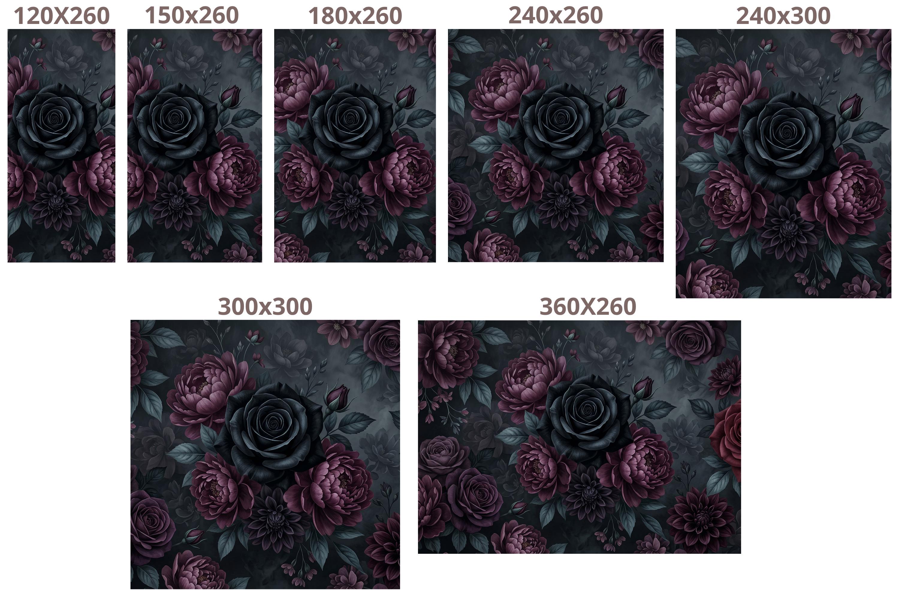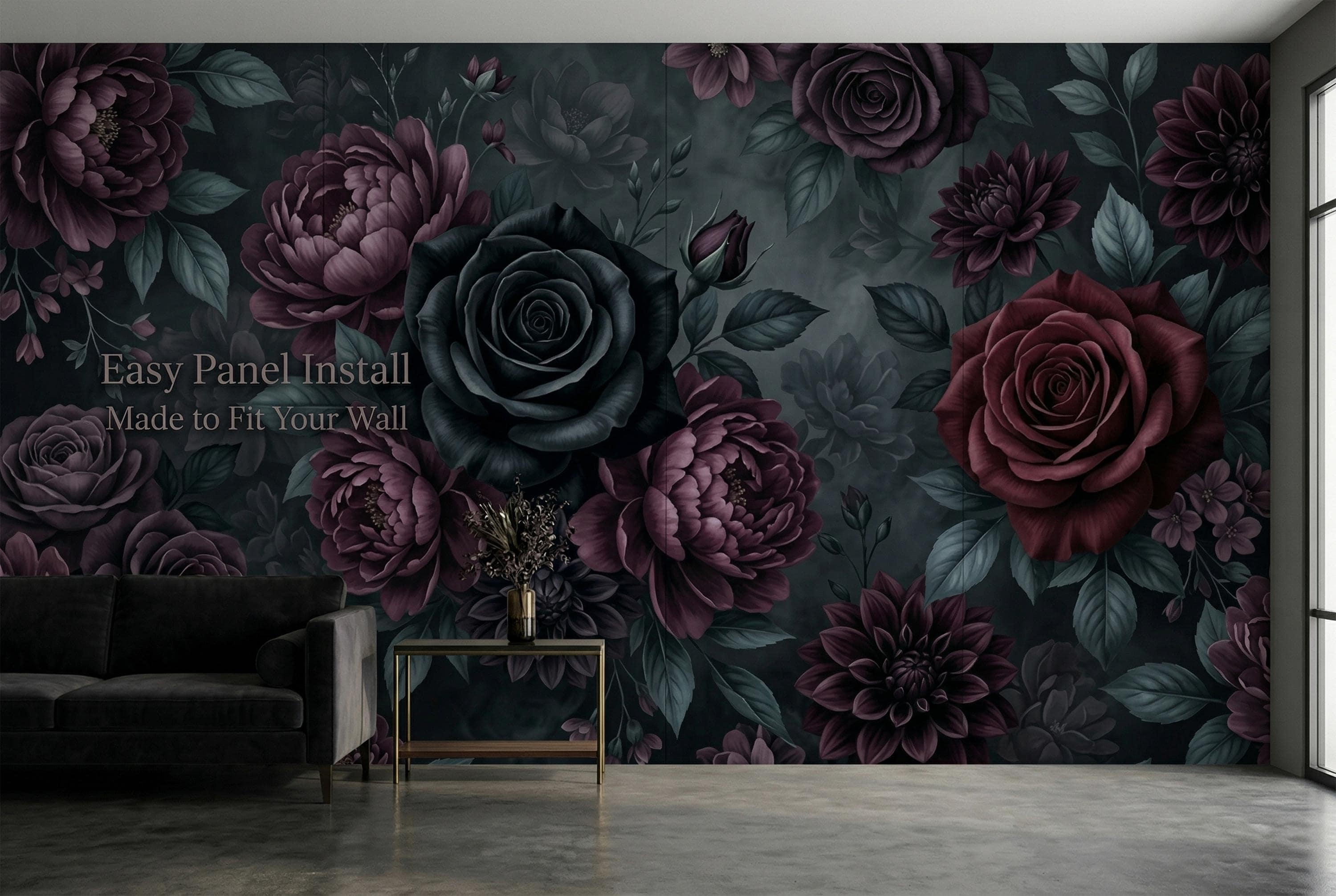 There is a kind of elegance that only darkness can hold. Deep, velvety black roses unfurl beside rich burgundy peonies and dusky purple dahlias, their petals heavy with mystery. Dark teal leaves emerge from smoky, ink-black depths — not a garden, but a mood. A feeling. A statement.