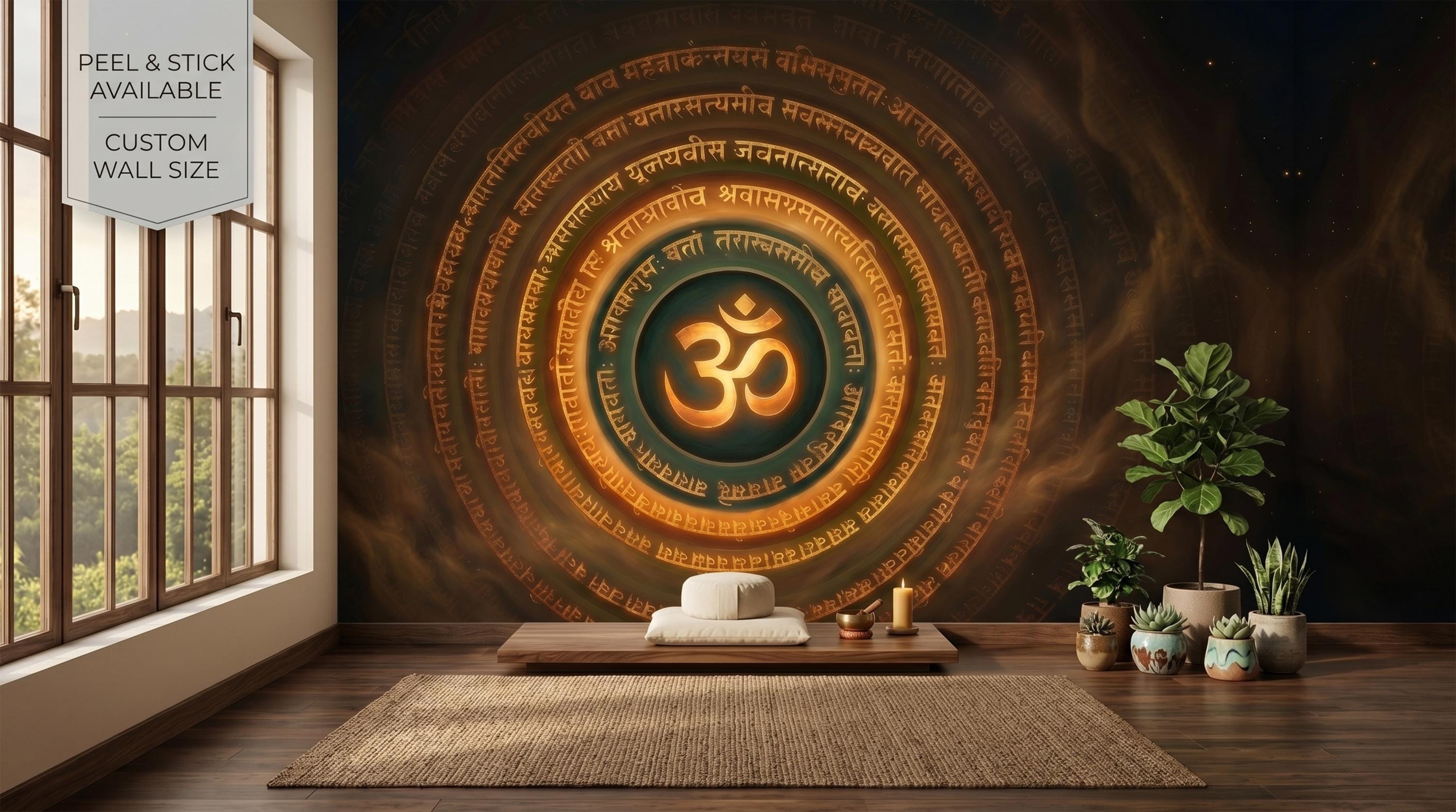 This mural is a powerful statement piece for a meditation room, yoga studio, home office, or living room feature wall. It works equally well in wellness spaces, spiritual retreats, or any interior that calls for grounding, meaningful art with a commanding presence.