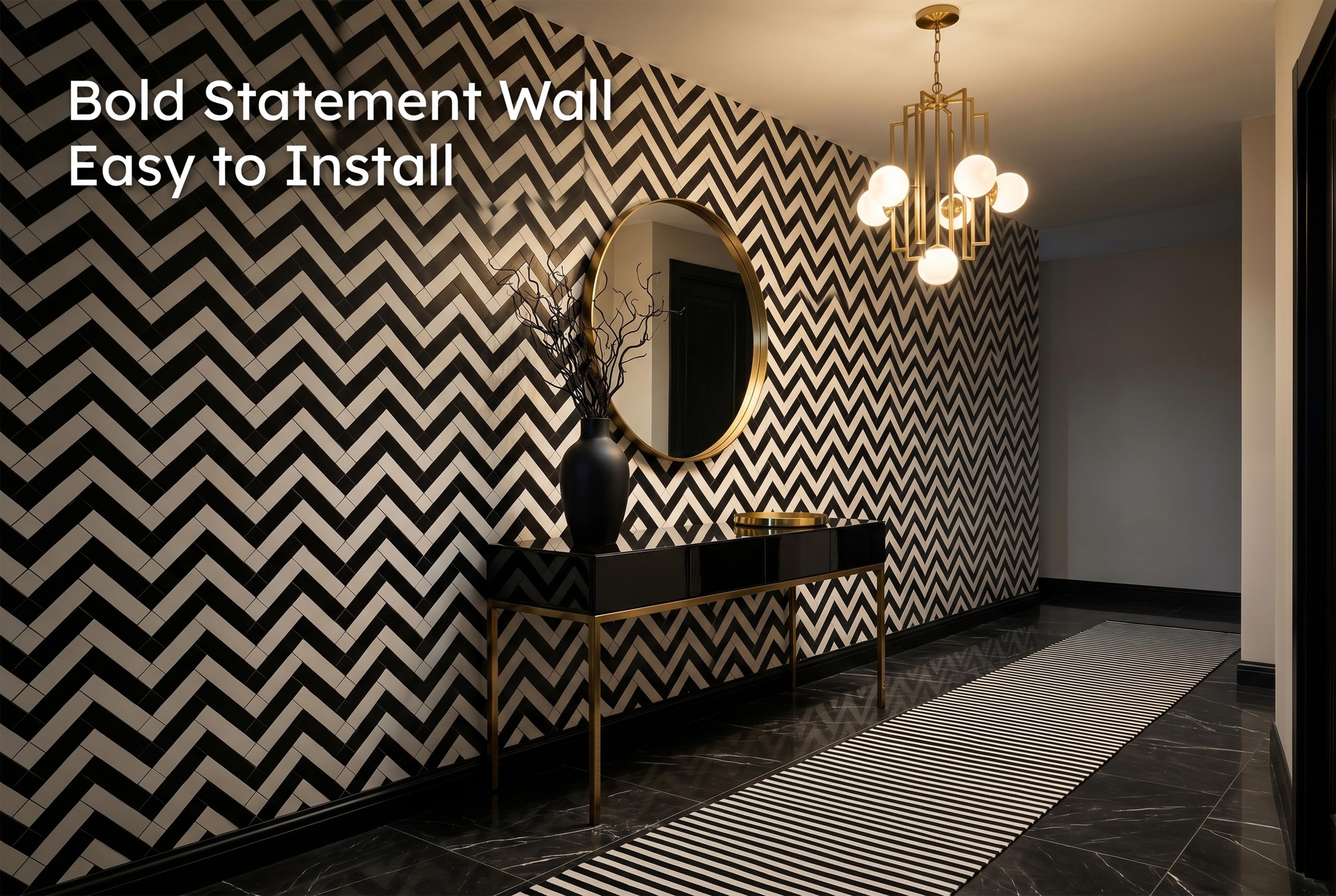 The high-contrast monochrome palette and clean geometric layout bring instant modern sophistication to any space — a kitchen backsplash, bathroom wall, entryway, living room accent wall, or even a stylish home office. This is one of those timeless patterns that looks equally at home in a minimalist Scandinavian interior and a dramatic Art Deco setting.
